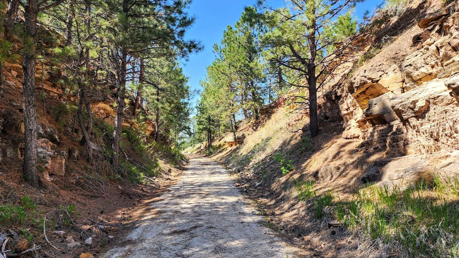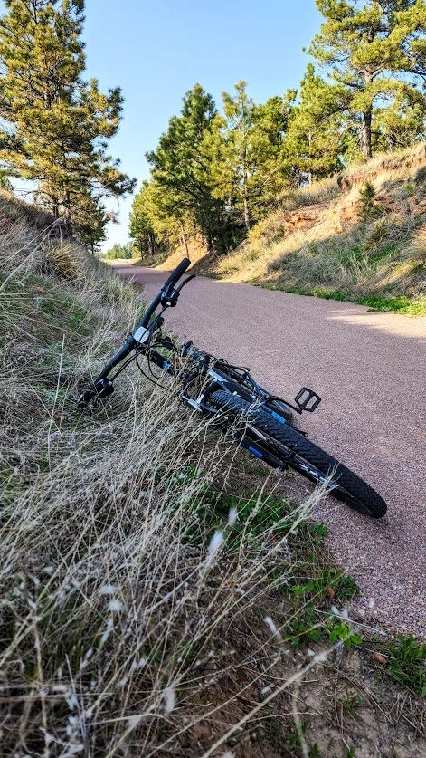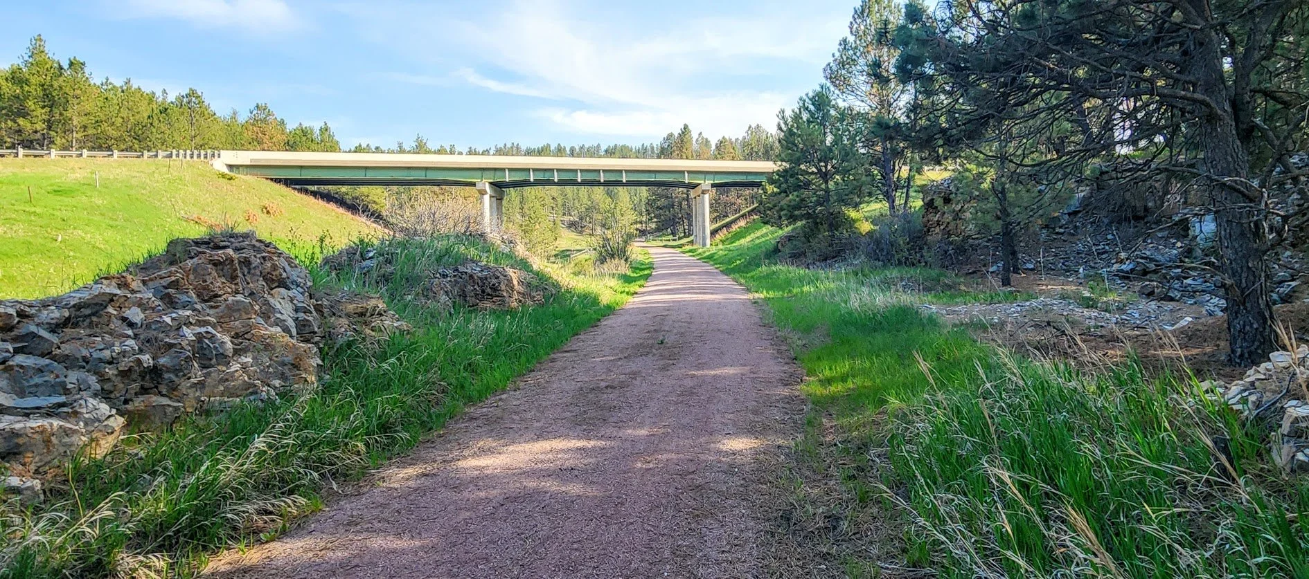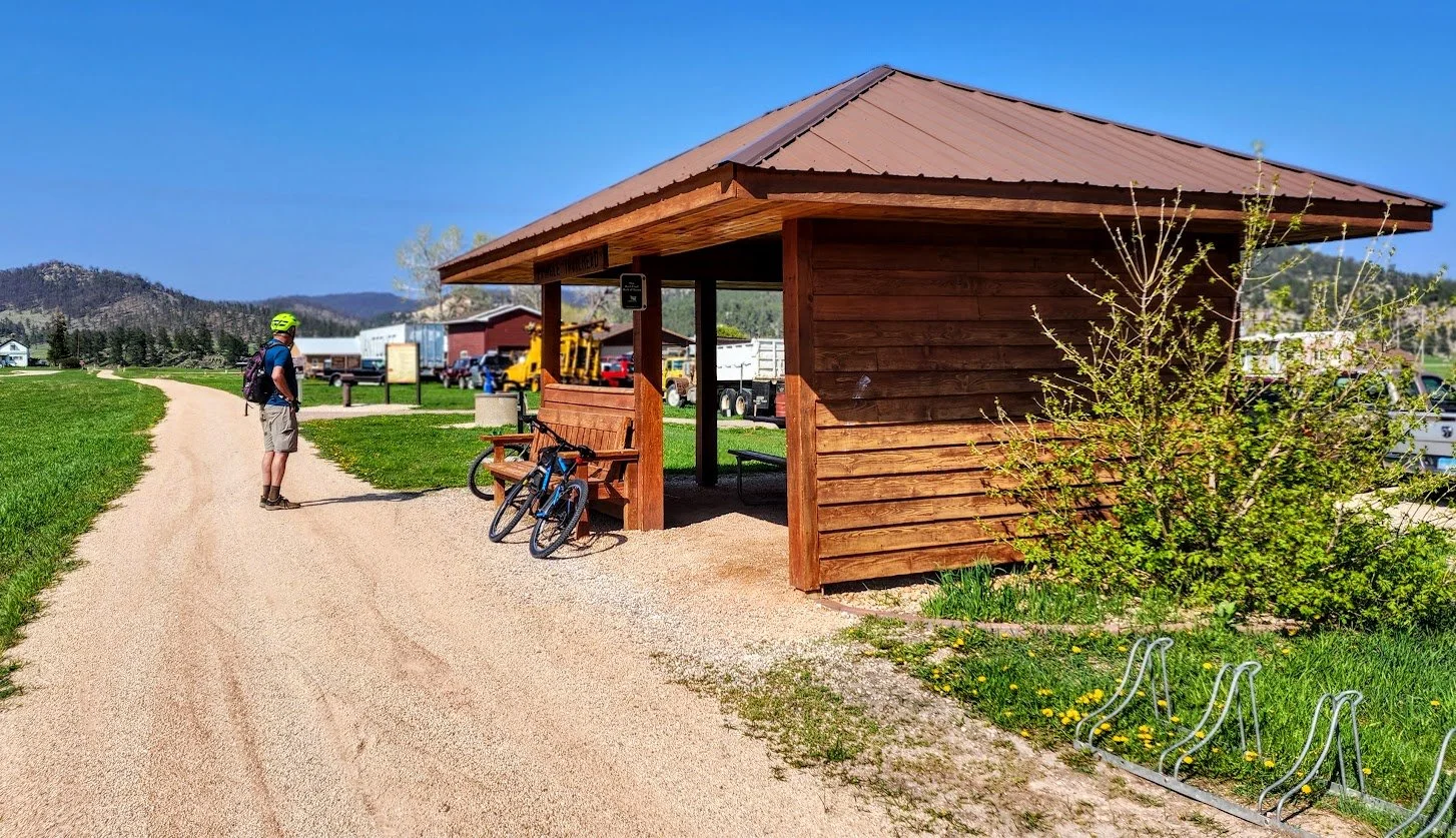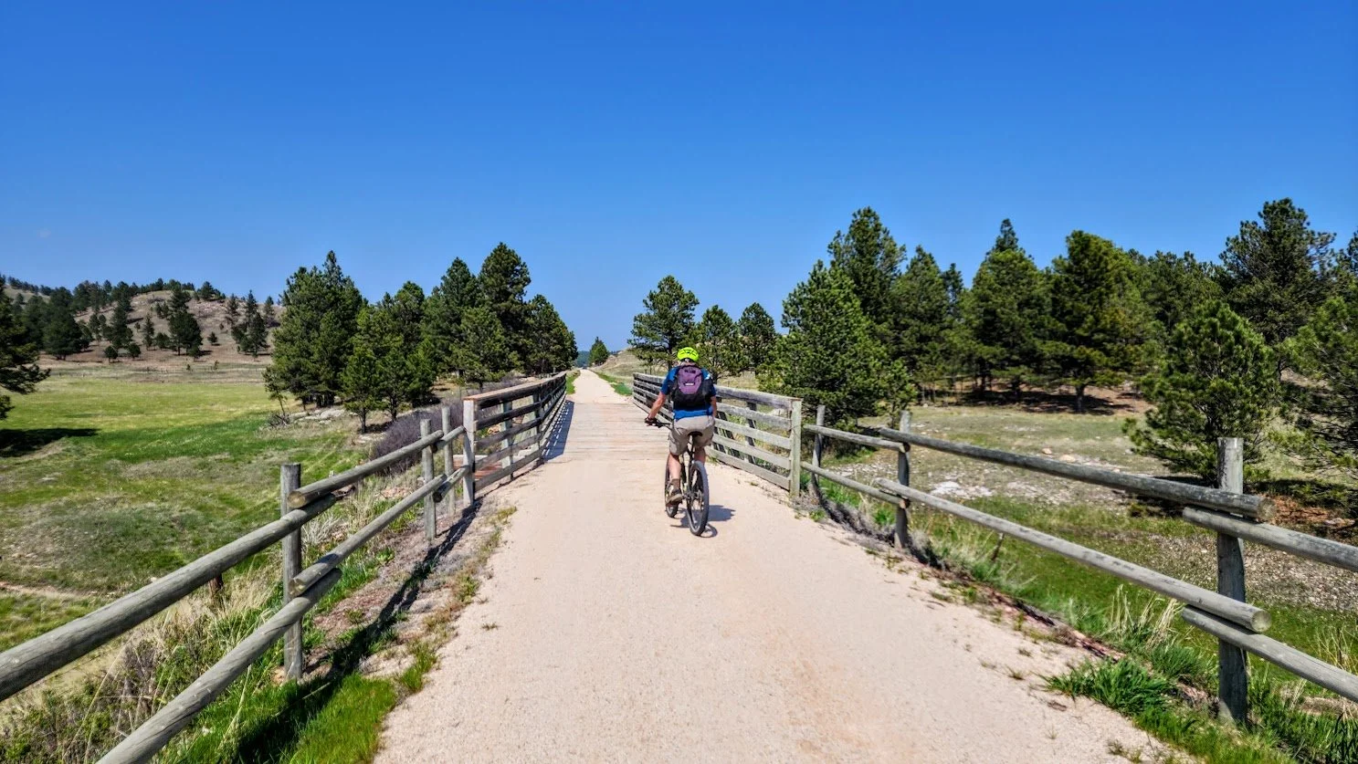The trailhead is just short of 16 miles long (15.9) one way and goes mostly uphill the whole way. There is only 2 sections of this trail that go downhill - by MM 26 and by MM 31. This trail is one of my least favorite. It has a lot of open spaces, a very hot sun at times, and not much of scenery compared to the rest of the trail. The cool thing was in Pringle we were able to go to a bar and get a beer or even food if needed before the long bike ride back to the car. Also very little people ride this section of the trail, and we only saw 3 other people the whole time we were bike riding.