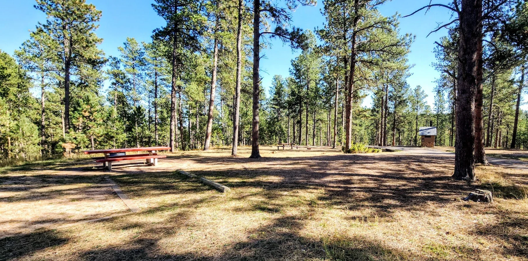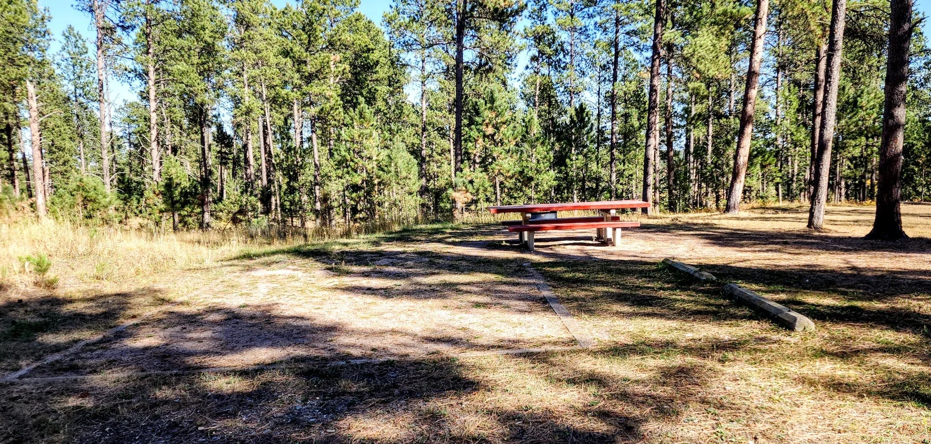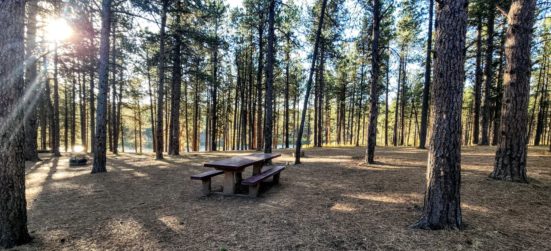 Roubaix Lake Campground is located off Highway 385 between Rapid City and Deadwood. It has four loops and the sites are spaced apart pretty good. Some of the sites have great views of the lake. At the campground there are pit toilets, a swimming beach, and opportunities for paddling, kayaking, and non-motorized boats. There is a fee to use the lake and picnic areas if not camping, but if camping the additional fee is waived. In the fall you can camp for free on a first come first serve basis, but the sites fill up pretty quickly, and the spots are limited.