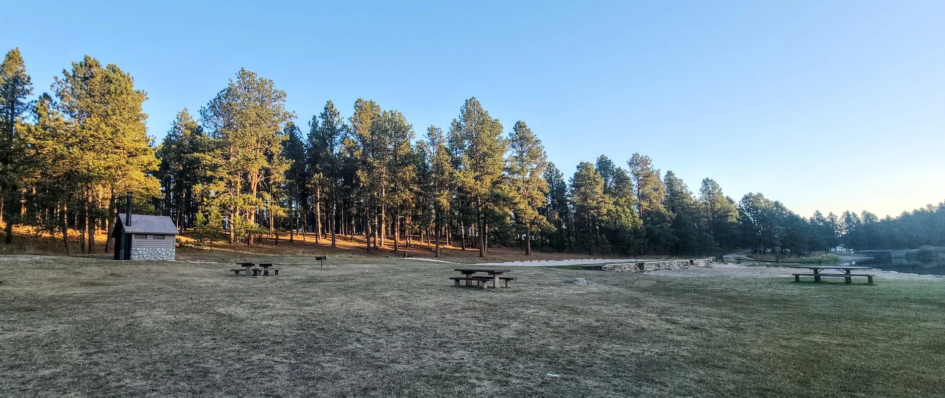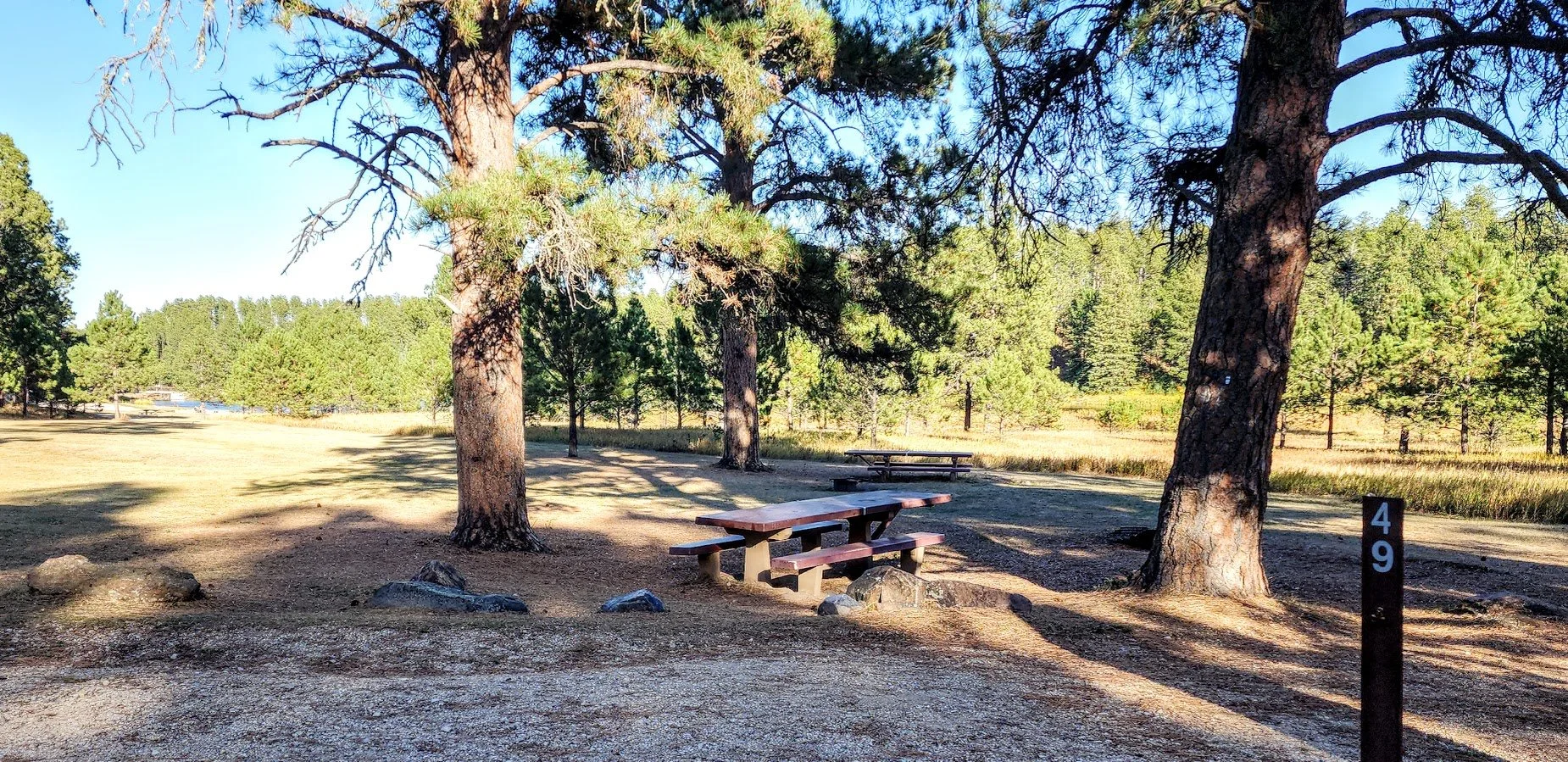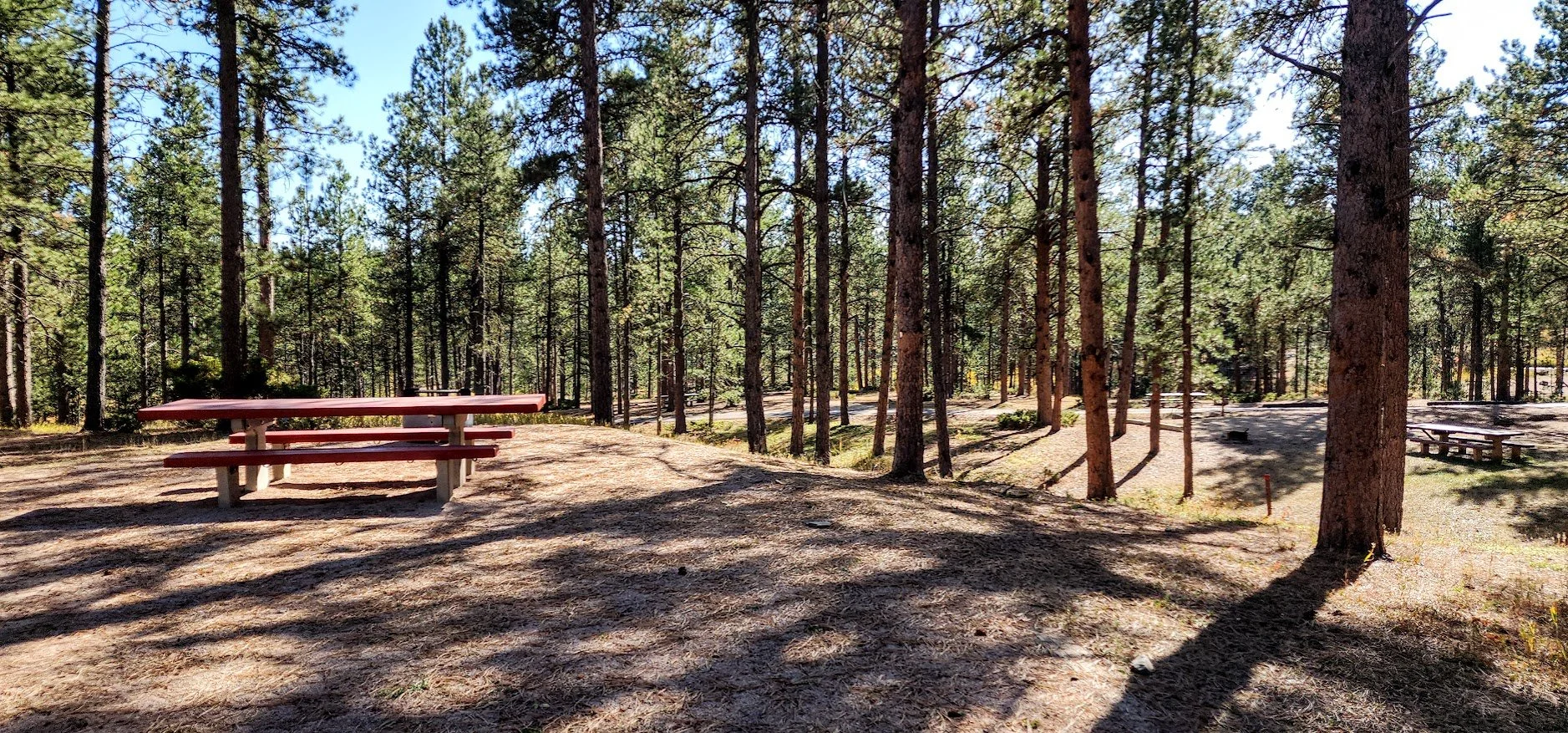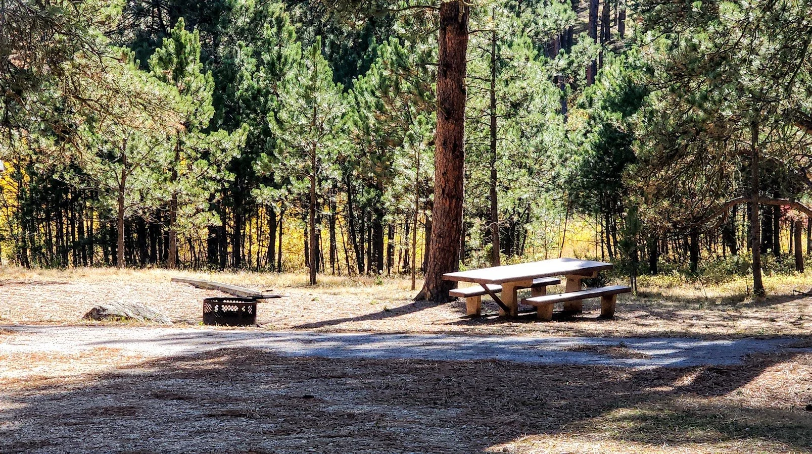 Roubaix Lake Campground is located off Highway 385 between Rapid City and Deadwood. It has four loops and the sites are spaced apart pretty good. Some of the sites have great views of the lake. At the campground there are pit toilets, a swimming beach, and opportunities for paddling, kayaking, and non-motorized boats. There is a fee to use the lake and picnic areas if not camping, but if camping the additional fee is waived. In the fall you can camp for free on a first come first serve basis, but the sites fill up pretty quickly, and the spots are limited.