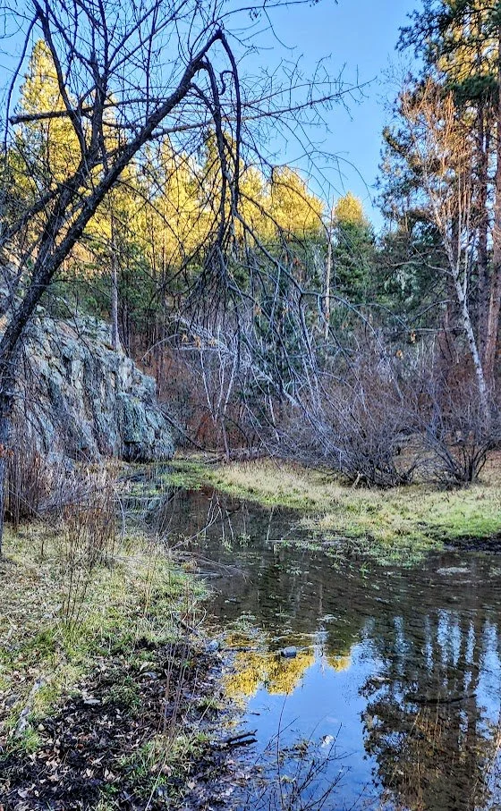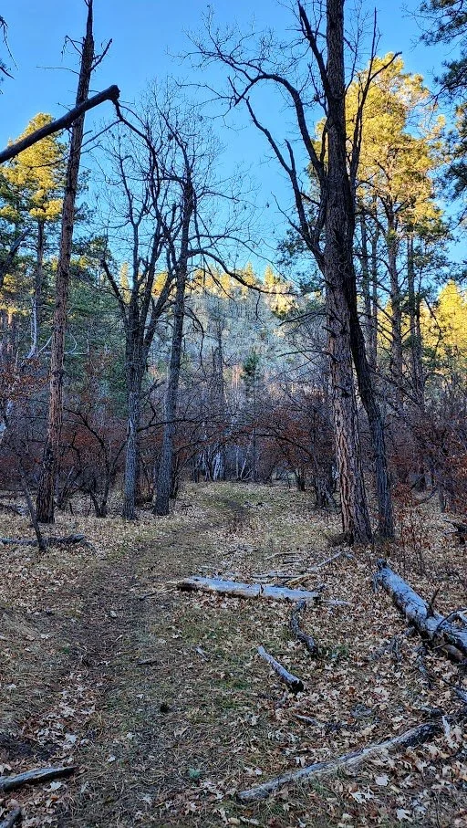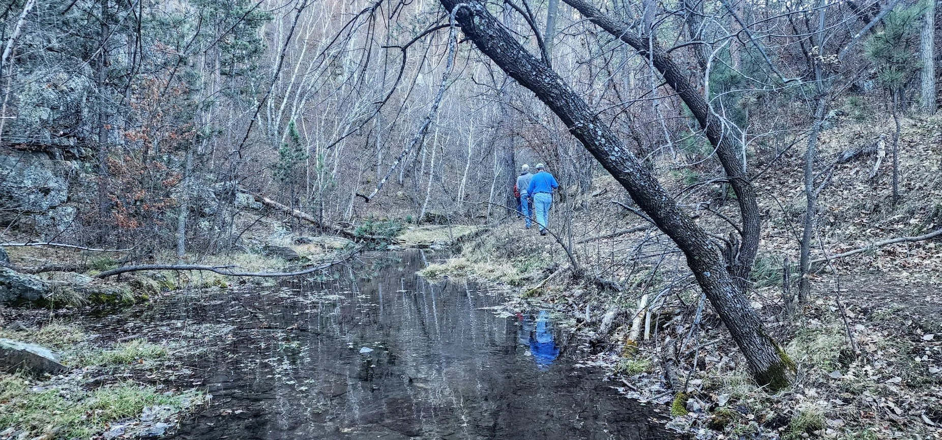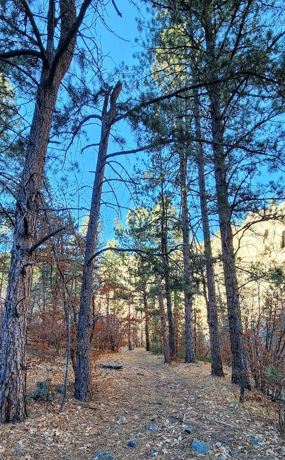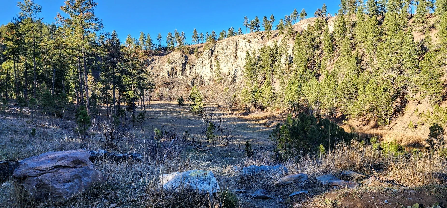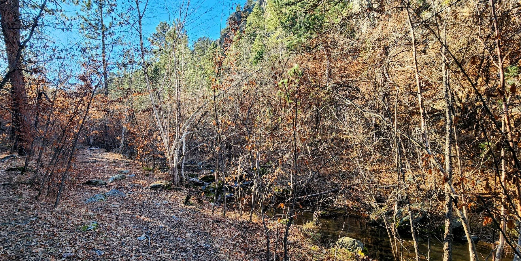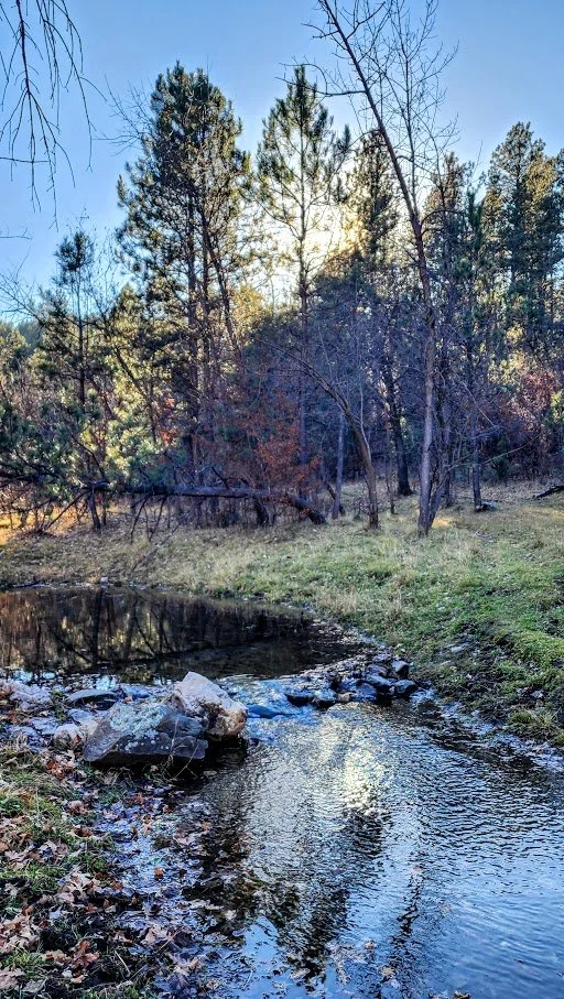 Victoria Lake Trail is a beautiful trail that is just west of Rapid City. It is fun anytime of the year and goes through a canyon which follows a stream. During the spring it can be running pretty good so prepare to get wet since you need to cross the stream several times. In the fall the trees are gorgeous. In the winter it is fun to run along the trail and play on the ice. This was a local favorite for my kids when they were small because the trail was flat, the stream was fun to play in, and the views are pretty.