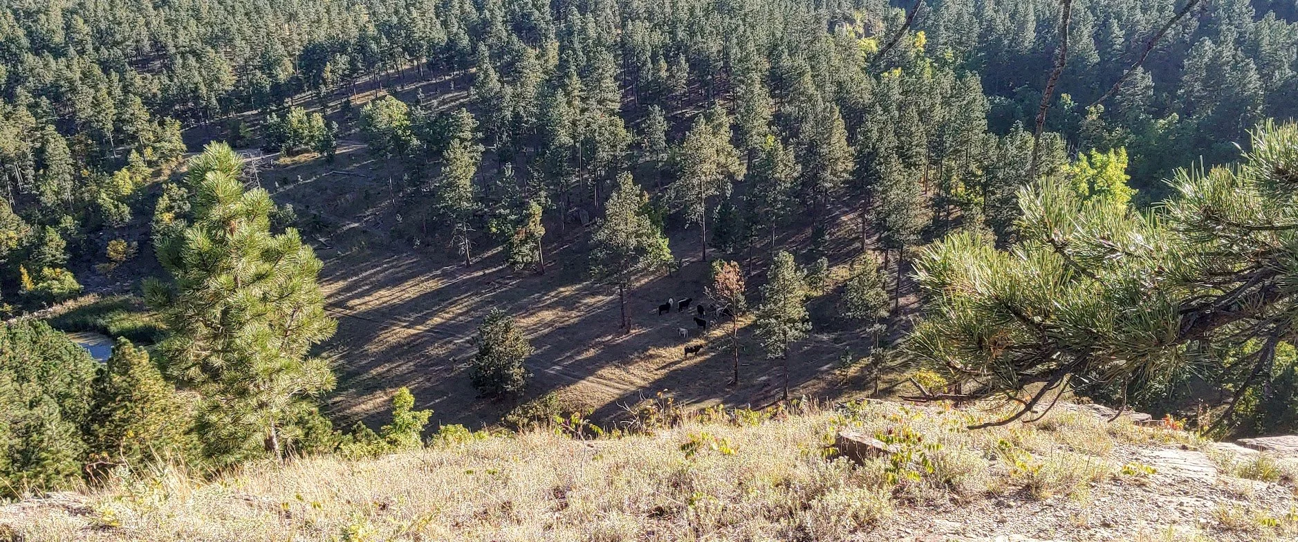 Looking down on Victoria Lake Trail from above - looks to be invaded by cows.