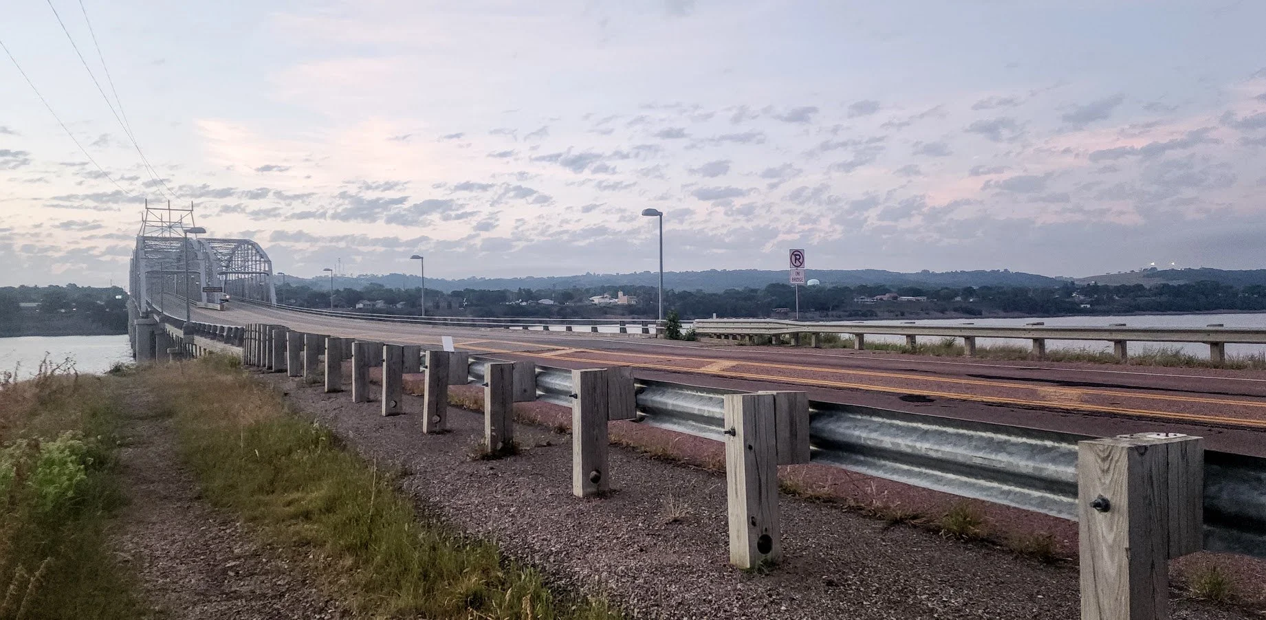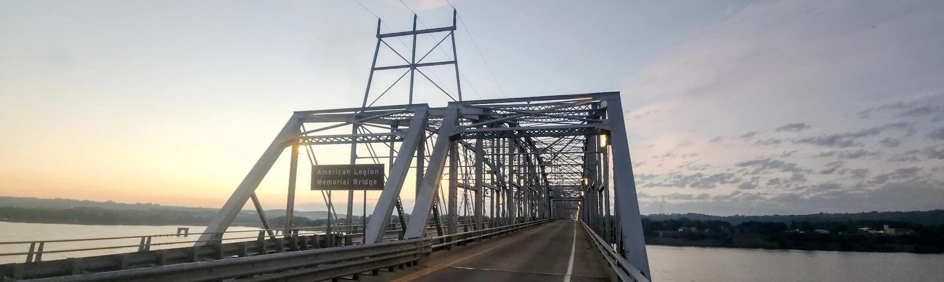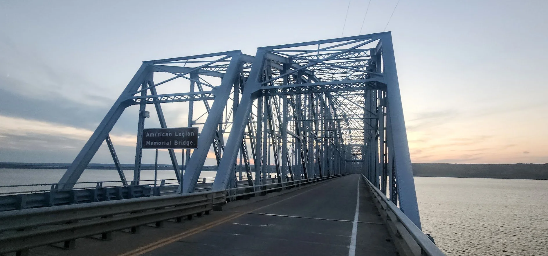 The first portion of the American Legion Bridge, originally called the Chamberlain Bridge, was constructed in 1925. The bridge was then dedicated on September 25, 1925. The bridge provided a narrow, 2 lane deck suitable for traffic in the 1920s and 1930s, but by 1950, the traffic had increased and the bridge was no longer adequate. A new bridge was relocated just east of the bridge that still today handles all the traffic on Interstate 90. That bridge opened in 1953, and is called the Lewis and Clark Memorial Bridge. The American Legion Memorial Bridge AKA - Chamberlain Bridge is on the U.S. National Register of Historic Places.