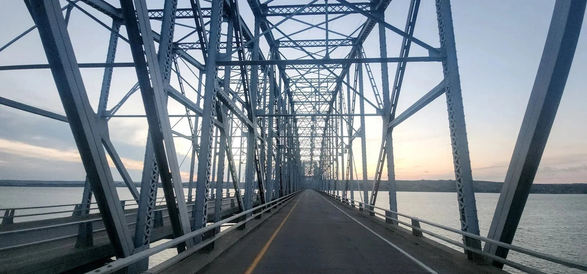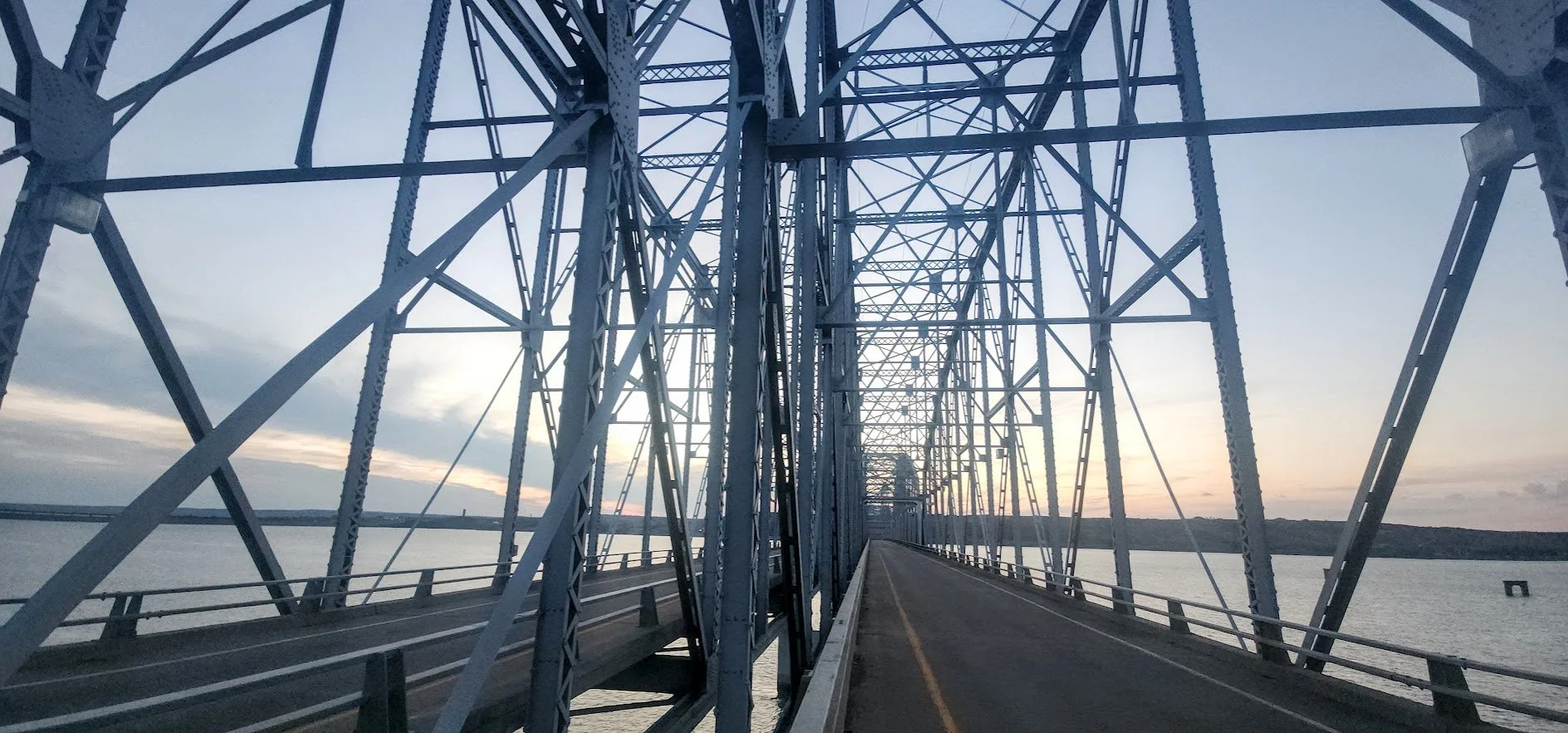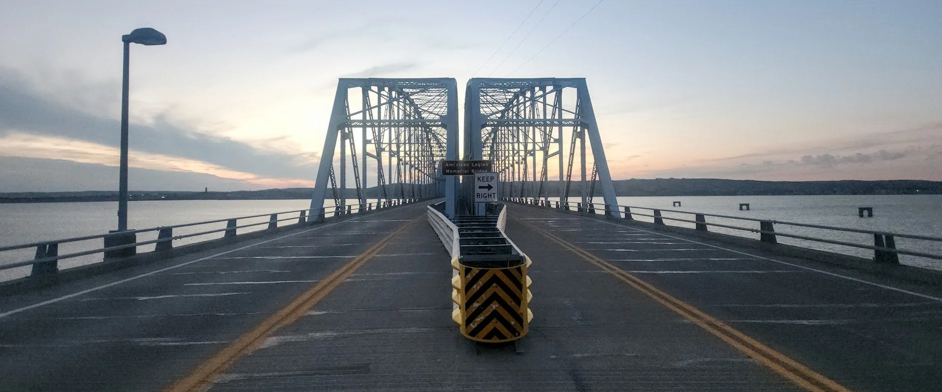 The first portion of the American Legion Bridge, originally called the Chamberlain Bridge, was constructed in 1925. The bridge was then dedicated on September 25, 1925. The bridge provided a narrow, 2 lane deck suitable for traffic in the 1920s and 1930s, but by 1950, the traffic had increased and the bridge was no longer adequate. A new bridge was relocated just east of the bridge that still today handles all the traffic on Interstate 90. That bridge opened in 1953, and is called the Lewis and Clark Memorial Bridge. The American Legion Memorial Bridge AKA - Chamberlain Bridge is on the U.S. National Register of Historic Places.