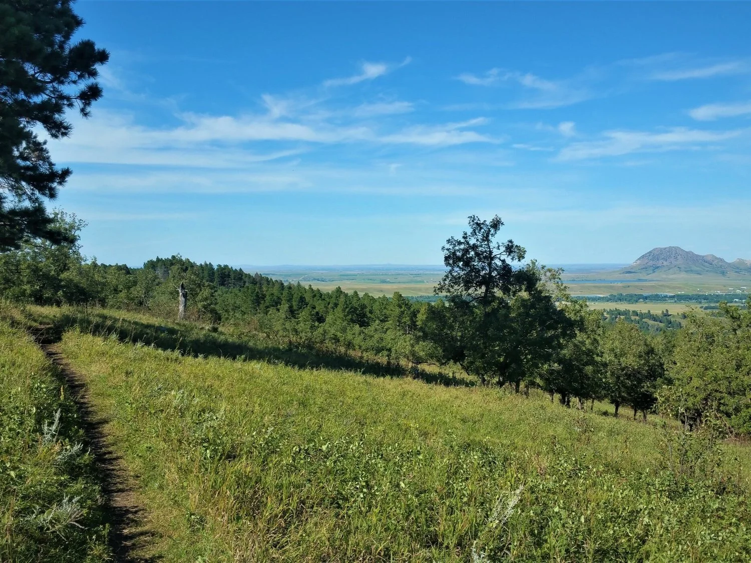 This section takes you through some prairie and cow pastures and ends at Bear Butte Lake.