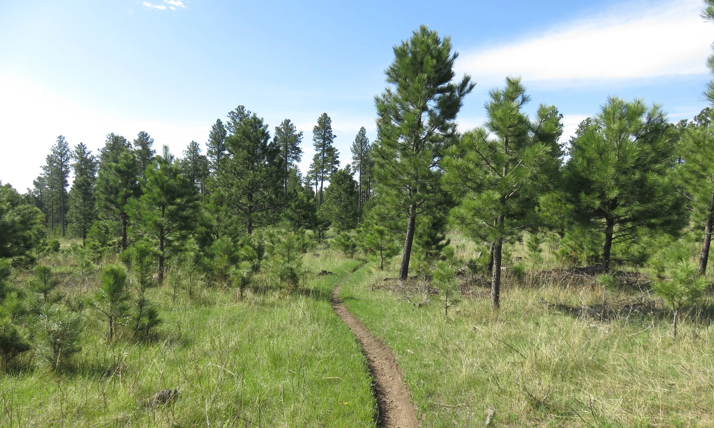 Finding the trail can be tricky and it is not easily marked. To get to the beginning of the trial take Log Porch Rd (FSR 173) off of W Highway 44 between Morse Pl. and French Dr. Go on a dirt road for about 3 miles. The trail starts a couple of different places but the main trail is at a small grassy turn off from the dirt road (pictured). A 4 wheel drive vehicle is recommended most days to get to this trail.