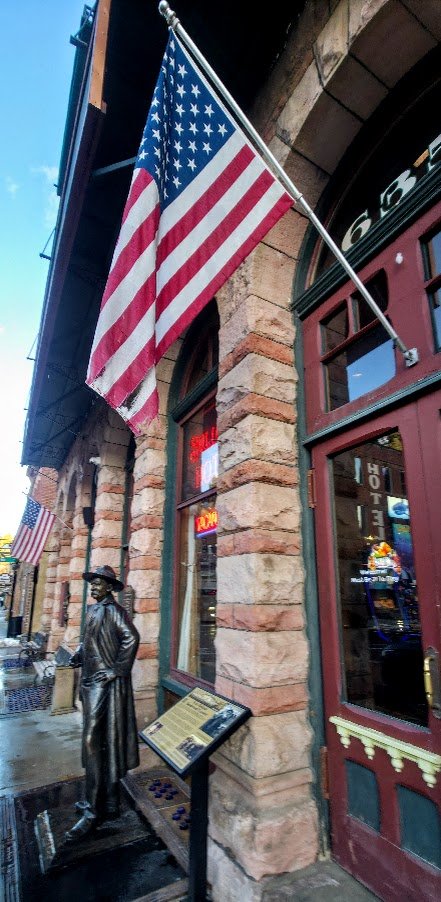 The Bullock Hotel was founded in 1895 and is located on Main Street in downtown Deadwood. It is a nice hotel that claims to be haunted by Seth Bullock. The hotel has 2 floors with rooms, a nice casino, a restaurant, and a bar downstairs. The hotel is a great place to stay with easy access to everything in Deadwood.
