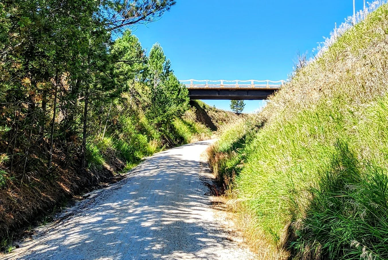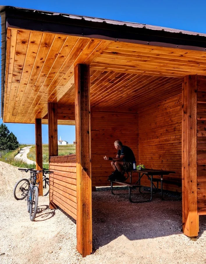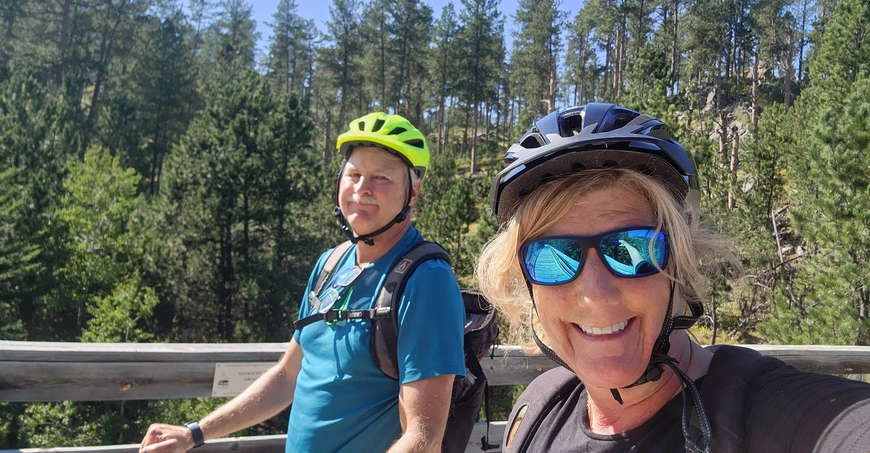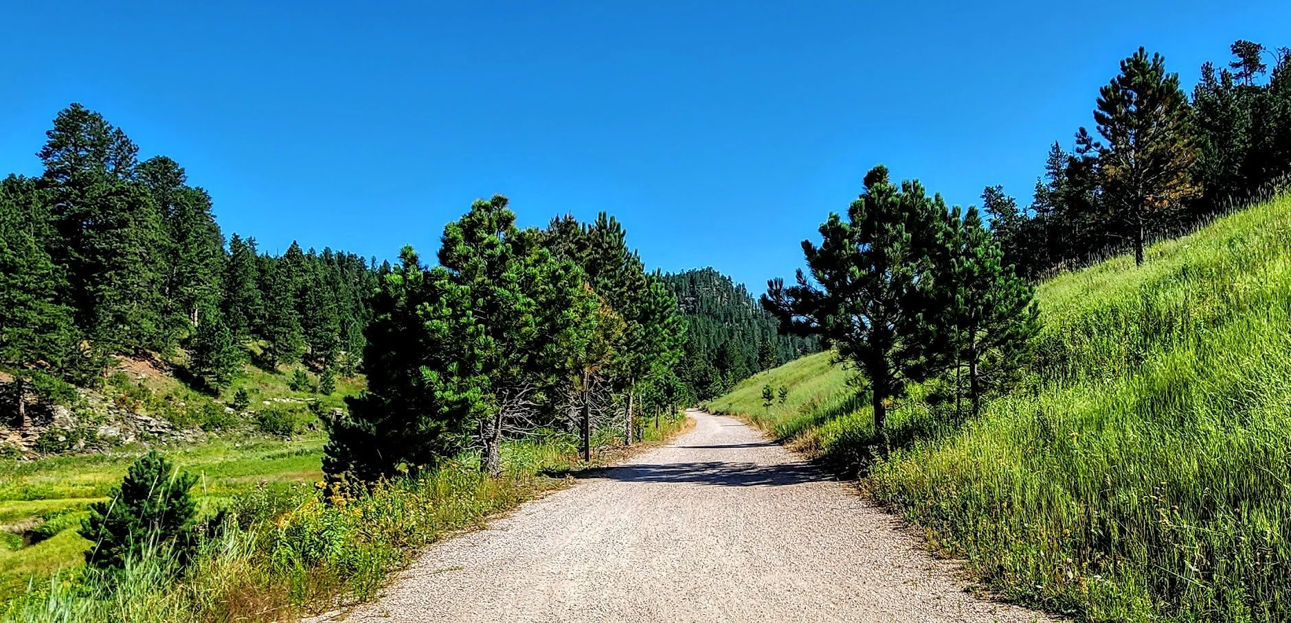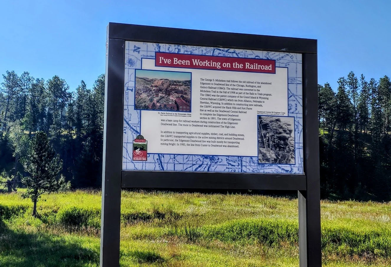 The Burlington Northern Hill City Trailhead starts at MM 60.1 in Hill City and goes to MM 49.6 at the Mountain Trailhead just south of Crazy Horse Monument. It goes pretty much uphill the whole way until you hit Crazy Horse and then it goes down the last 3/4 of a mile until it hits the next trailhead. We did this 10.5 mile trailhead starting at Hill City and then turning around. The 2 miles going up to Crazy Horse are the worst since it is at a steeper slope and you can be exposed to the sun at certain times of the day. Once you turn around at the Mountain Trailhead and get back to Crazy Horse, you pretty much glide back down to Hill City making it the best part of the trip.