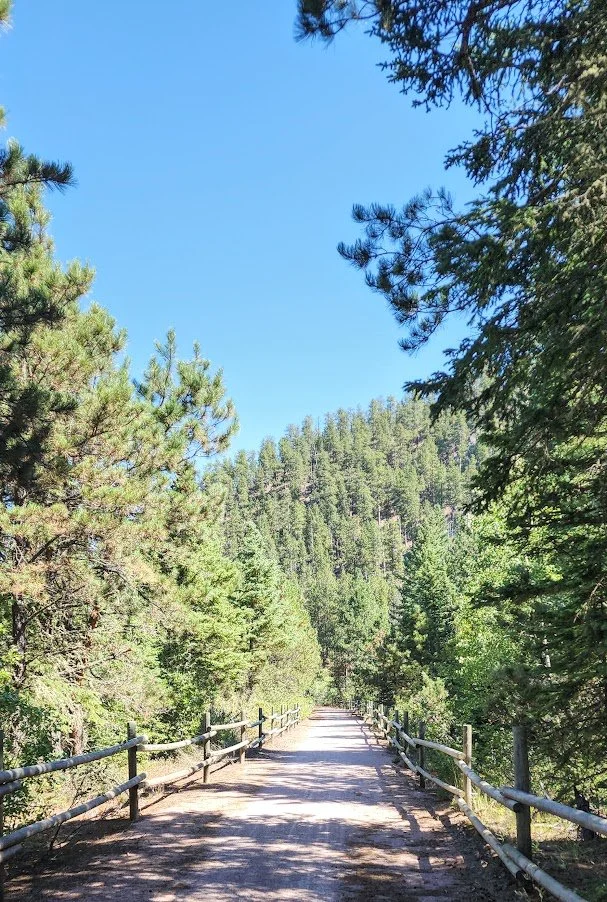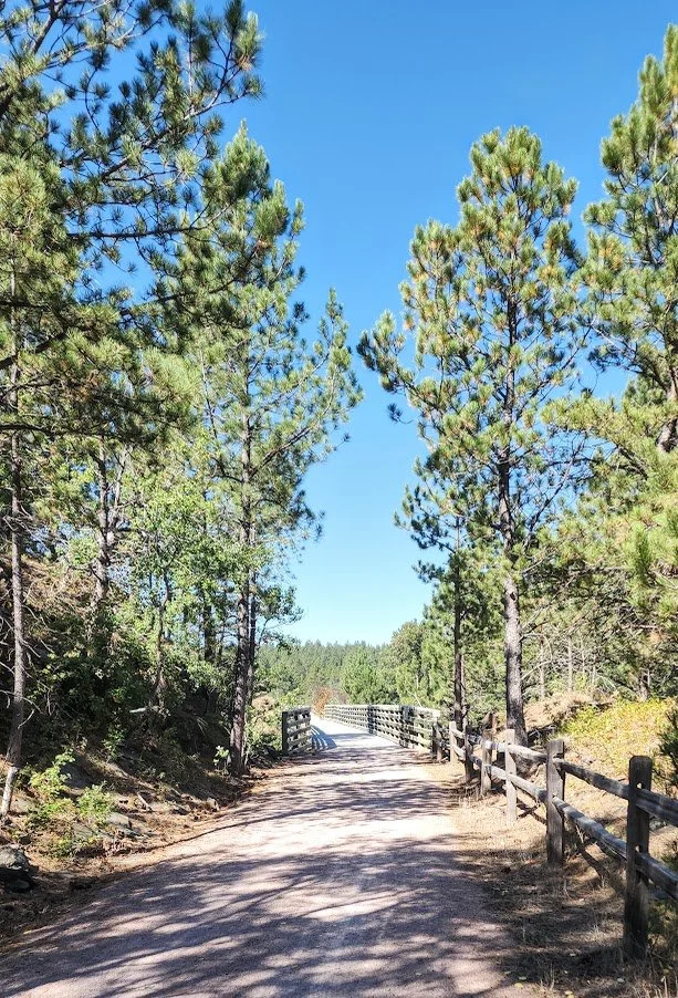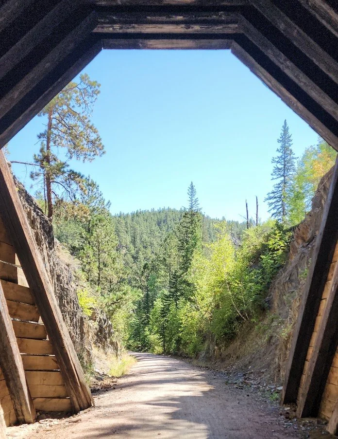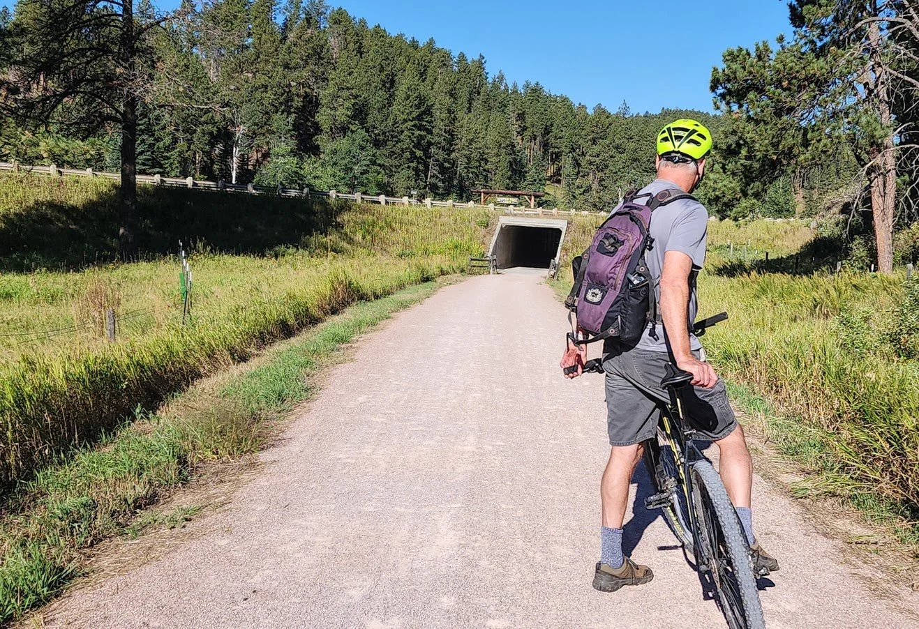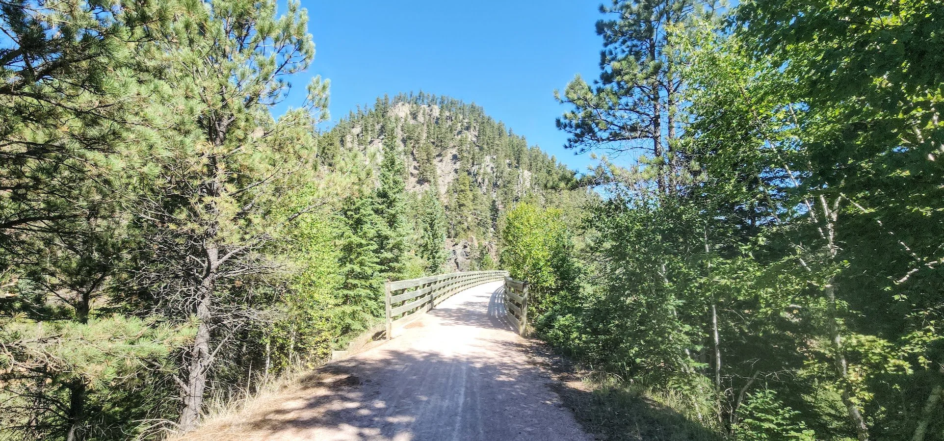 This section of the trail goes uphill for about 8 miles straight till you hit the Redfern rest area, and then after that it is pretty much straight downhill except for one more small climb. The 2nd part of the trail going into the town of Mystic is much more enjoyable with 2 tunnels, and more tree coverage. The climb out of Mystic back to Hill City is much harder though with a steeper incline and a small section which can get pretty hot in the summer.