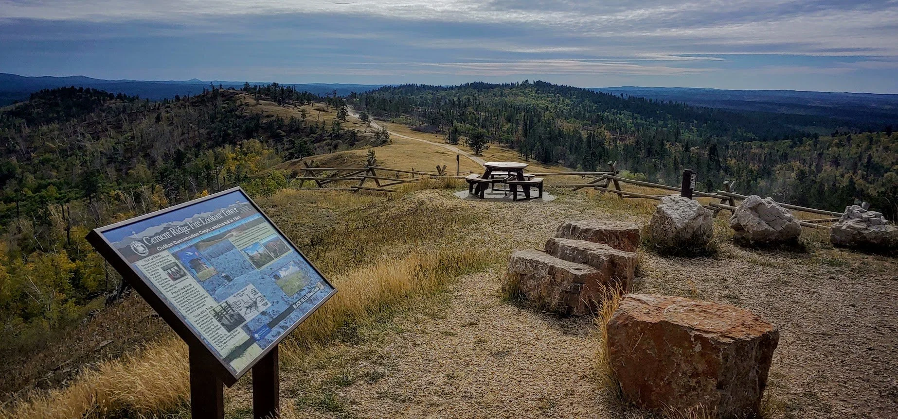 Once on top you can go in the bottom of the tower and they have some information about the tower and the surrounding area hikes. The tower itself (occupied) is off limits for now due to the virus. The views on the top are amazing and take your breath away. There are two picnic areas on top, and I highly recommend bringing a lunch and having a picnic in the skies. There is also a vault toilet on site. This side trip is definitely worth it if you are visiting the Spearfish Canyon area.