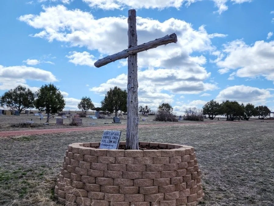 Inyan Kara Cemetery is located on Highway 585 between Four Corners and Sundance, Wyoming. It is on private property and you can barely see it from the highway.