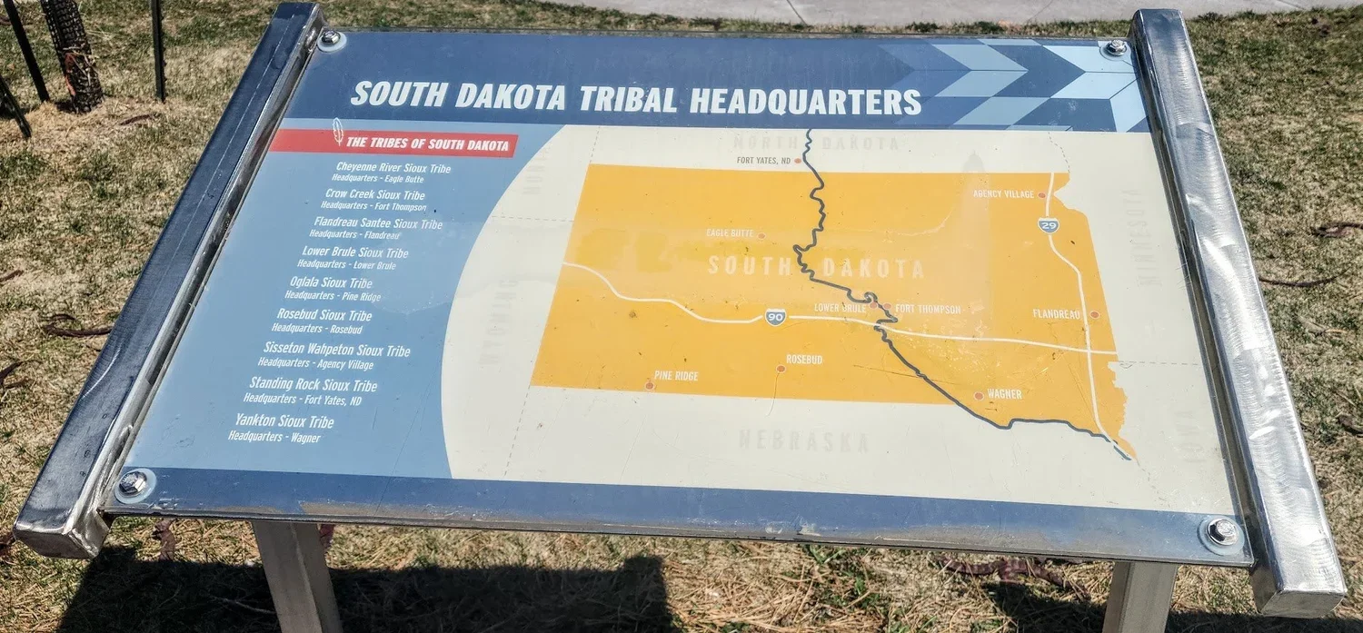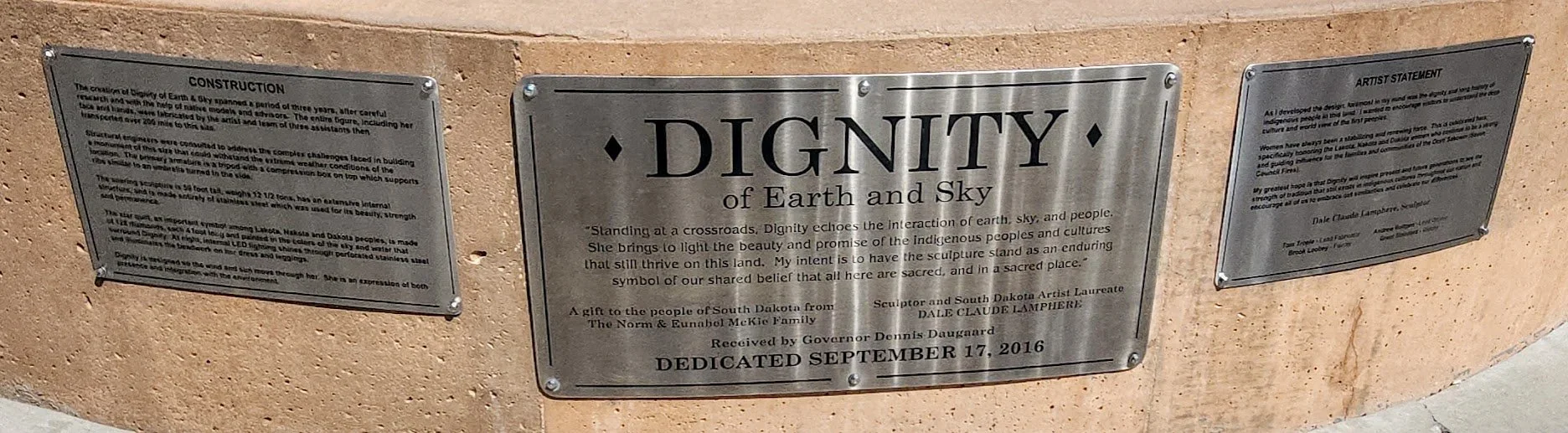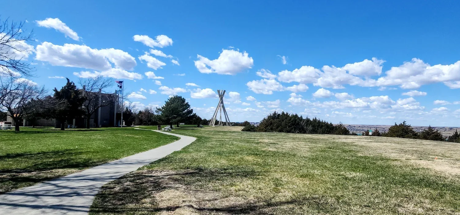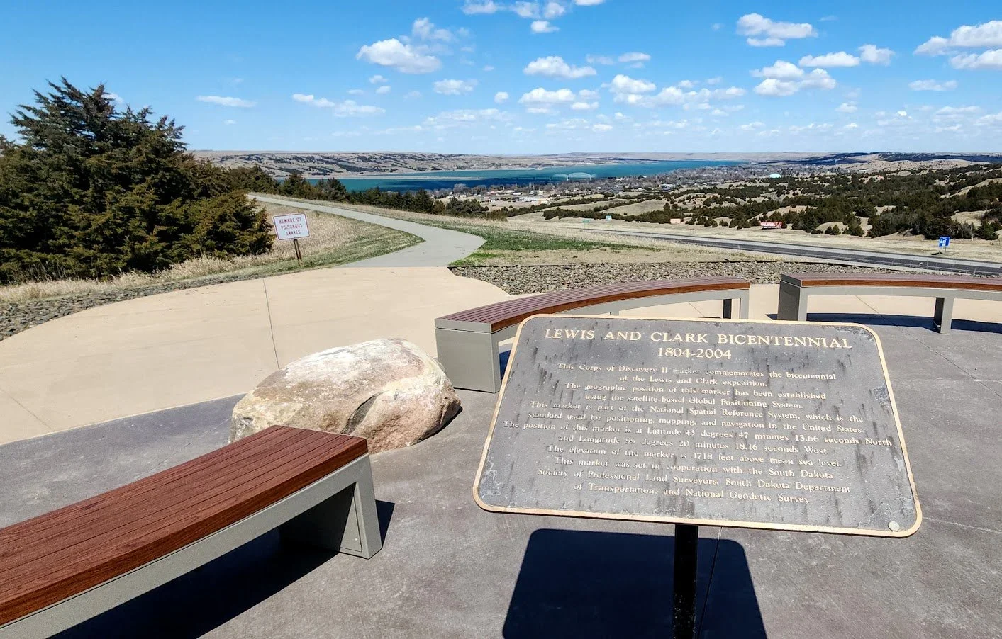 Located at mile maker 264 Interstate 90 near Chamberlain, South Dakota this welcome center is the prettiest one in the state. It hosts the statute Dignity of the Earth and Sky, beautiful walking paths, great views of the Missouri River, shaded picnic areas, and an information center with Lewis and Clark exhibits. It is the perfect place to stop and rest when crossing the state.