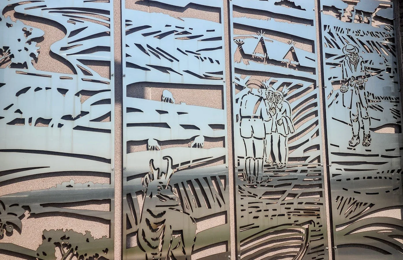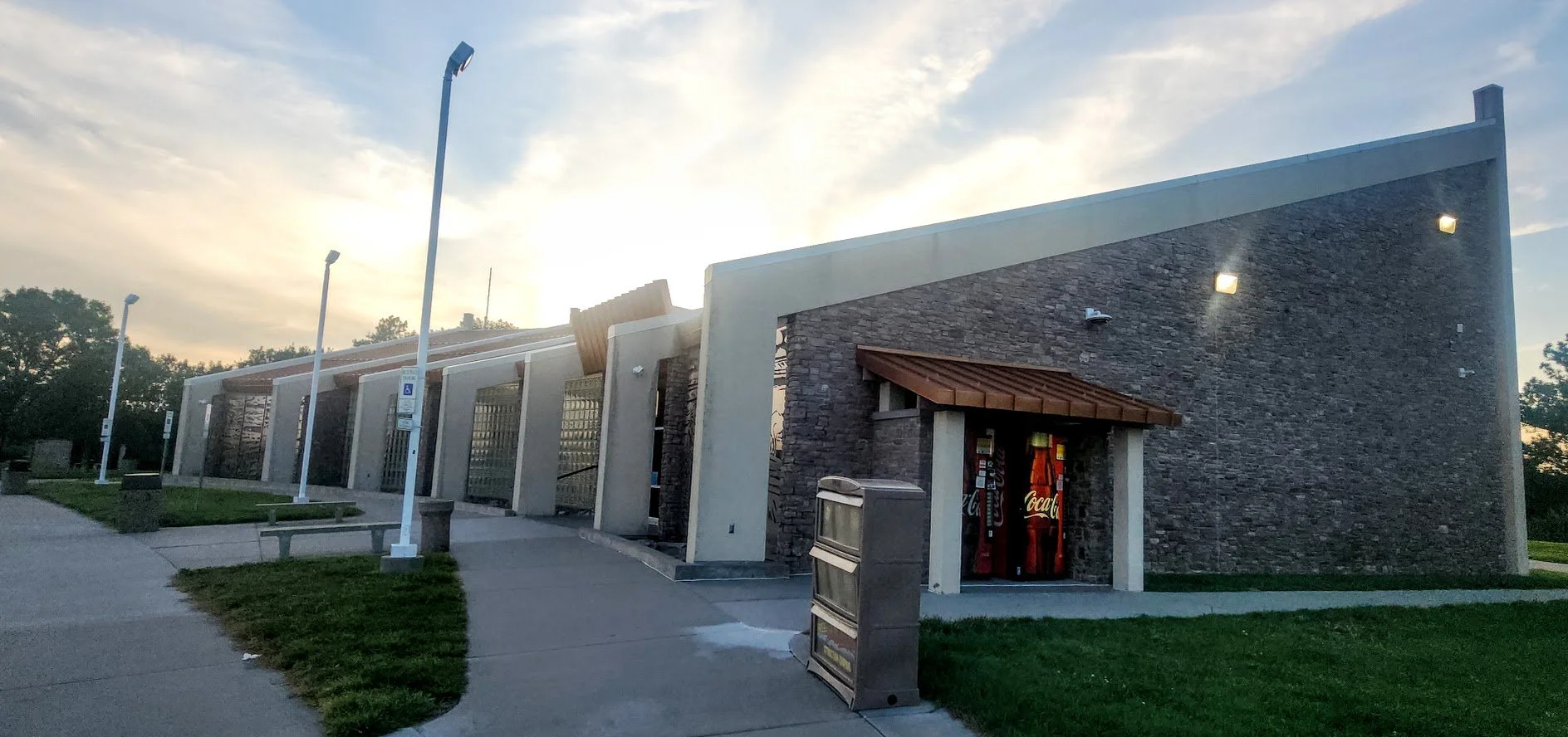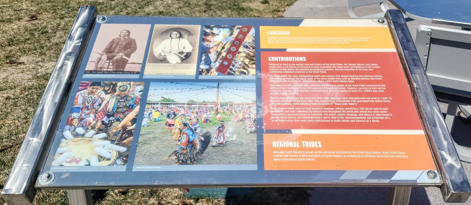 Located at mile maker 264 Interstate 90 near Chamberlain, South Dakota this welcome center is the prettiest one in the state. It hosts the statute Dignity of the Earth and Sky, beautiful walking paths, great views of the Missouri River, shaded picnic areas, and an information center with Lewis and Clark exhibits. It is the perfect place to stop and rest when crossing the state.