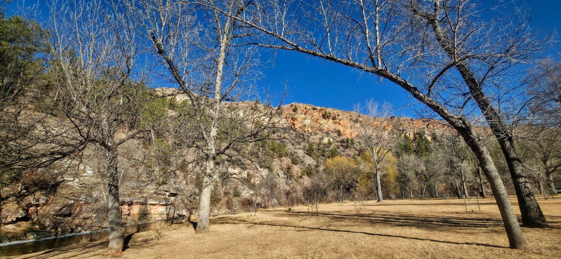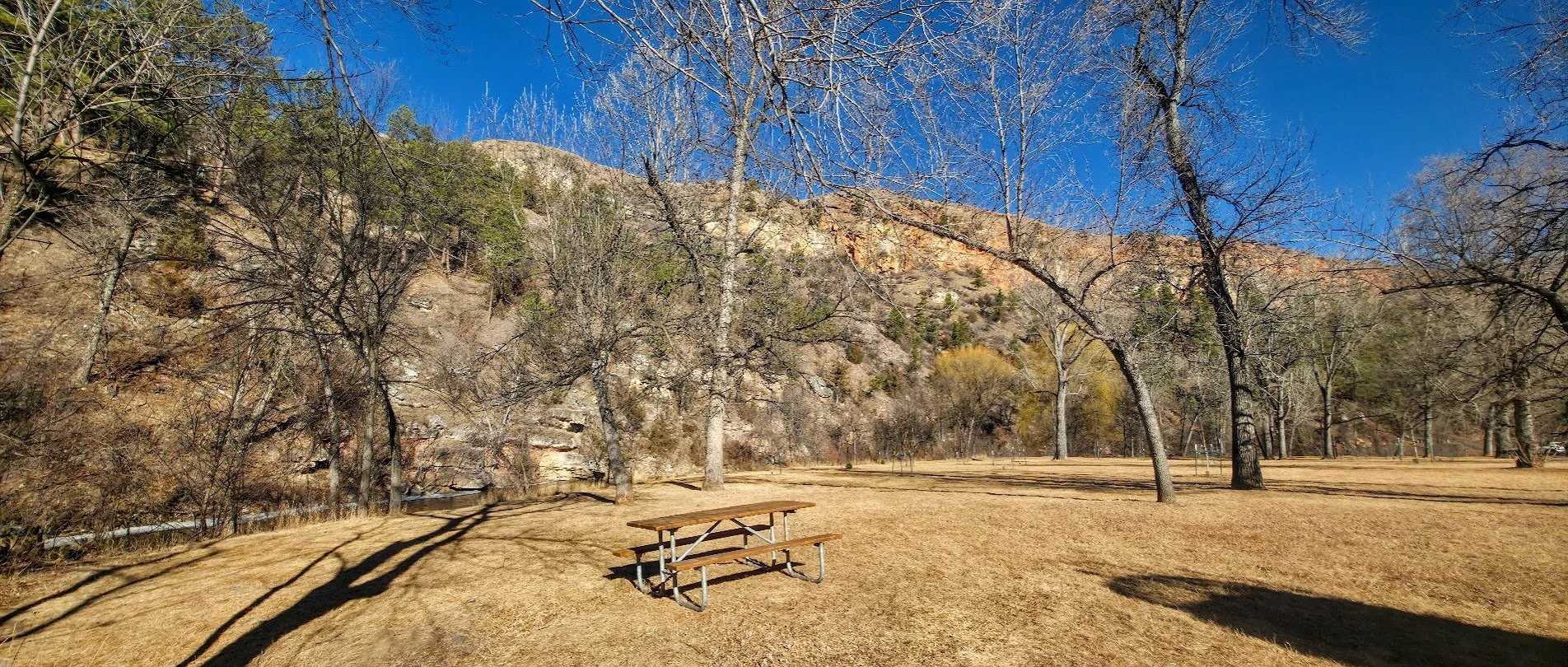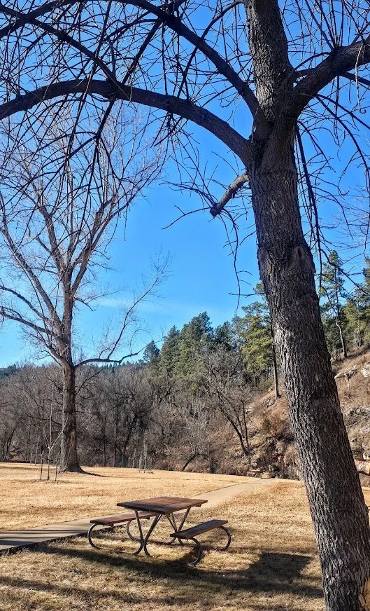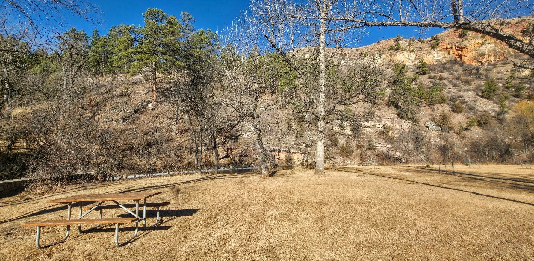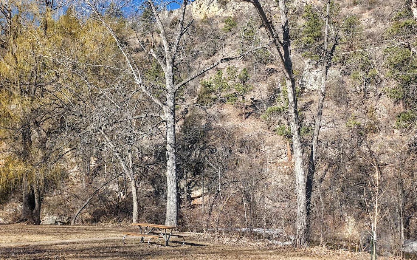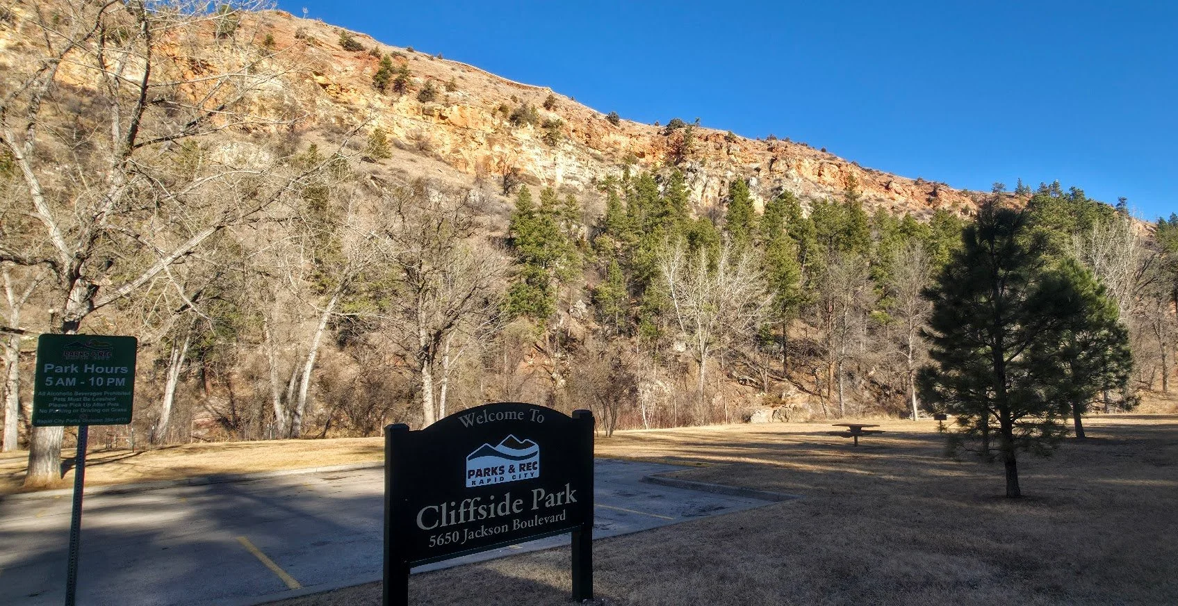 Cliffside Park is a small park in Rapid City on the west side off town off Jackson Blvd. It is a pretty park next to the stream with a few picnic tables. There are no restrooms on site.