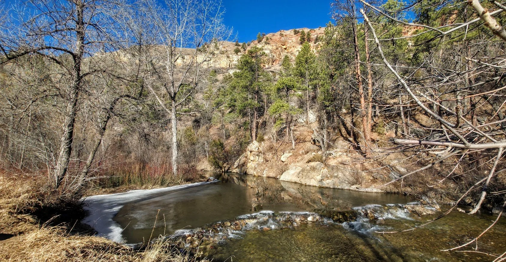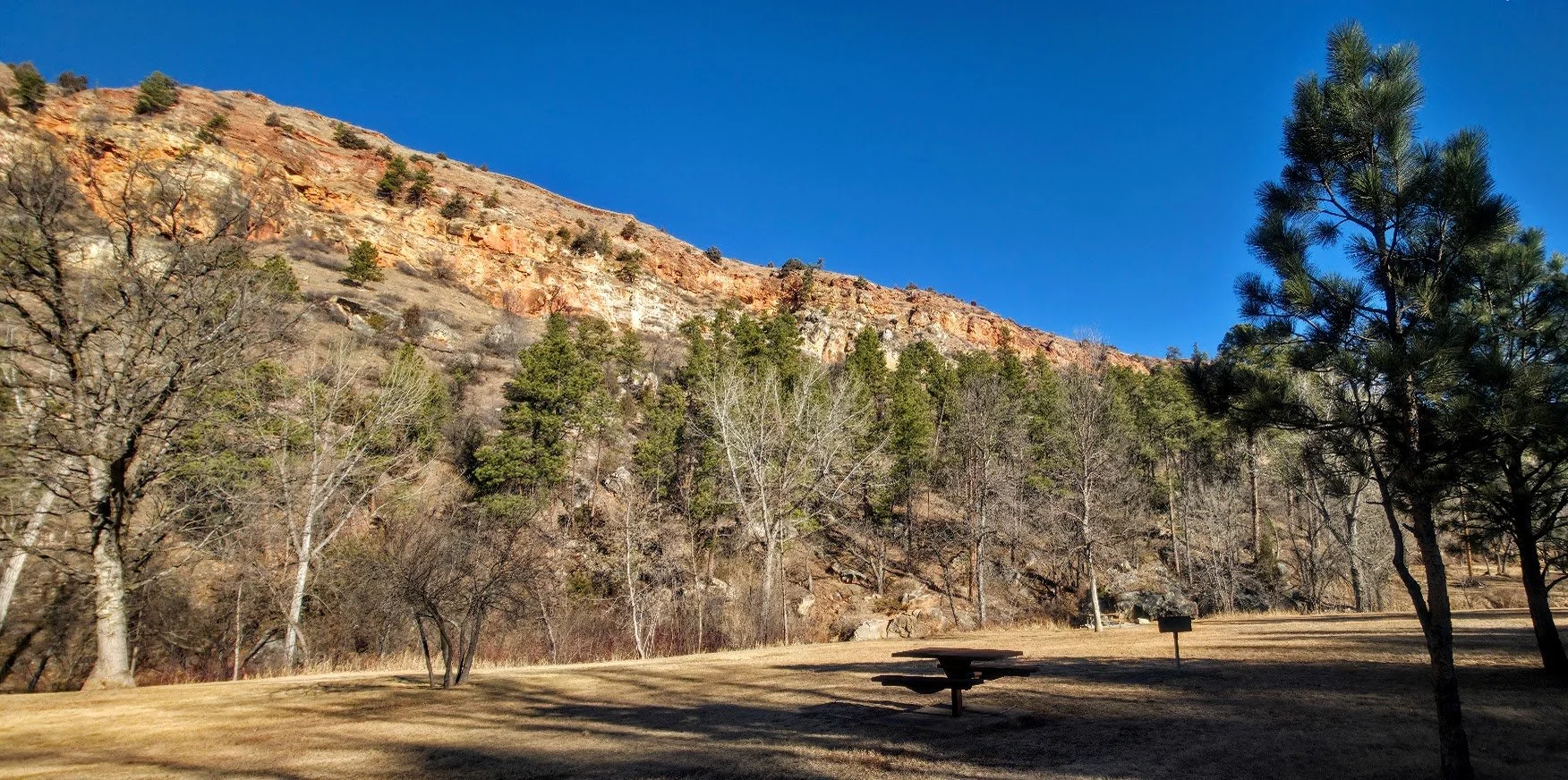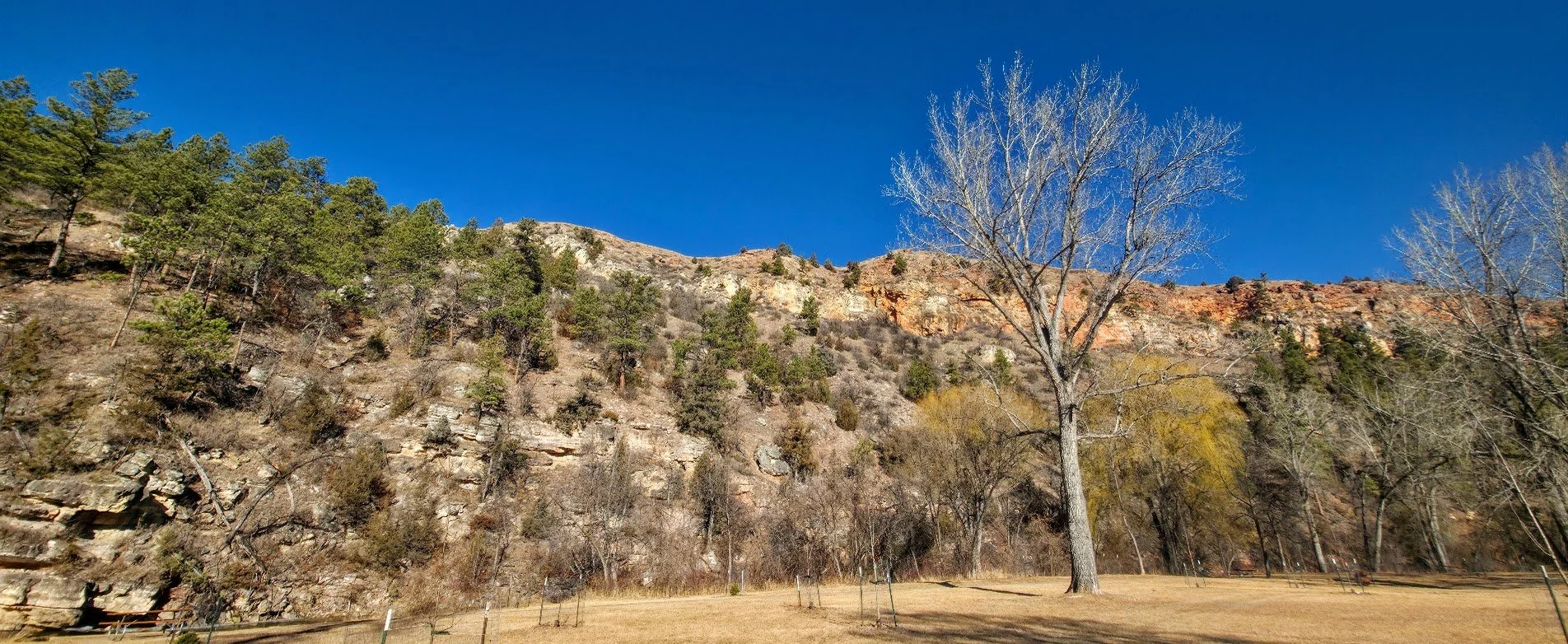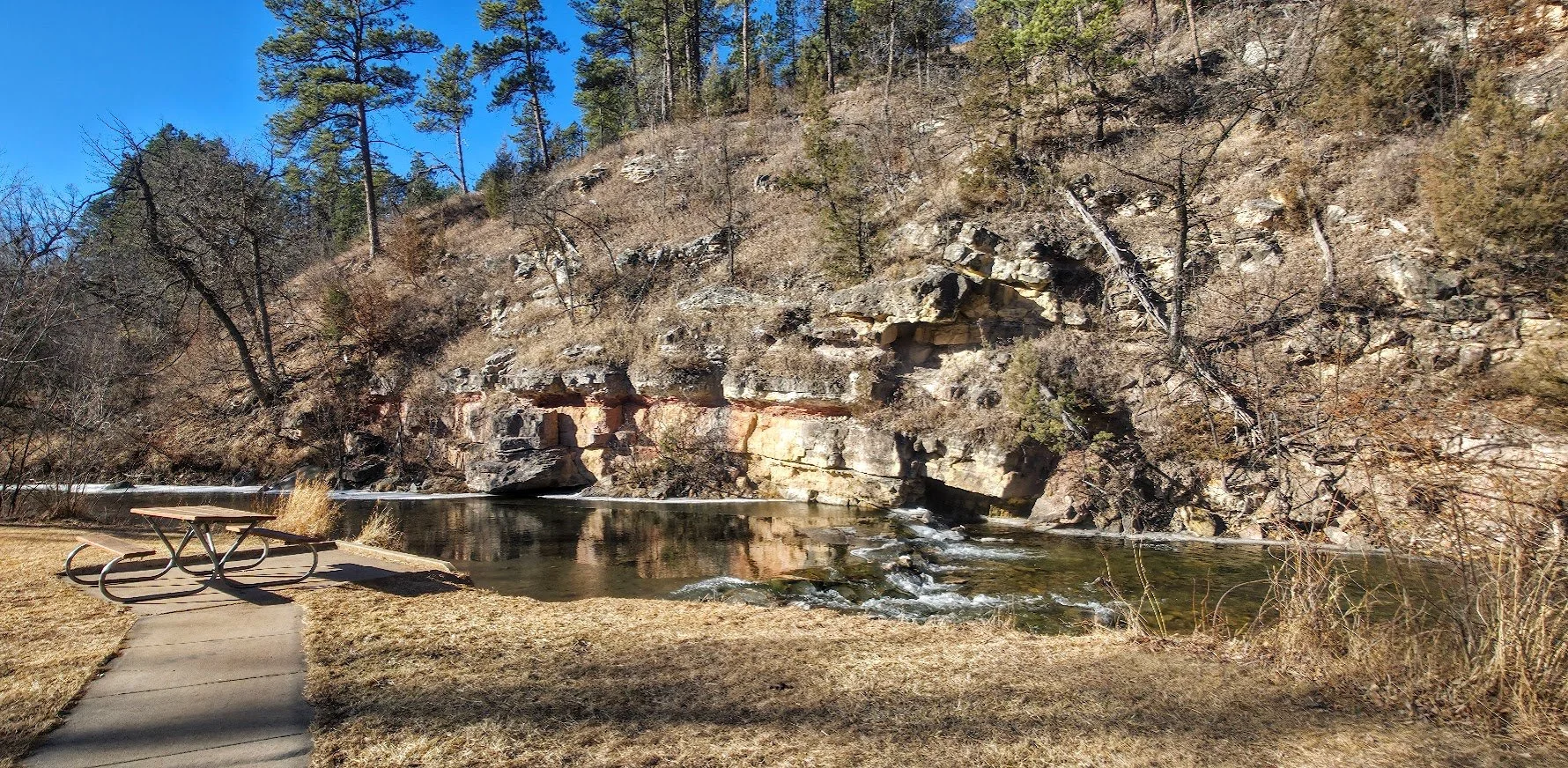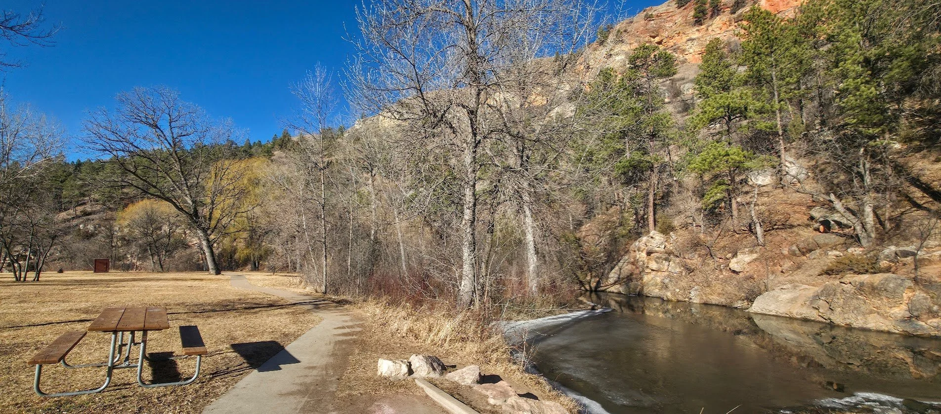 Cliffside Park is a small park in Rapid City on the west side off town off Jackson Blvd. It is a pretty park next to the stream with a few picnic tables. There are no restrooms on site.