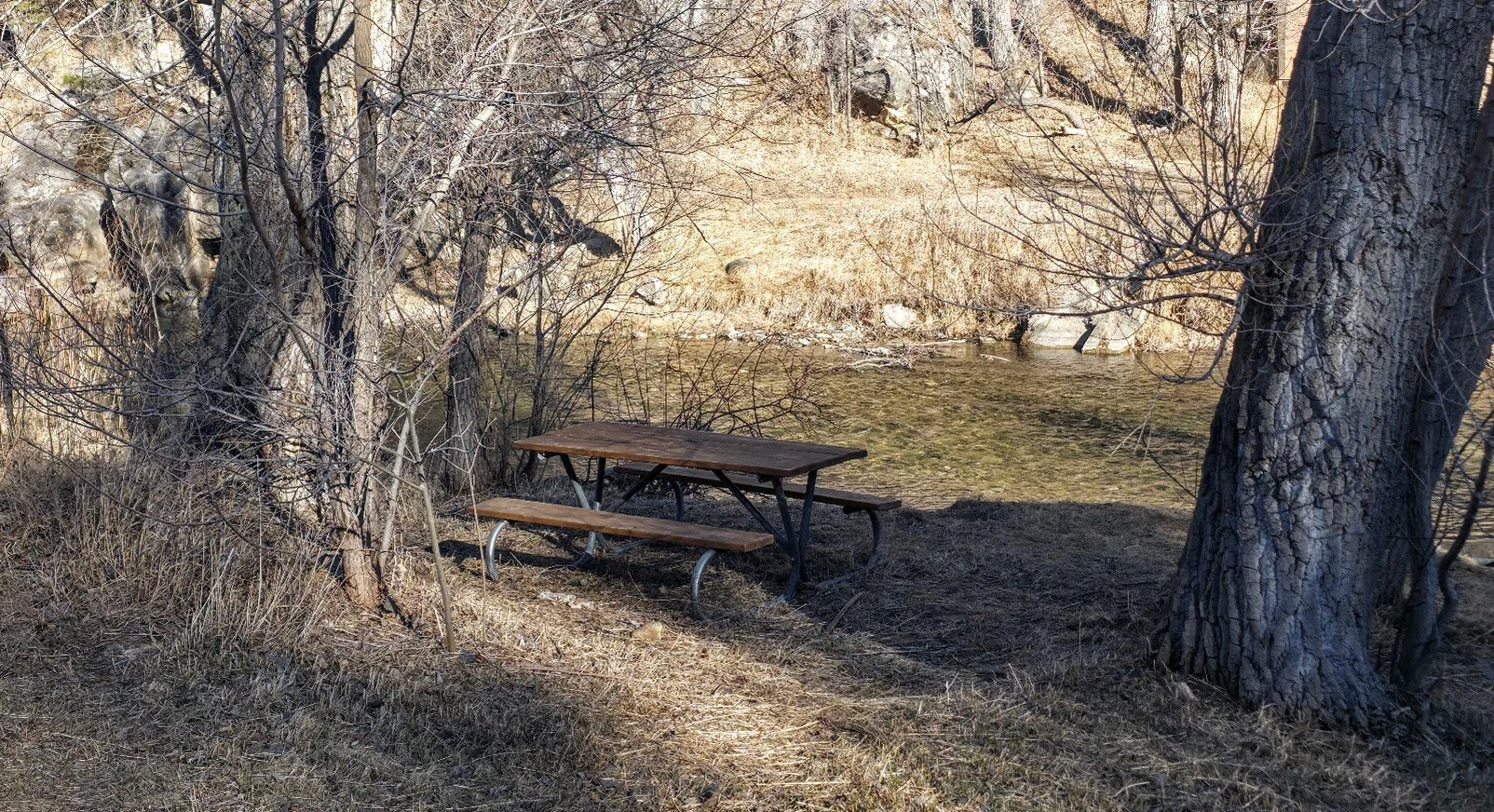 Nice table right by the stream.