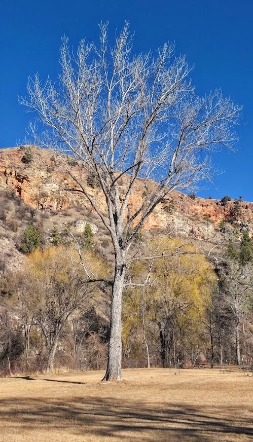 This tree added brightness to the park in November and the leaves were fun to watch gathering in the stream.