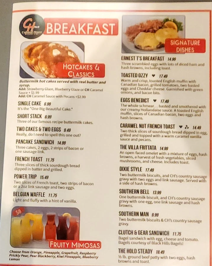 Breakfast menu. The Dixie Style has always been my favorite.