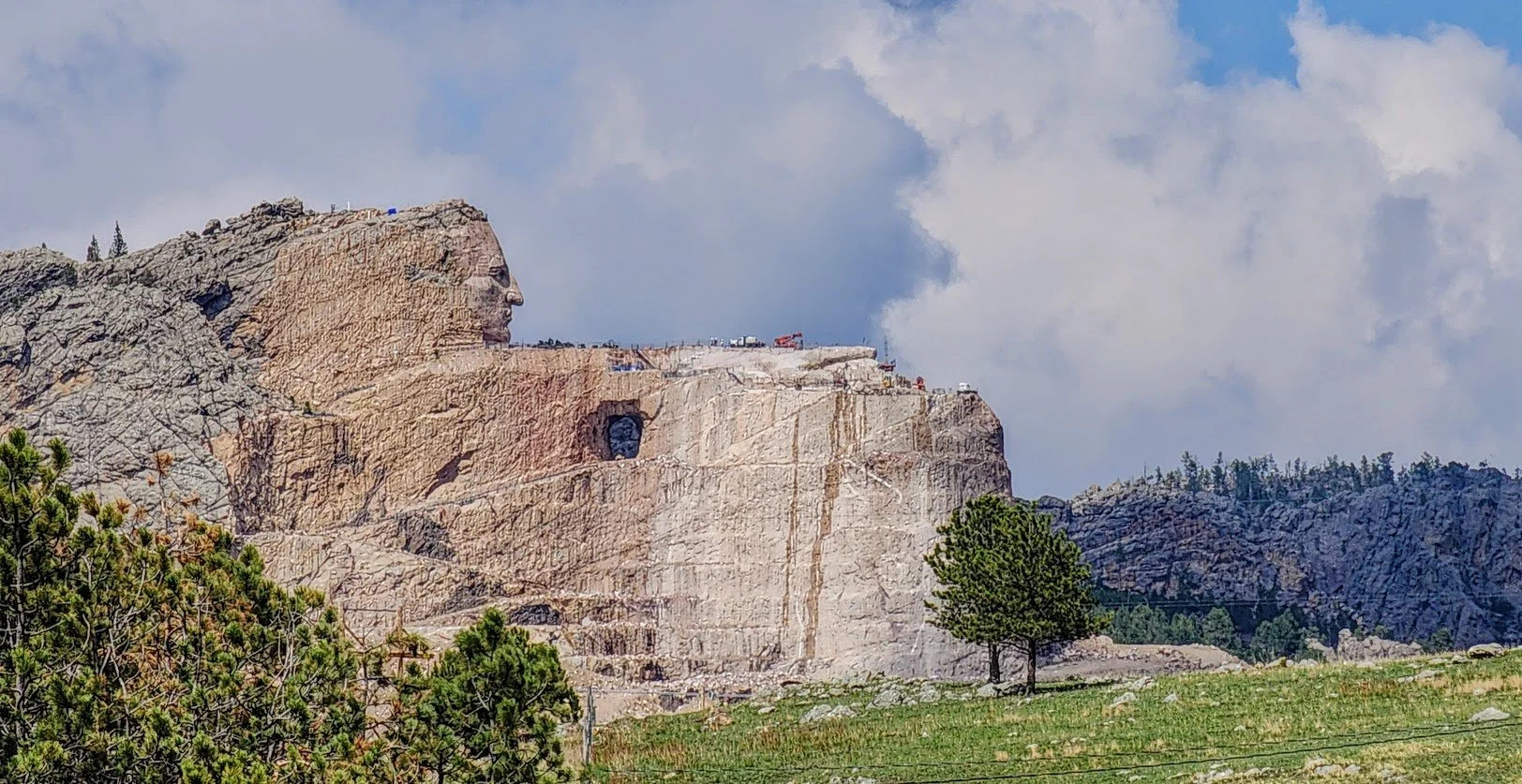 Crazy Horse Memorial is a mountain monument that is still under construction in the Black Hills. It is being built to honor Crazy Horse who was a Native American war leader of the Oglala Lakota in the 19th century. Cost of entrance to the memorial is $35.00 a carload as of 2023. There are other fees for those on a motorcycle, those on a bike, and those who walk in. The fees go to support the mountain carving, The Indiana Museum of North America, and the Indian University of North America. Twice a year there is a volksmarch where you can climb to the top of the mountain to get a good view of Crazy Horse for a small fee. There are also other events throughout the year such as night blasts, laser light shows, art shows, etc. Check their website for more details. To get to Crazy Horse take Highway 385 - it is just north of the town of Custer or south of the town Hill City in Custer county.
