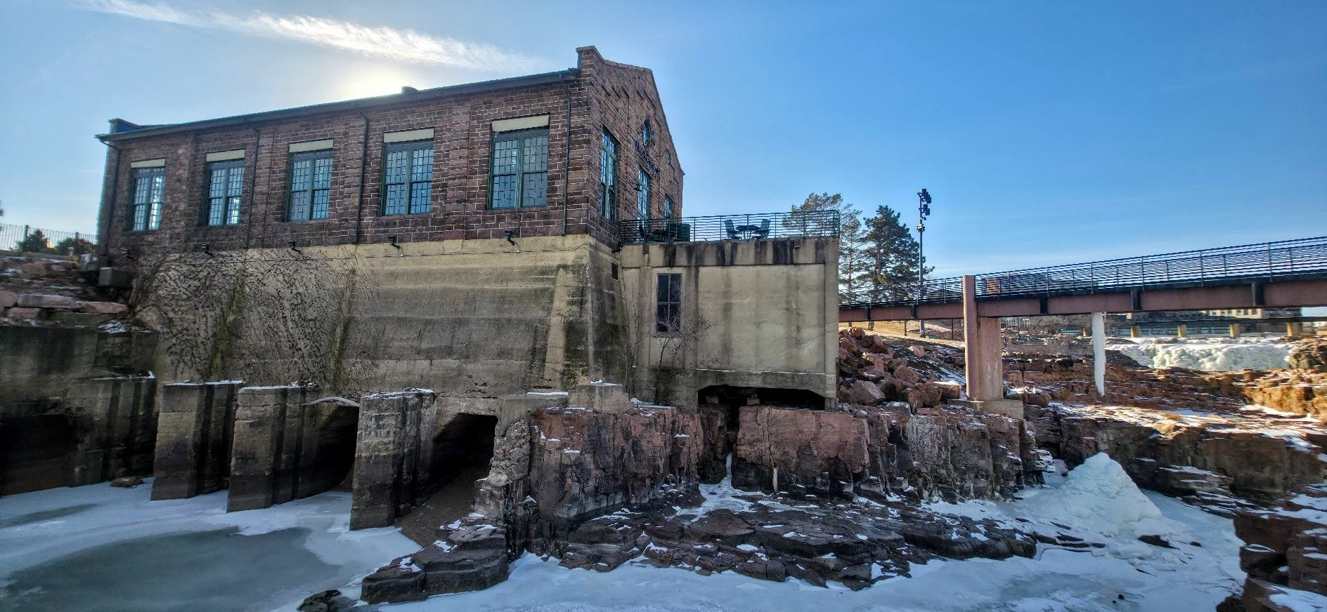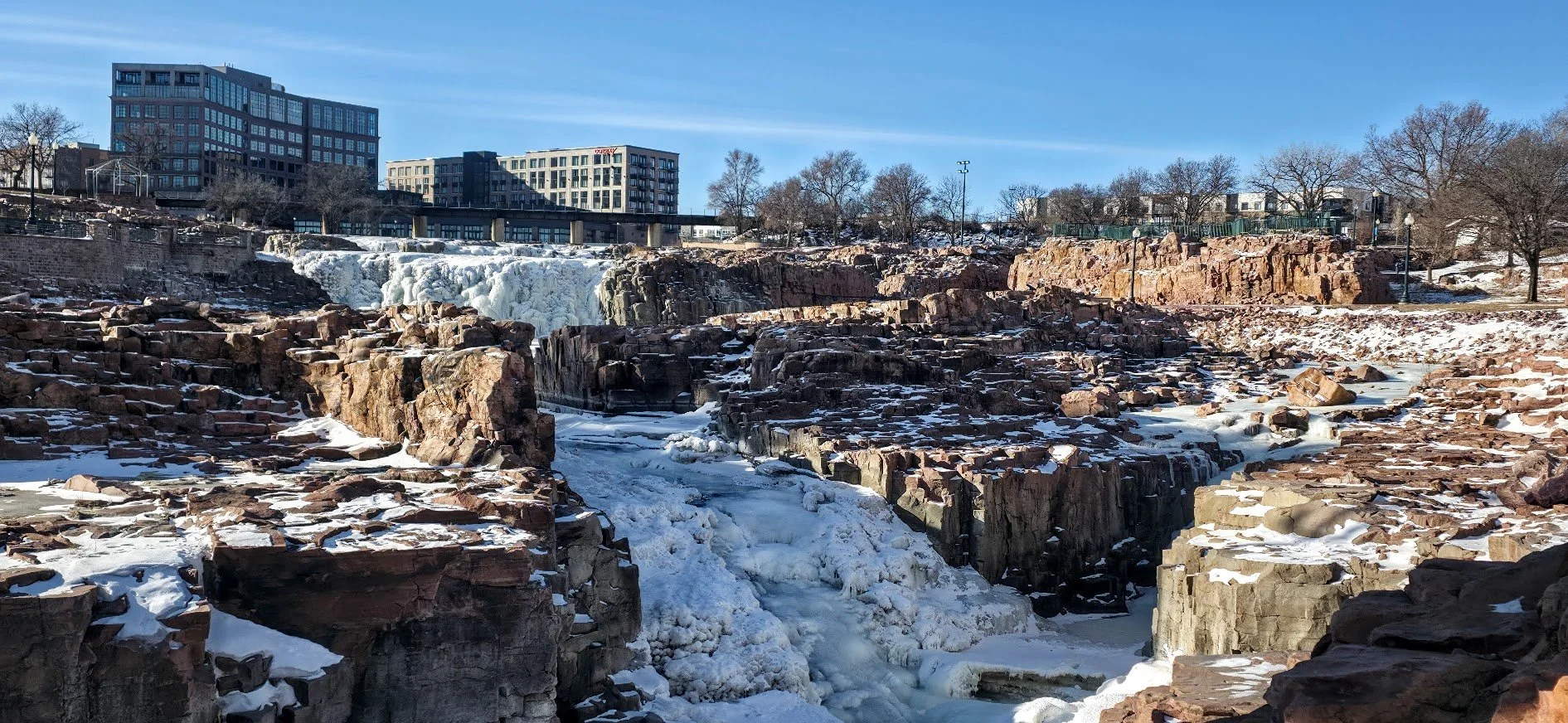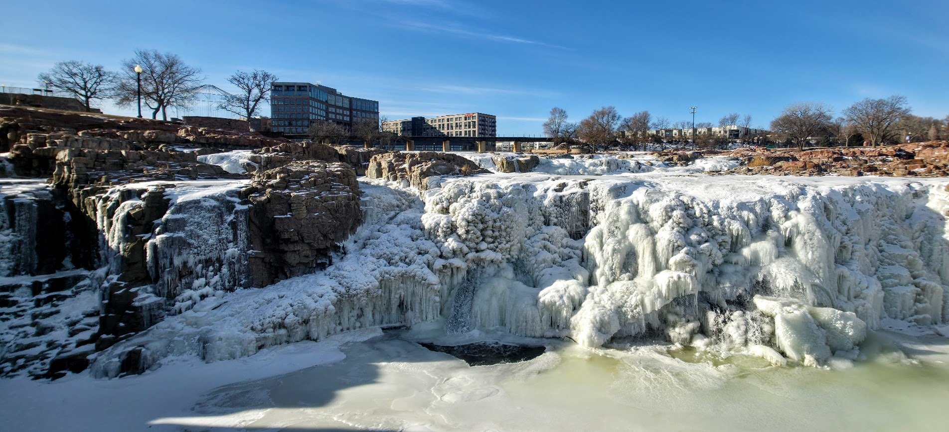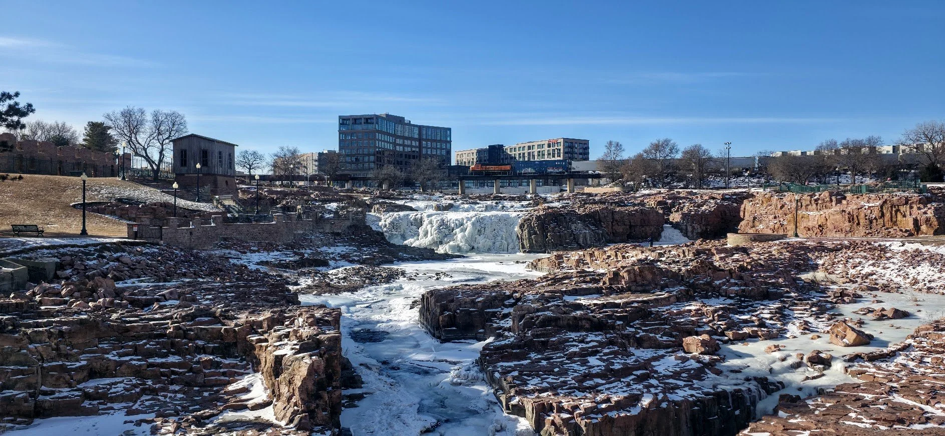Falls Park in Sioux Falls, South Dakota is located on 123 acres of land. There are waterfalls, sculptures, informative signs, a visitor’s center, and historic buildings and ruins on site. There is a beautiful walkway along the river, and it has access to playgrounds, and picnic areas. The Falls are especially beautiful in the winter when they light up not only the falls, but the whole area.