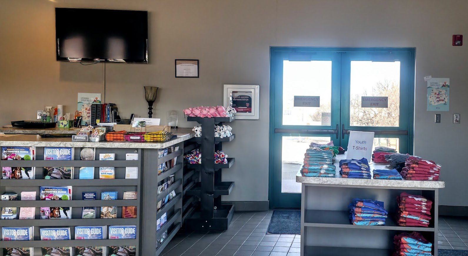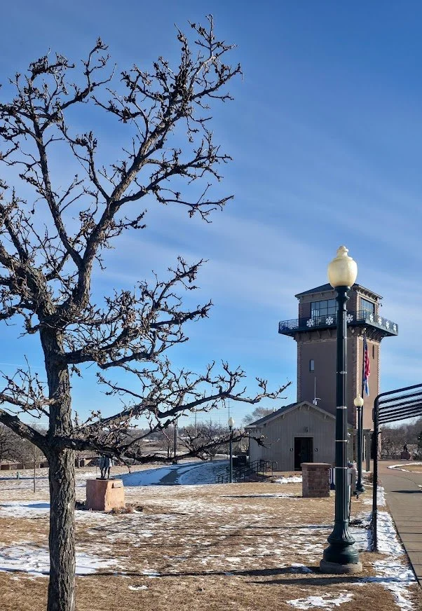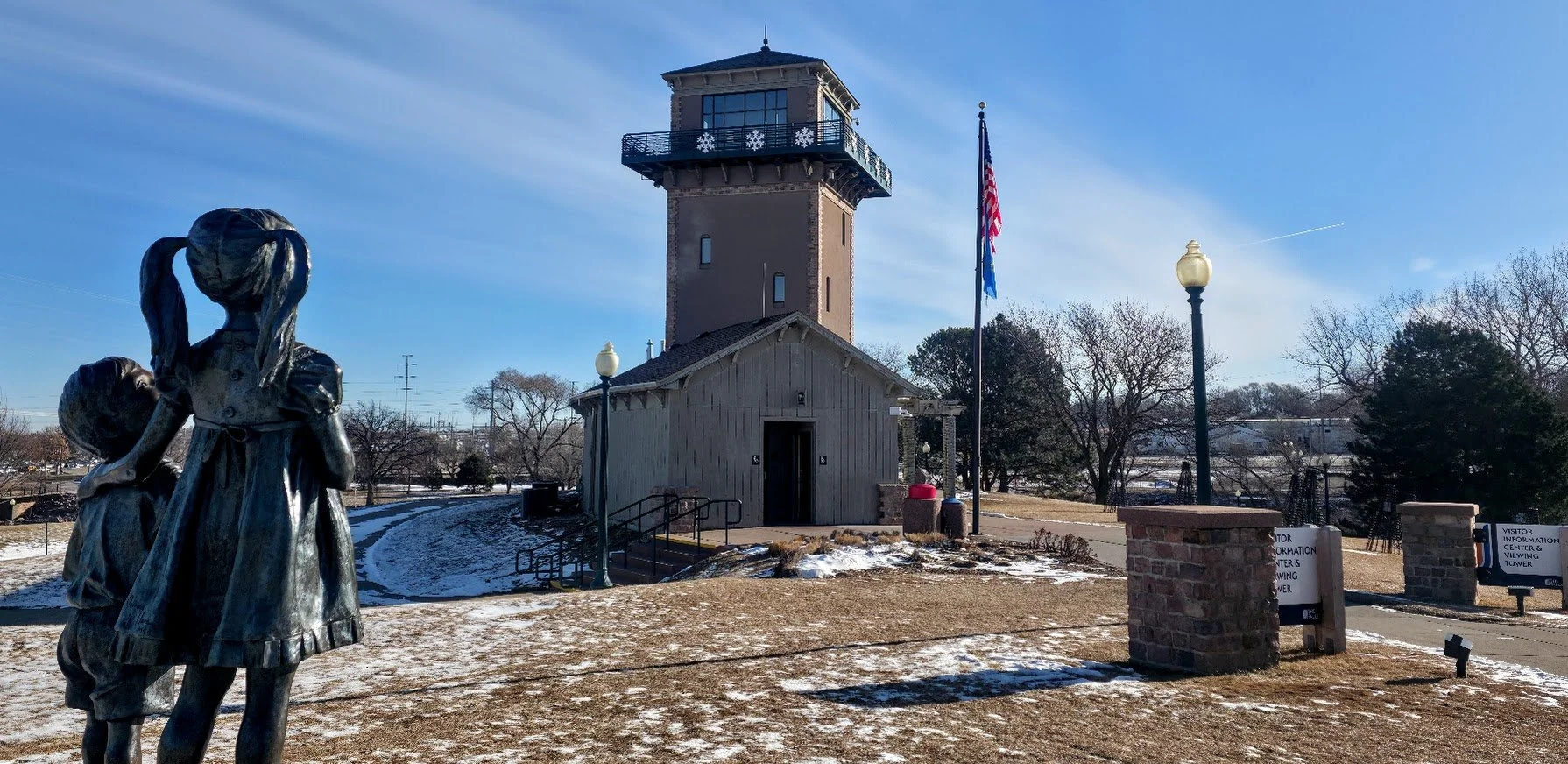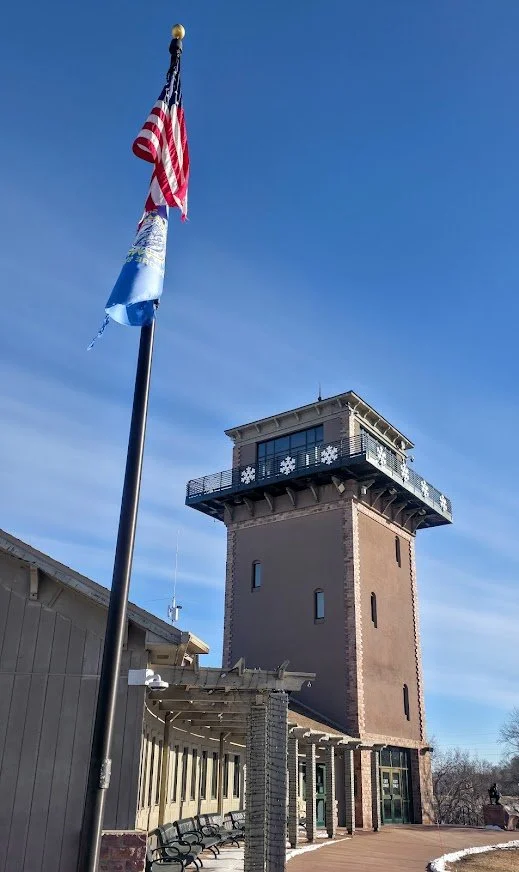 The Falls Park Visitor’s Center is located in Sioux Falls right next to the falls. They have a 5 story enclosed viewing tower with an outdoor deck. You can take the stairs or the elevator to the top and it provides a 360 degree view of the city and the falls. They also have a store with lots of memorabilia for purchase on site. When we were there the store and outdoor deck were closed, so be sure to check their hours.