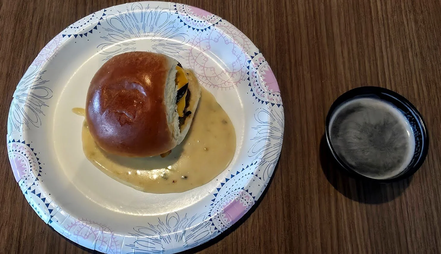 Beef sliders with horseradish beer cheese and beer.