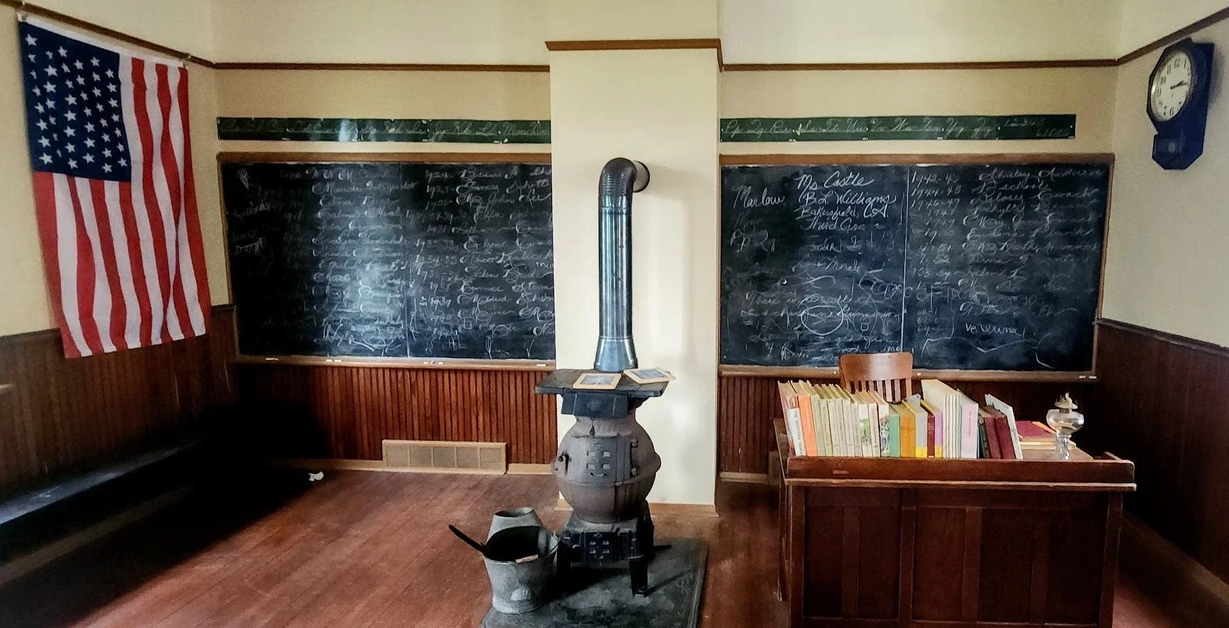 The Gunderson schoolhouse was first used in 1906 and served the area until 1969. It is located on display at the Mead Museum in Yankton, South Dakota.
