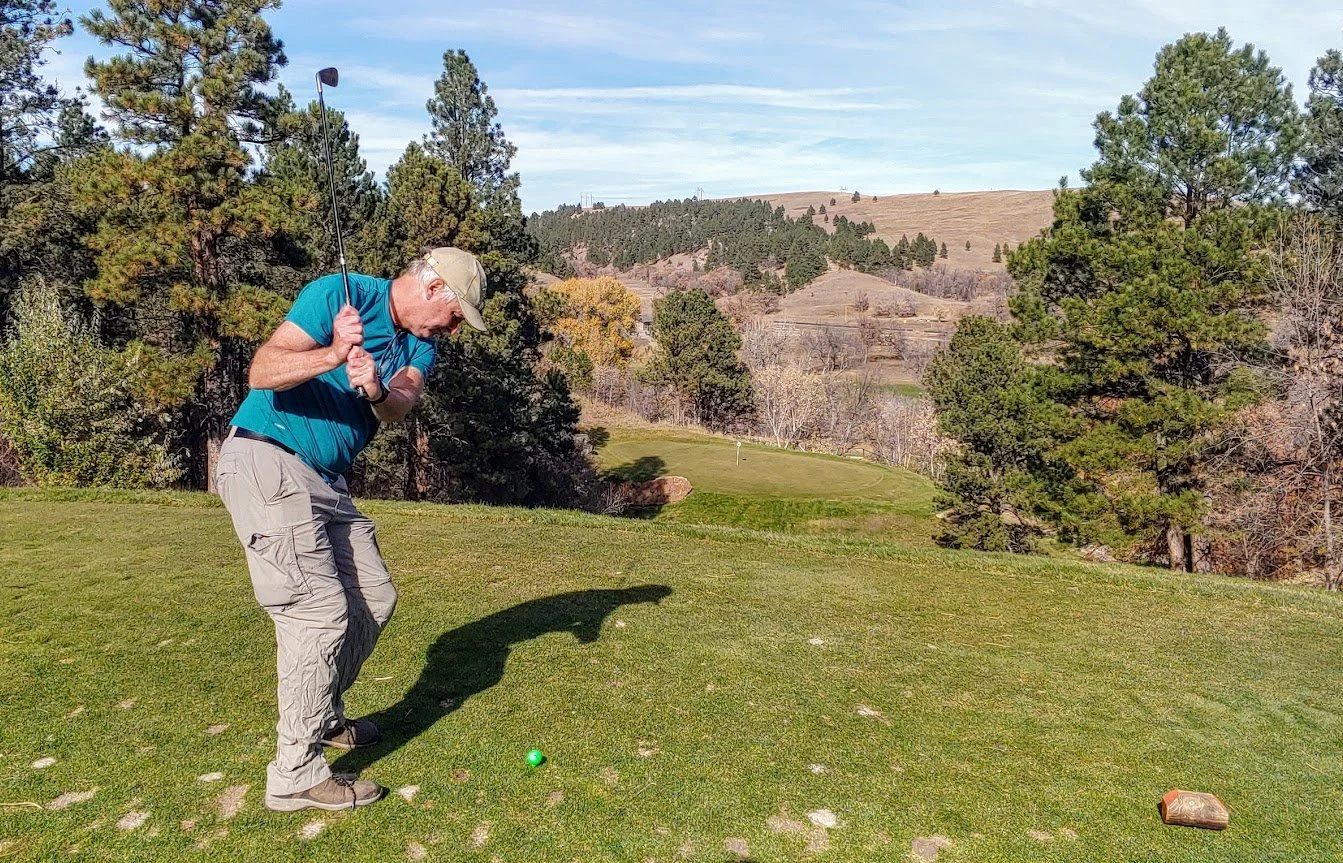 Hart Ranch is just southwest of Rapid City off Spring Creek Rd. It is near the Hart Ranch Resort and is nestled against the foothills of the Black Hills. Hart Ranch has 18 holes and each one is unique. There is a beautiful river that runs through the golf course and some lakes which at times make it challenging. Be sure to check daily specials on line before you go. We got a daytime special of 18 holes with cart for 2 people for 70.00 total which is a big difference from the normal price.