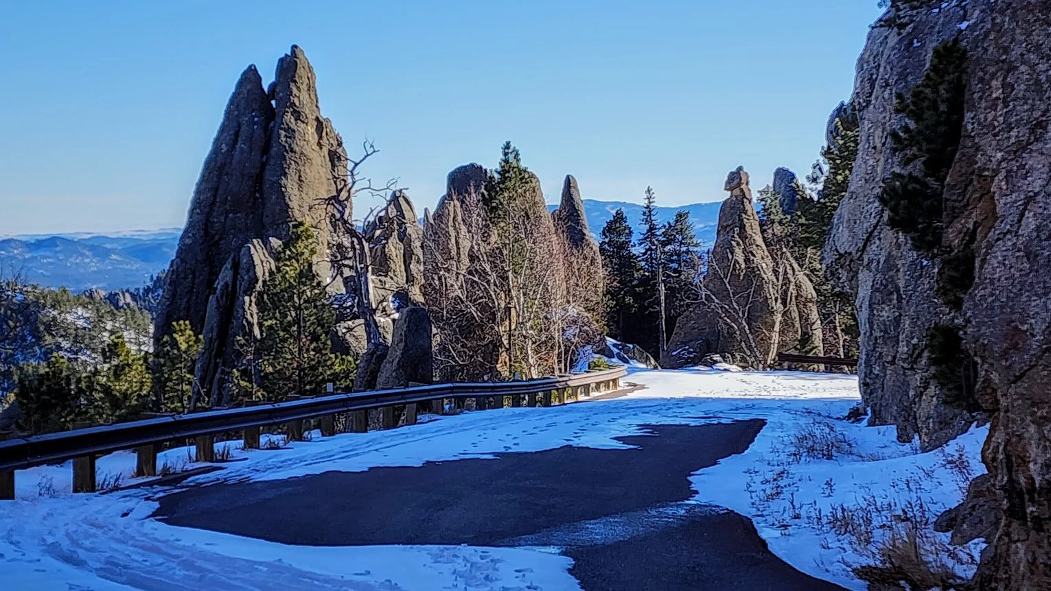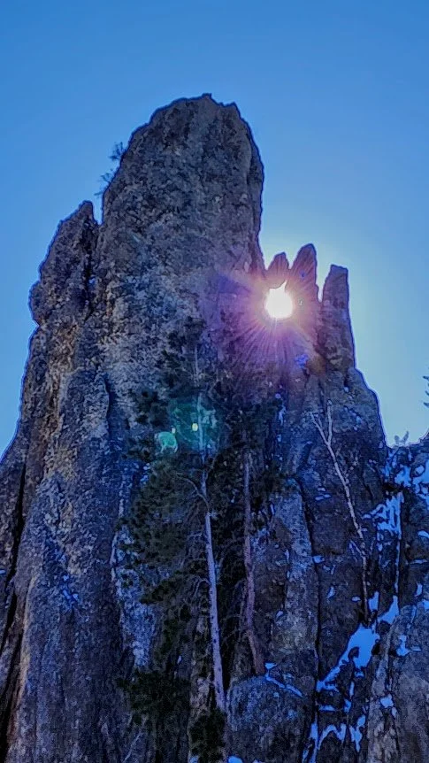 During the winter the road is closed and people walk the road or cross country ski it. It is just gorgeous and you can get up close with all the majestic spirals. This is one of our favorite trails to do in the winter. Be warned though the road is not plowed in the winter so walking it can be tricky if there has been a lot of snow. I recommend bringing poles. This is also one of the winter challenges for Custer State Park every year that we partake in. It is about 1.25 miles to the Needle’s Eye from Sylvan Lake. We usually walk to the Cathedral Spires and back making it a 4 mile hike round trip.