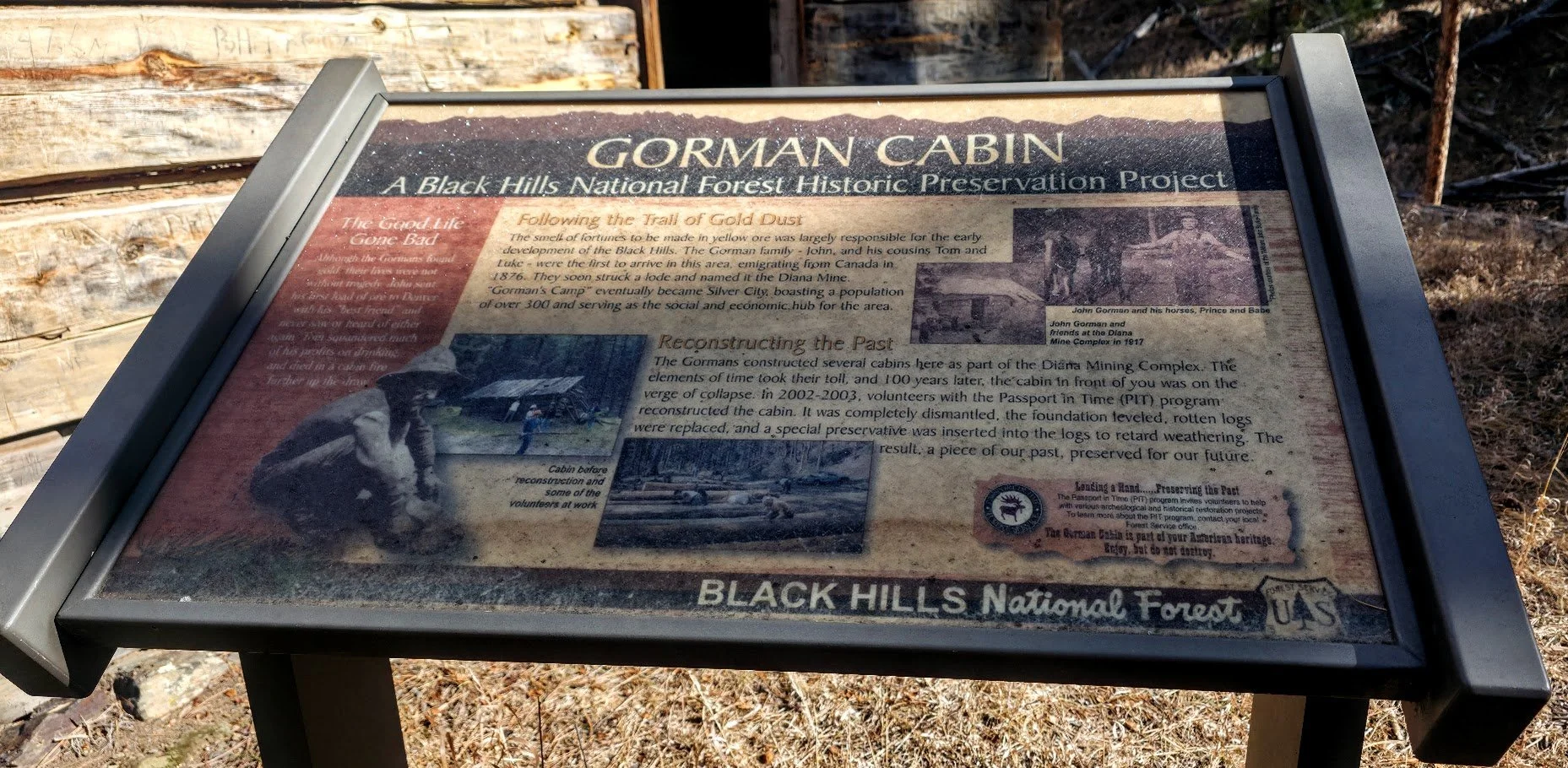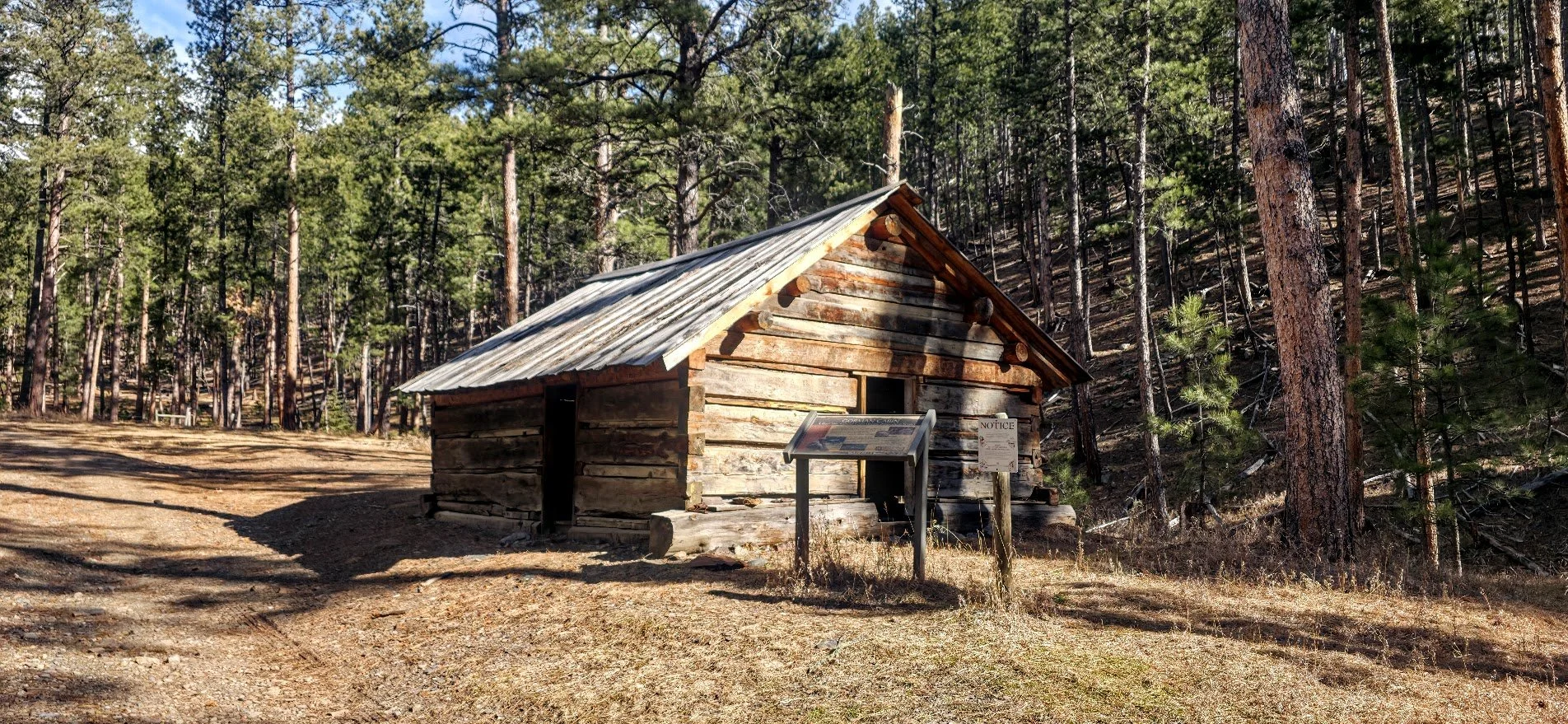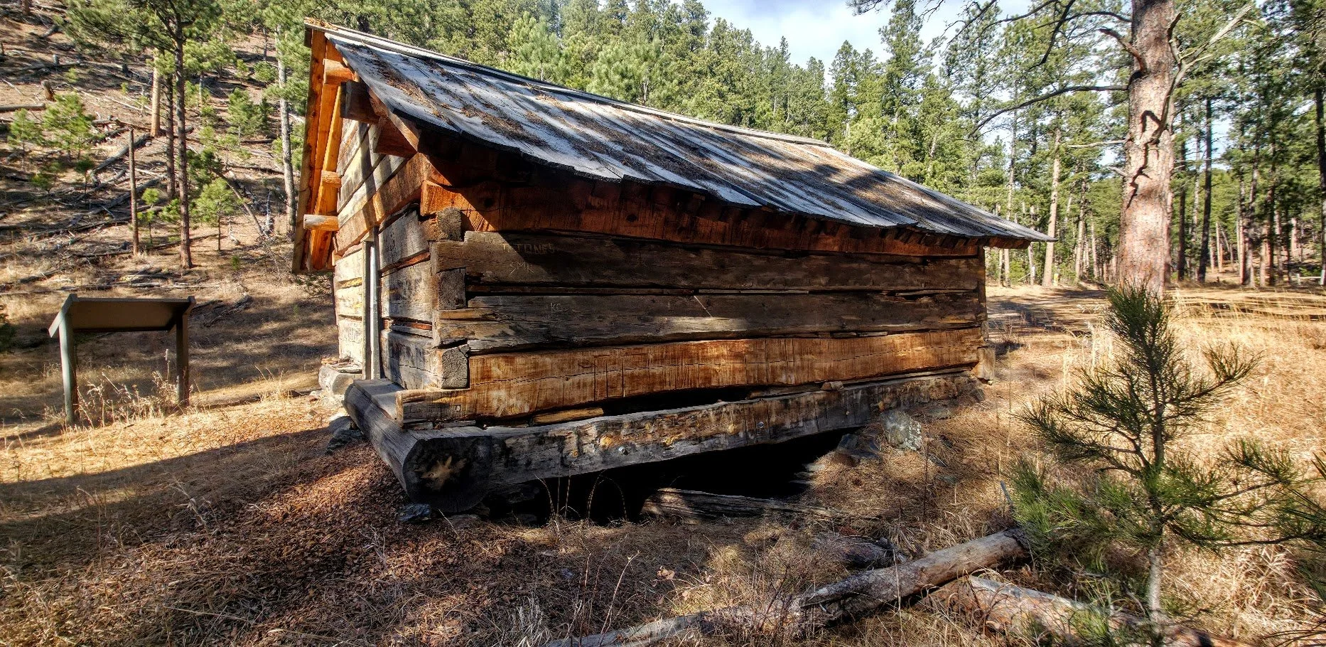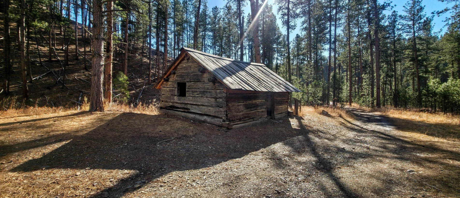 Located off Silver City Road in Silver City, South Dakota - there is a short hike to this old historic cabin on the north side of the road. If doing the Trial #40 Silver City Trail make sure to check this out first.