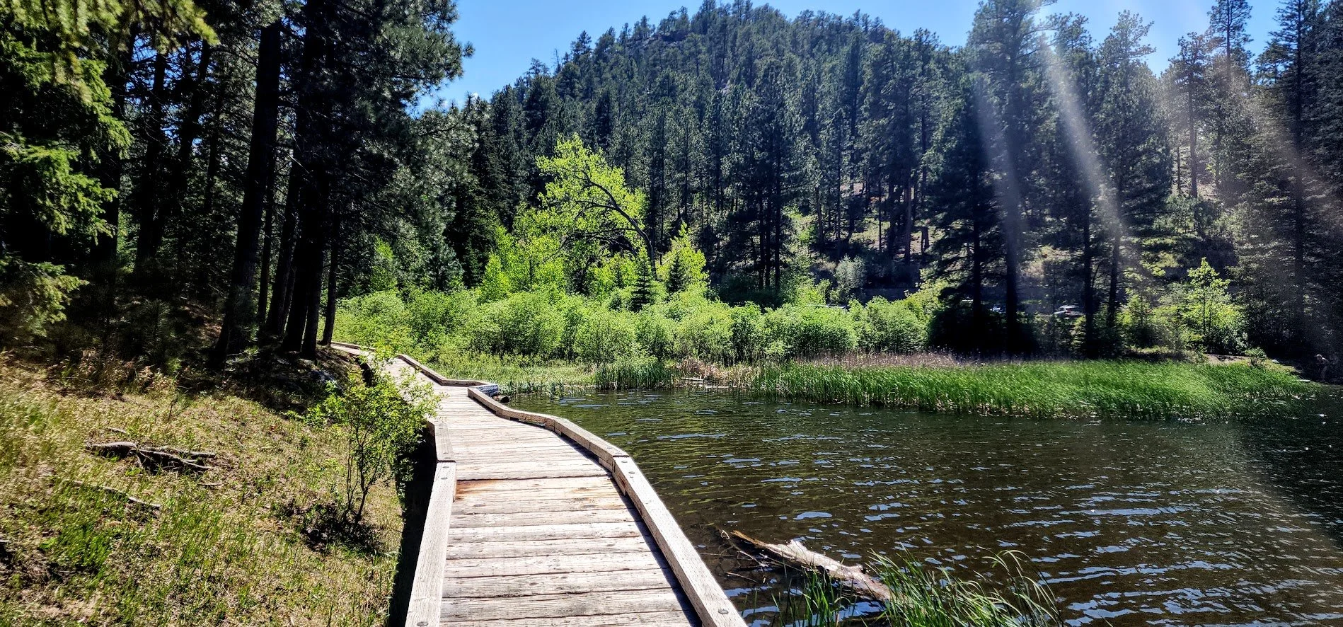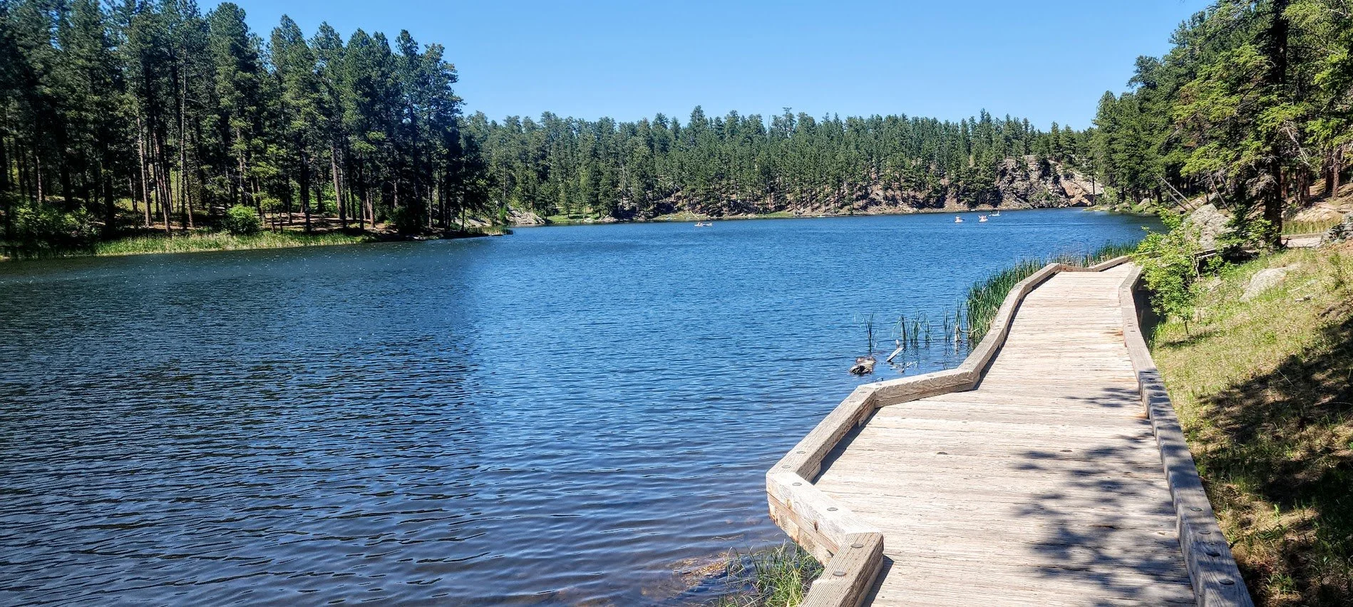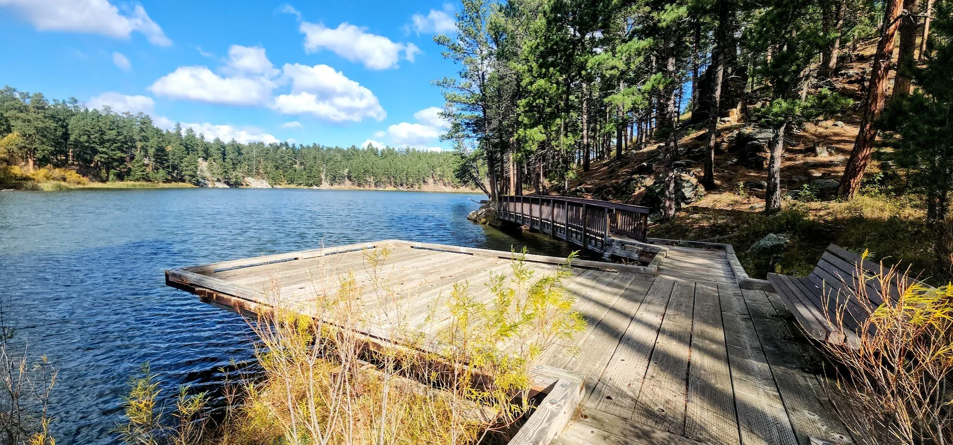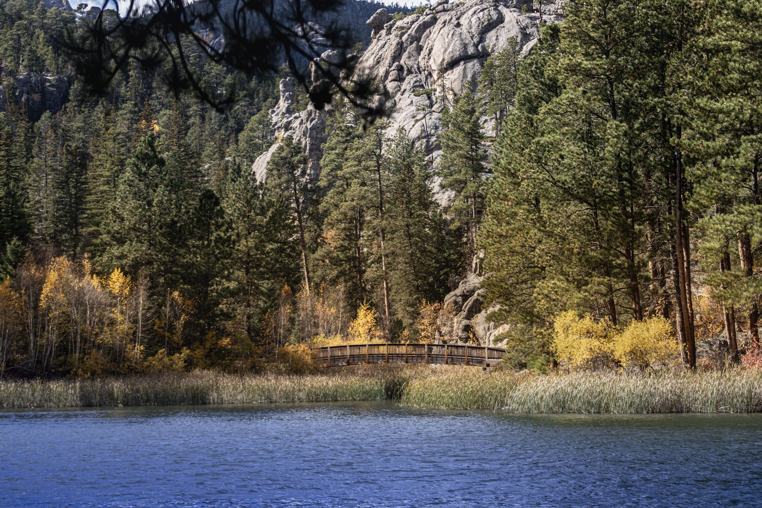 Horsethief lake is 2 miles west of Mount Rushmore on Highway 244 near the towns of Keystone and Hill City. The lake is a popular place to fish, camp, and hike and can be crowded at times. There is a beautiful hike that goes around most of the lake and another hike that leads from the lake to Mount Rushmore. There are a couple of pull out areas to park, and I highly recommend getting out of your vehicle, and enjoying a short stroll near the lake.