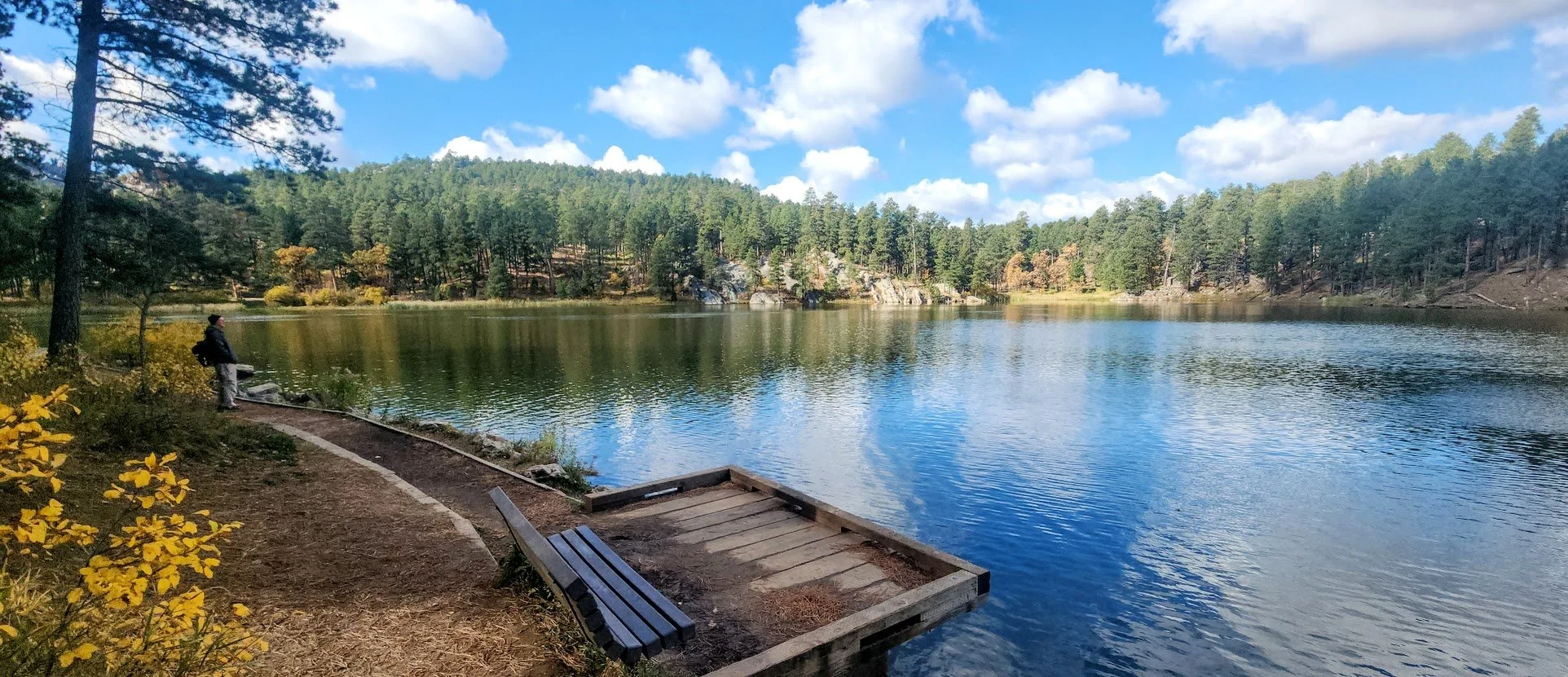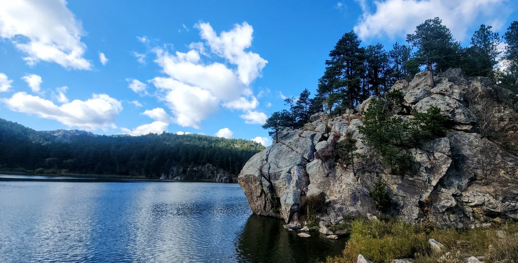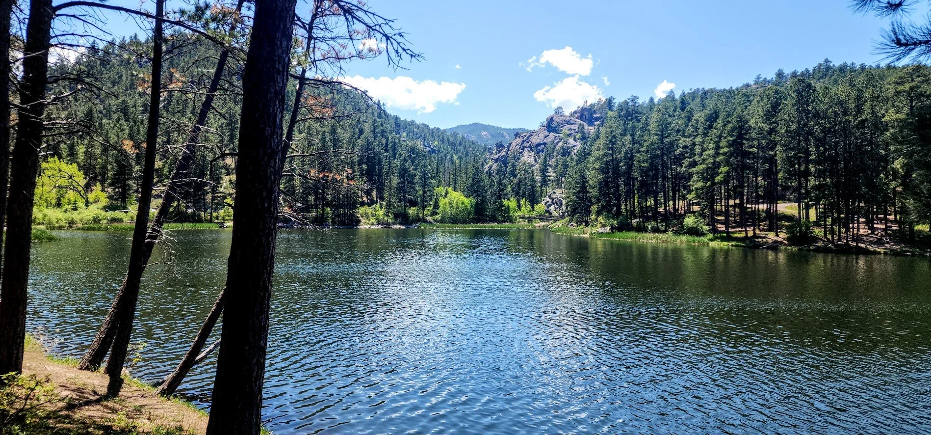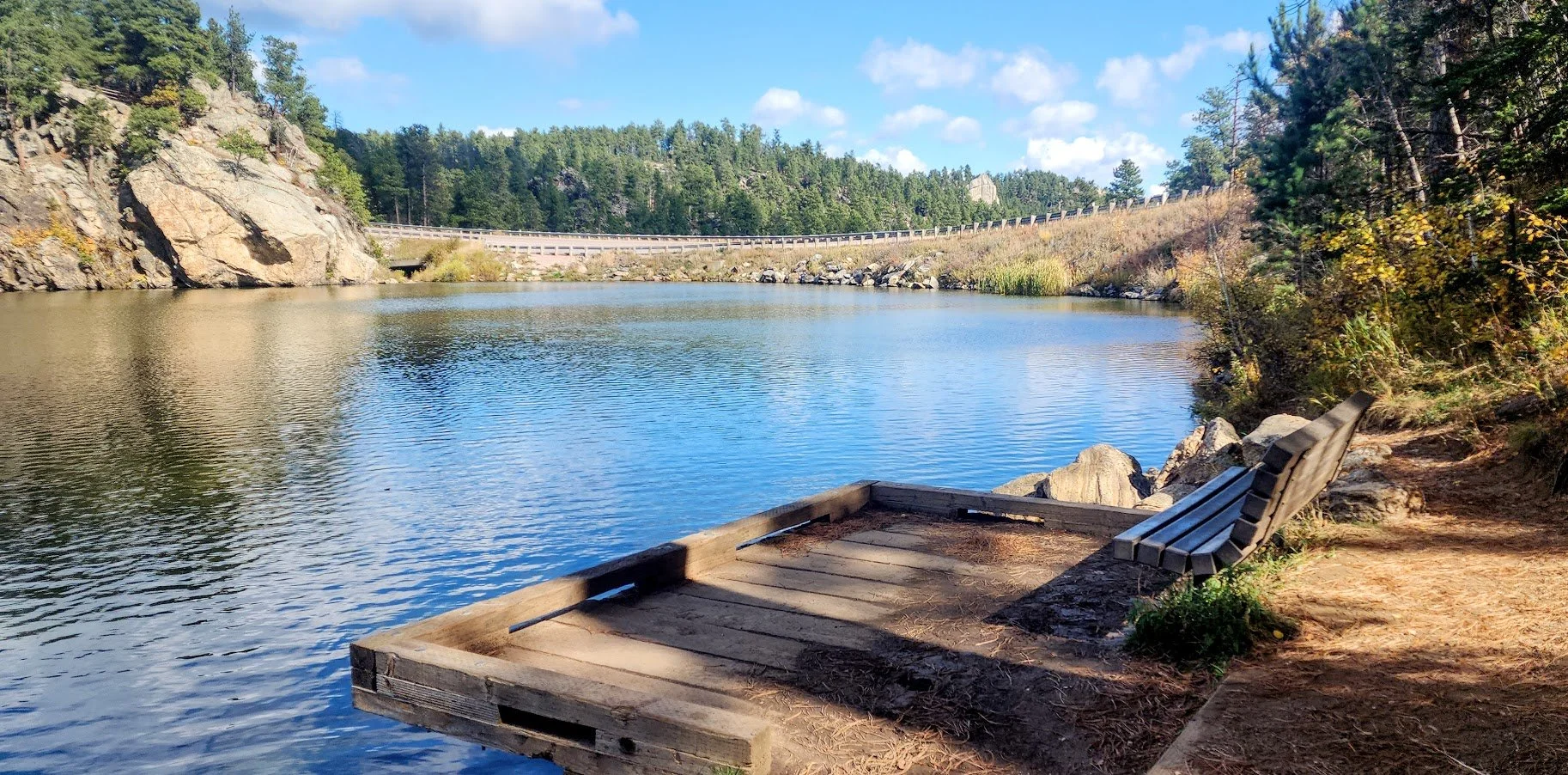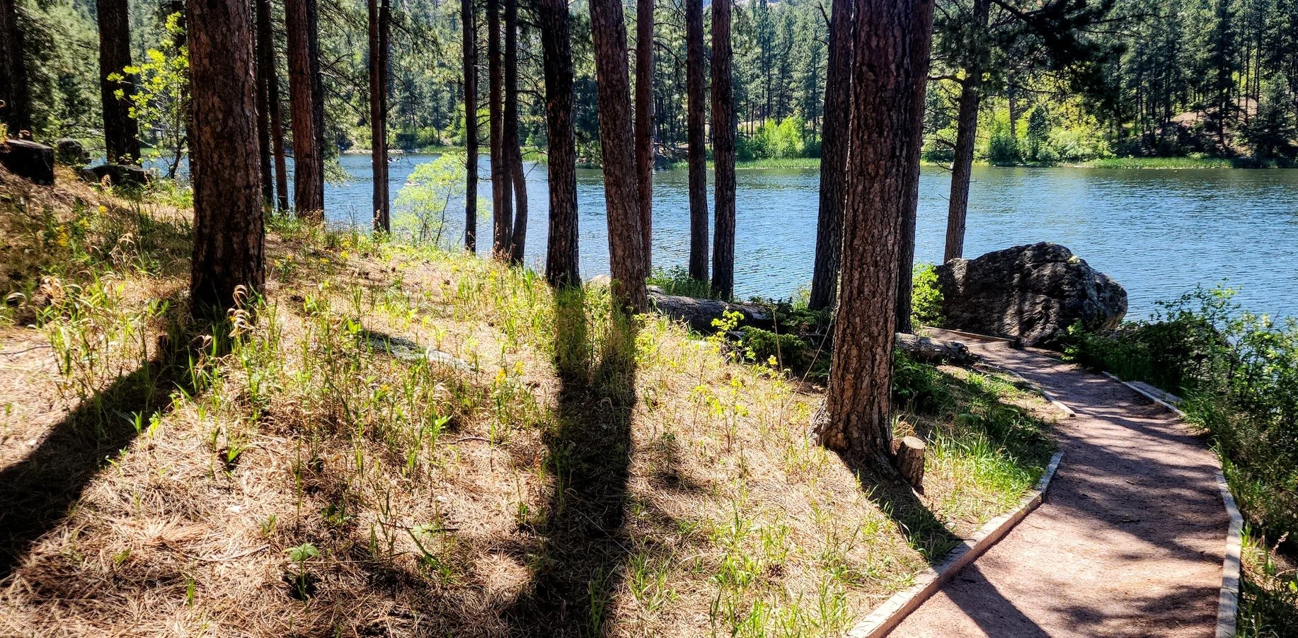 Horsethief lake is 2 miles west of Mount Rushmore on Highway 244 near the towns of Keystone and Hill City. The lake is a popular place to fish, camp, and hike and can be crowded at times. There is a beautiful hike that goes around most of the lake and another hike that leads from the lake to Mount Rushmore. There are a couple of pull out areas to park, and I highly recommend getting out of your vehicle, and enjoying a short stroll near the lake.