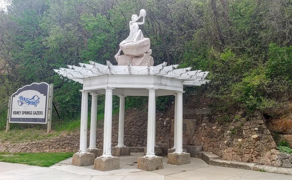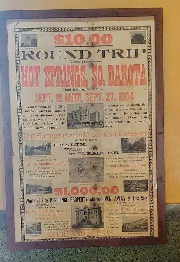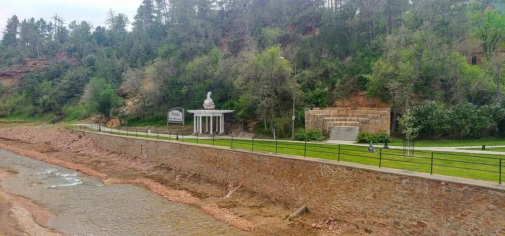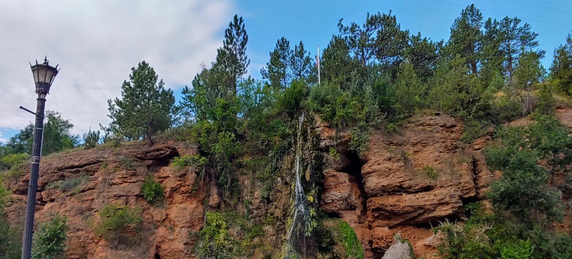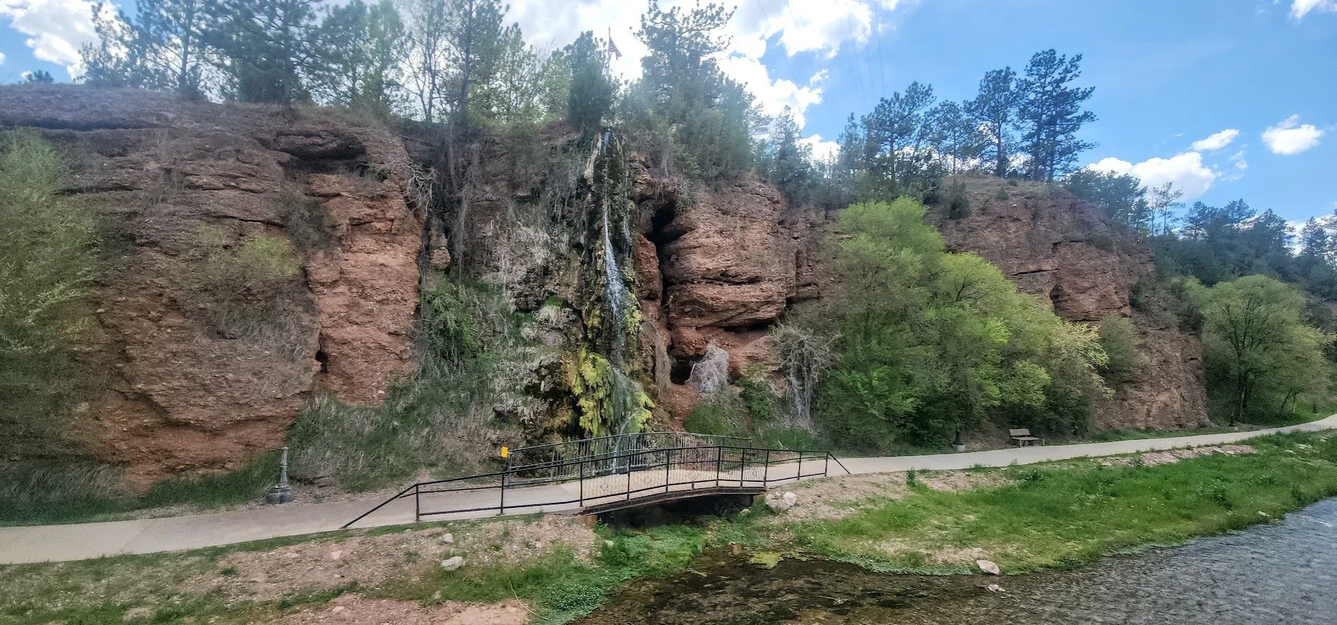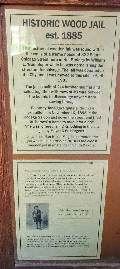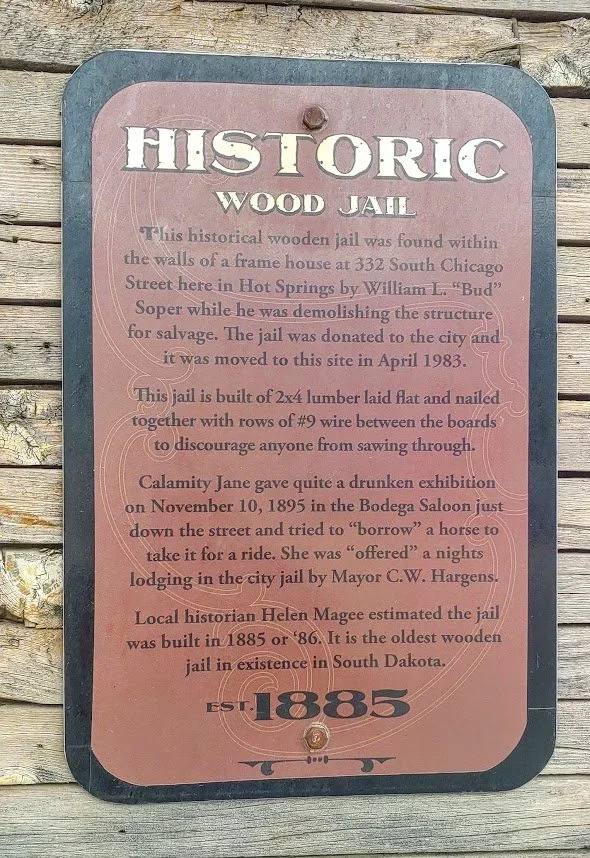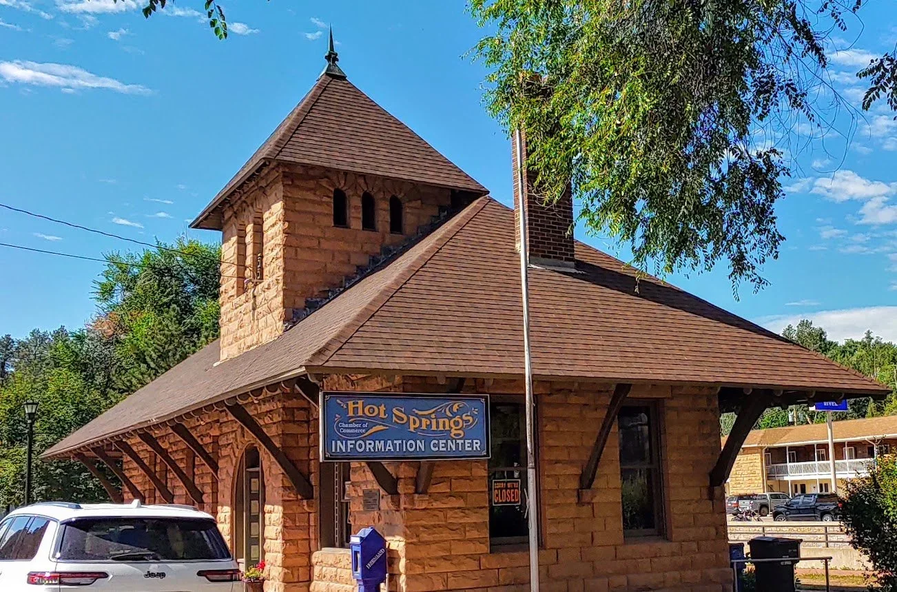 The Hot Spring’s Information Center is located in downtown Hot Springs, South Dakota. It is located in the historic Union Depot train station that was built in 1891. There is a small historic jailhouse on site that that was built in 1888, along with a caboose. The information center is next to the Fall River and a paved walkway called the Freedom Trail. The trail follows the river for 1.3 miles and takes you to several parks along the way, a gazebo, and a small waterfall. The information center is open seasonally.