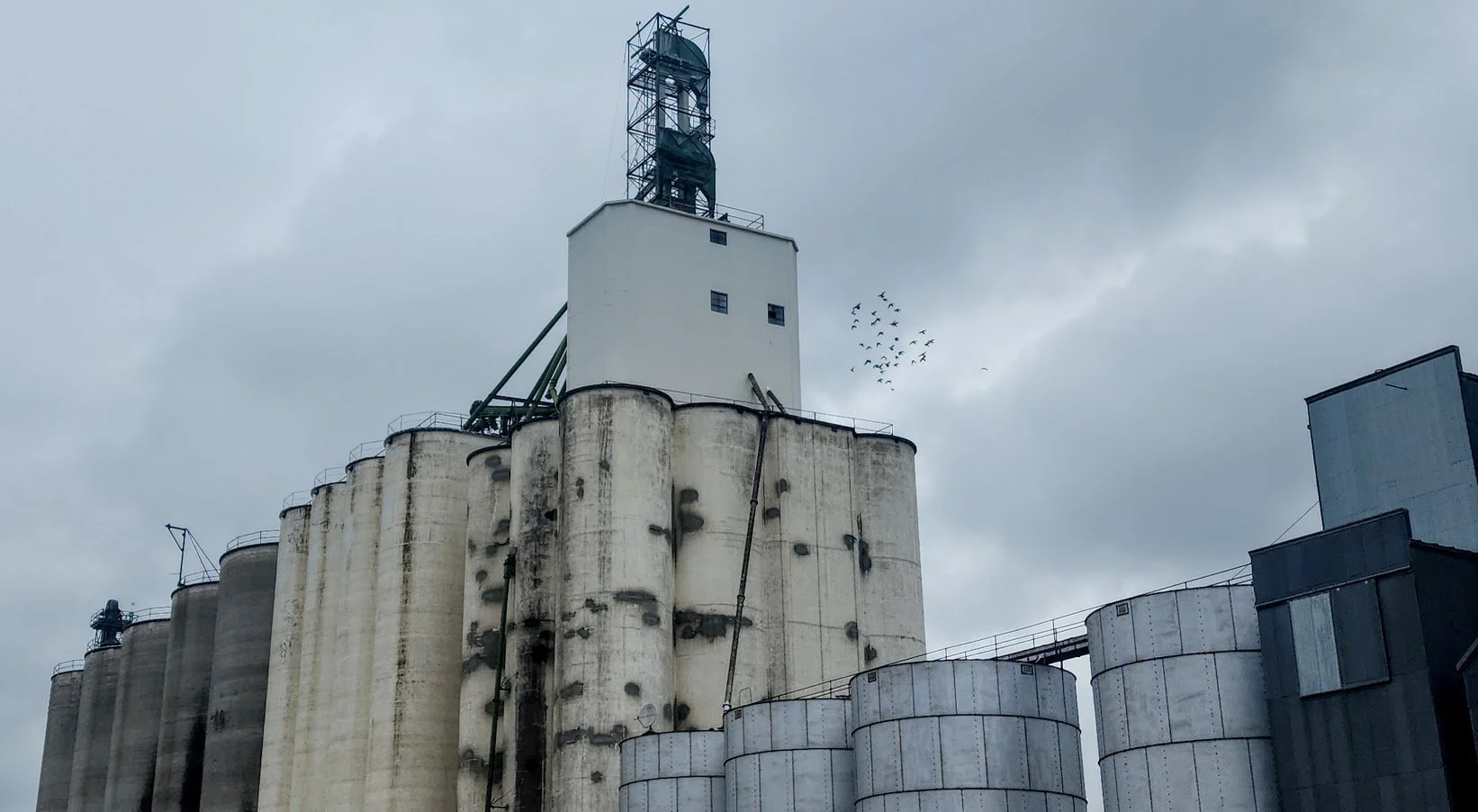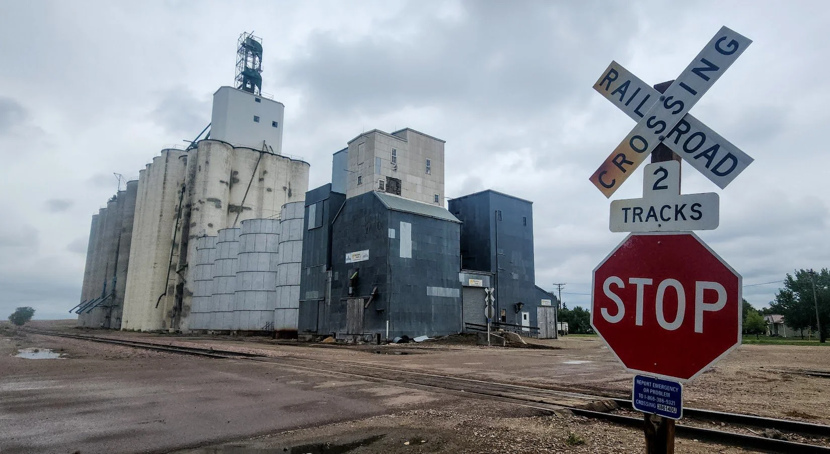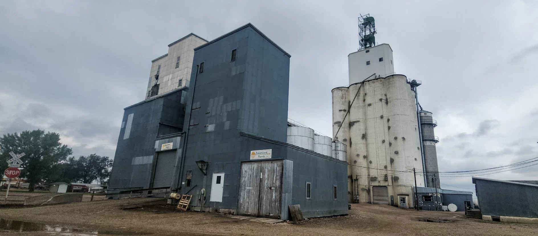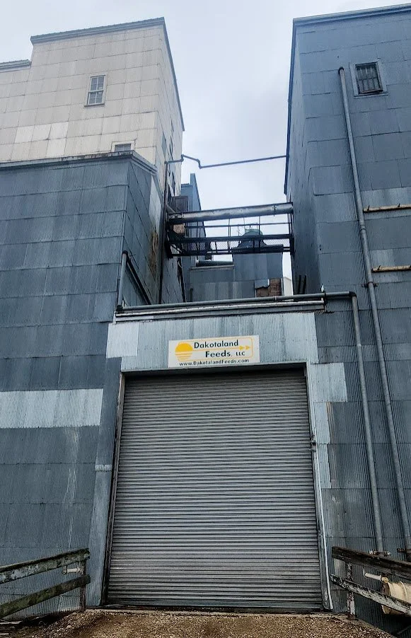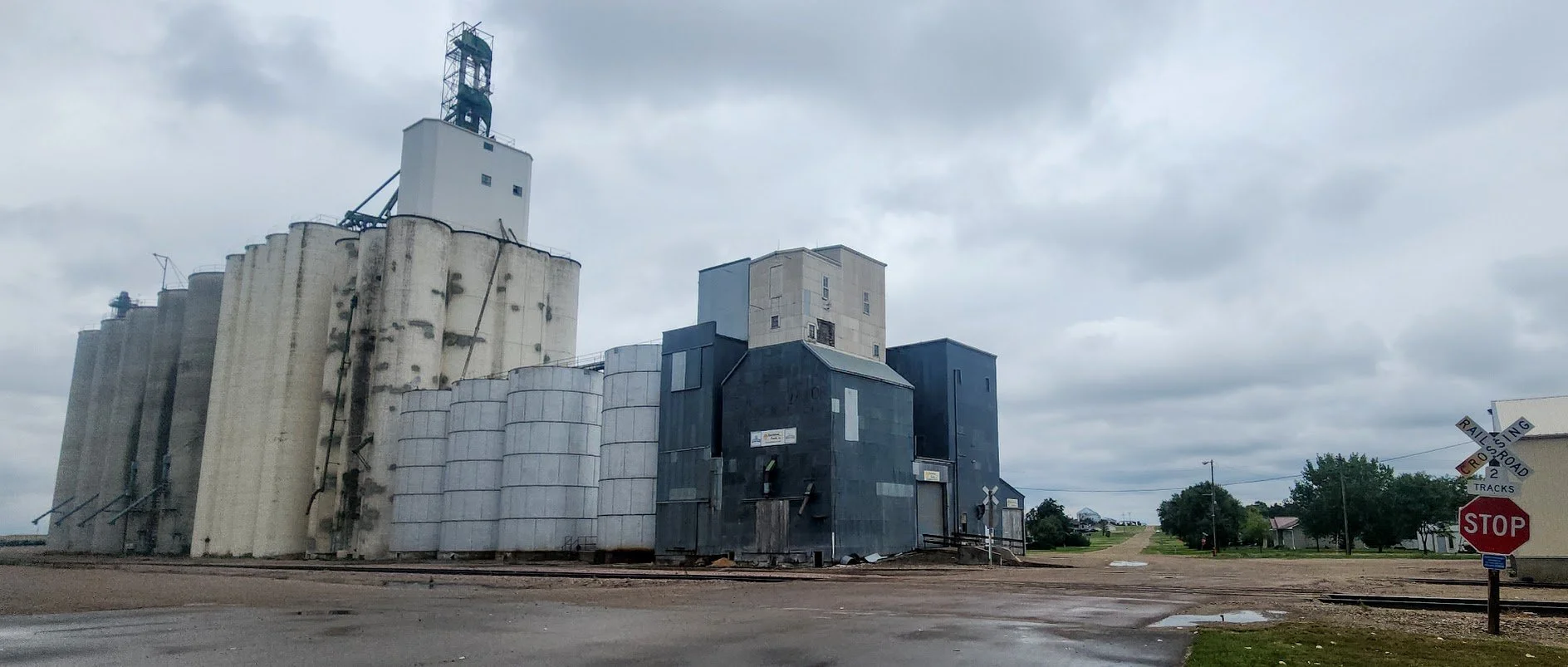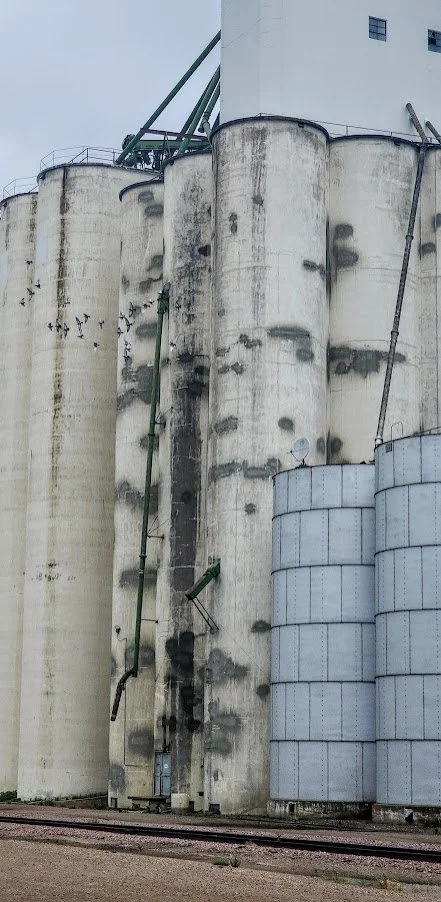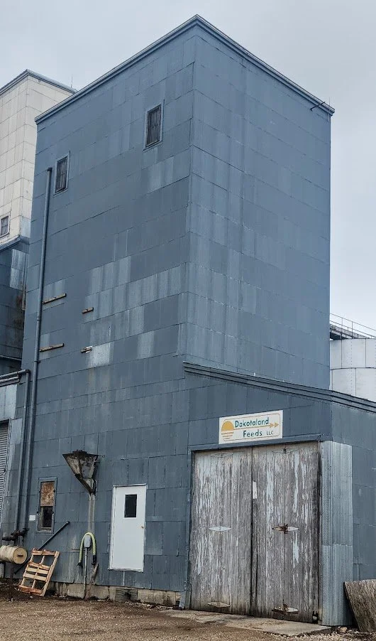 This grain elevator is located in the town of Kennebec. It looks like it is right next to both a corn and soybean silo.