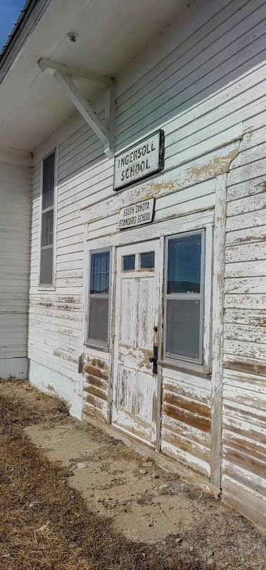 Located off highway 212 right across the road from Butte County Equipment about 9 miles east of Belle Fourche is the Ingersoll School. It was built in 1890 and used as a school until 1973. With the widening of Highway 212, the school is in danger of being torn down and was put on the endangered list by the Butte County Historical Society. They are looking for a way to move the school to a better location in the future. The schoolhouse is pretty run down as for now.