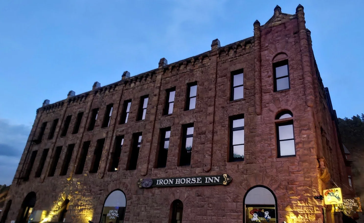 The family owned and operated Historic Iron Horse Inn is located in downtown Deadwood, South Dakota. The 130 year old building blends some Western Charm with Victorian-era character. There is a large lobby in the hotel to relax in, the parking is free, and you can enjoy stone baked pizza at the local Three Cousins Pizza located by the front desk. In the basement is Stan And Ollie’s Pub where you can unwind with drinks and live music. The staff at the hotel is very friendly and helpful.