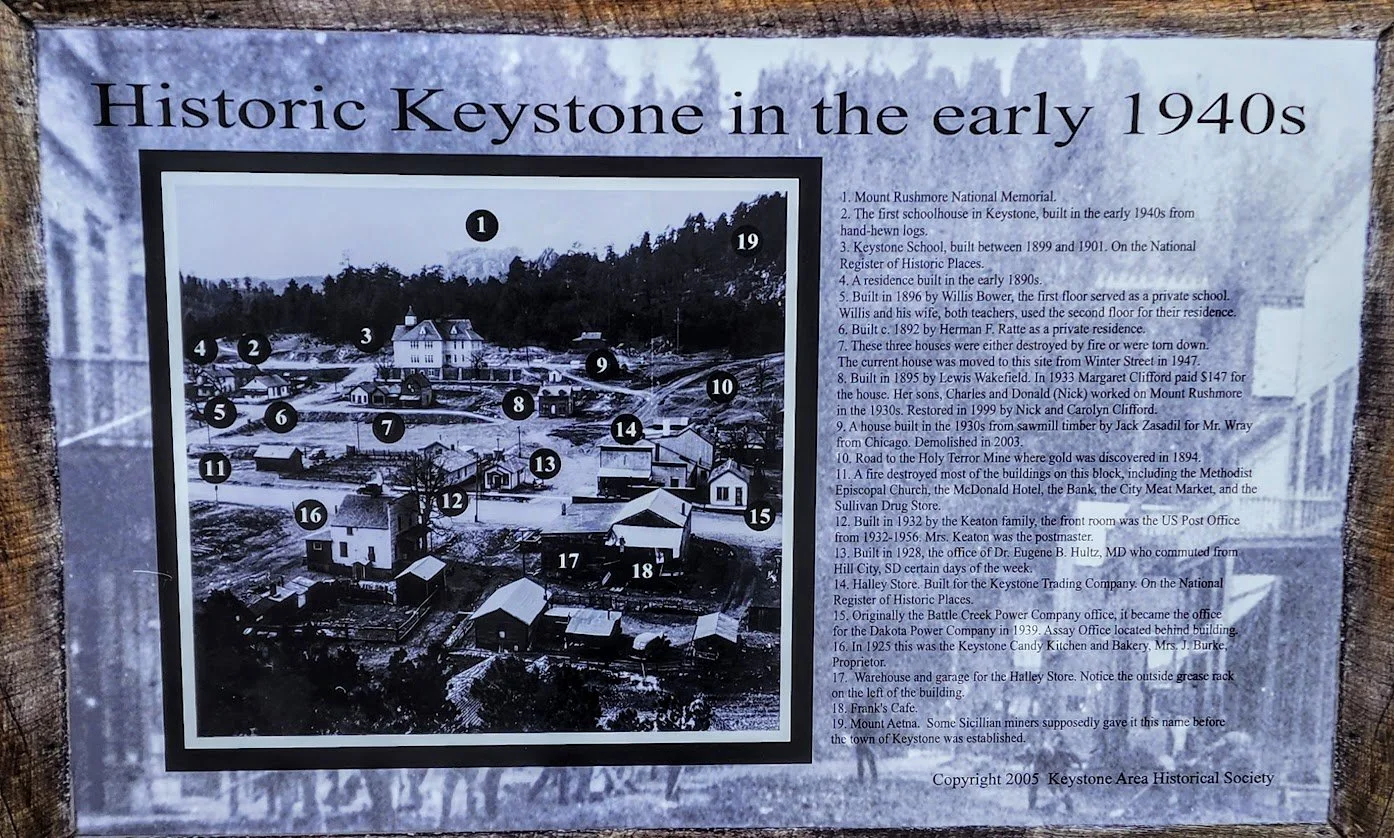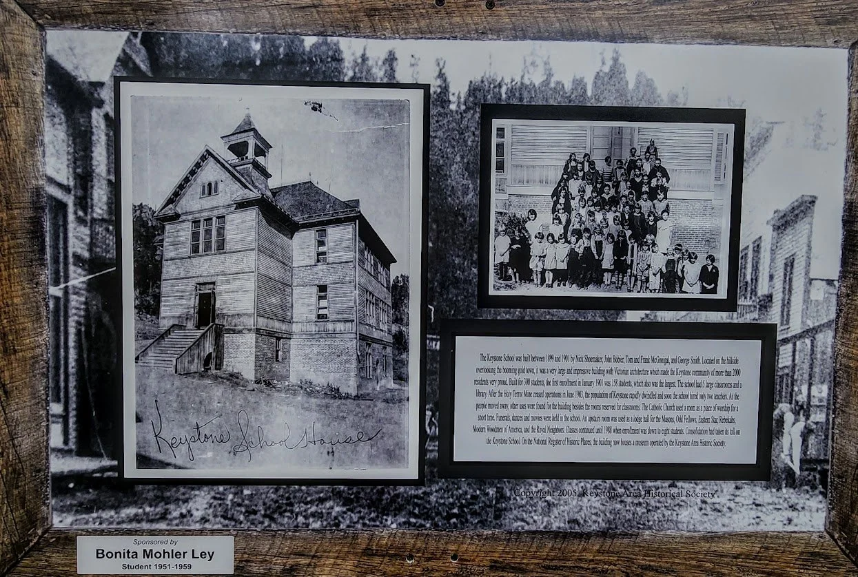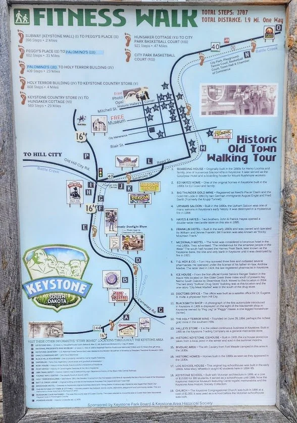 Keystone’s free walking tour is pretty cool especially if you like history. The tour starts in downtown Keystone near the 1880 train - look on the building to the east for this sign. You then walk 3 blocks on Highway 40 and see signs along the road explaining the history of Keystone. The tour ends at the Keystone Museum/Schoolhouse. When we did this hike we started at the museum and walked backwards. It seemed a lot easier to find the signs.