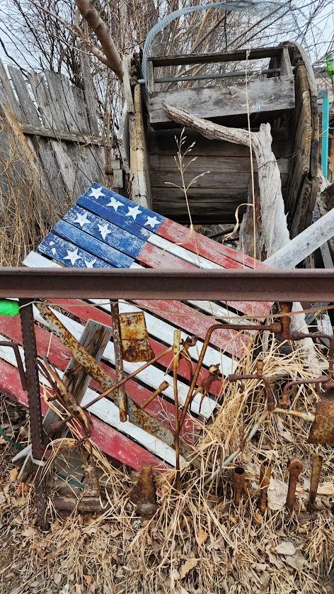 Old fence made of tools.