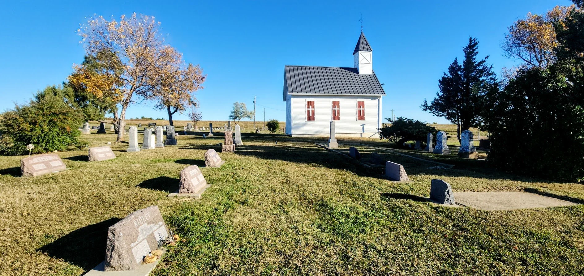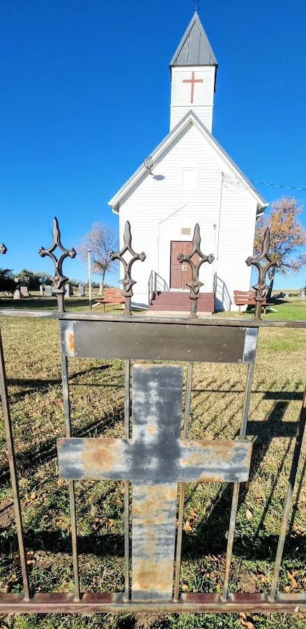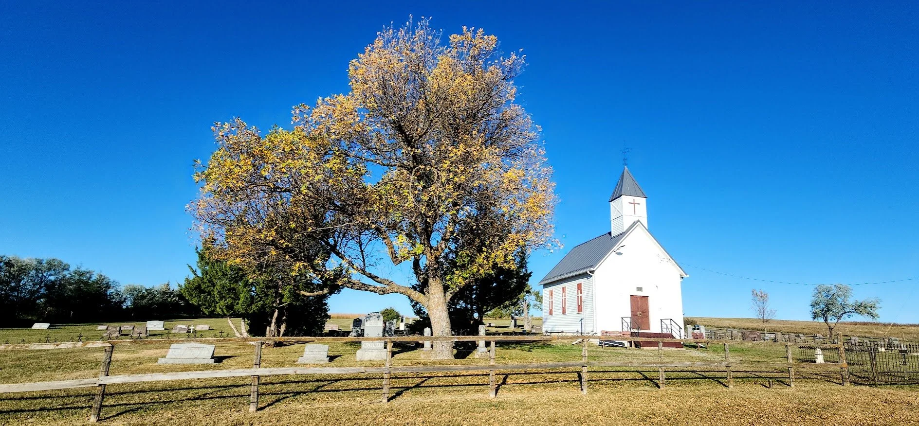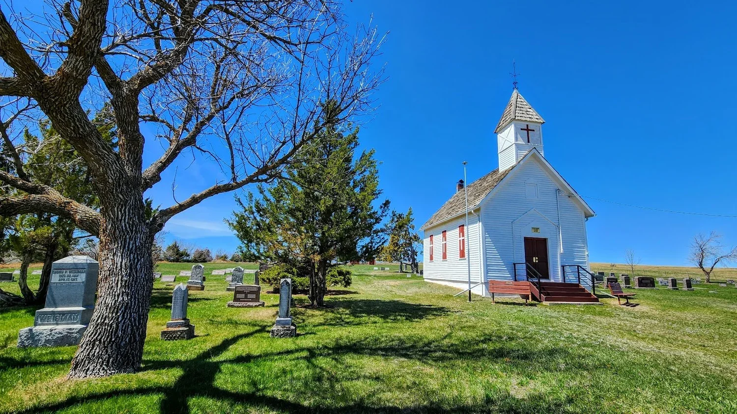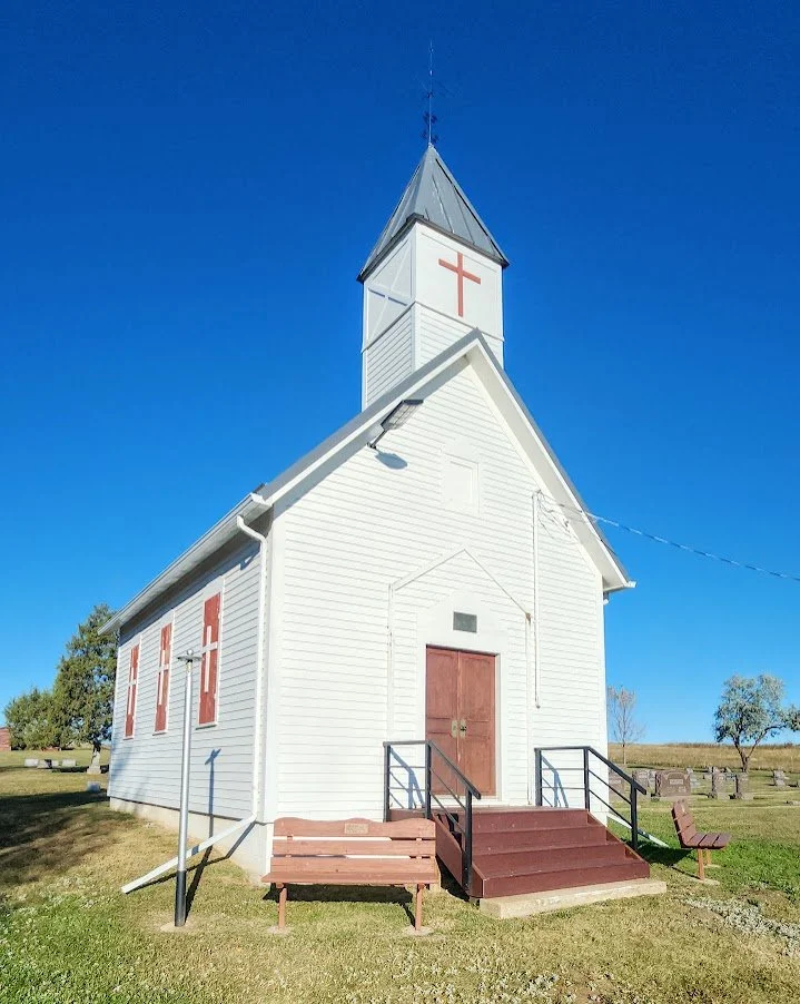 Little Dane Cemetery was constructed in 1897 and 2 years later the church was built. There are around 190 people buried at the cemetery and the only people that can be buried there are descendants of the original plot holders and parishioners of the church. The last service at the church was in 1929 until in 1969 on the 80th anniversary of the church, a newly restored church was dedicated. The church and cemetery are located in Lawrence County off Dane Church Road just north of Highway 34. It is a beautiful church and location, and Bear Butte can be seen in the background.