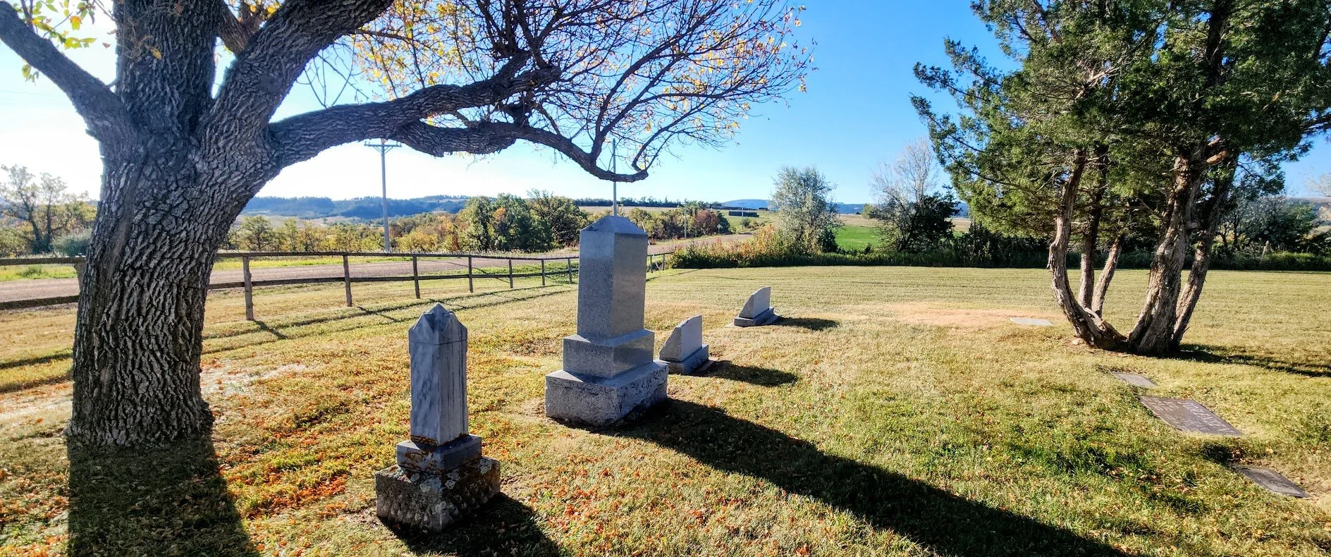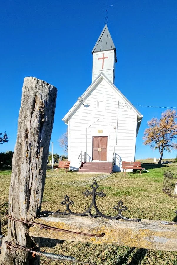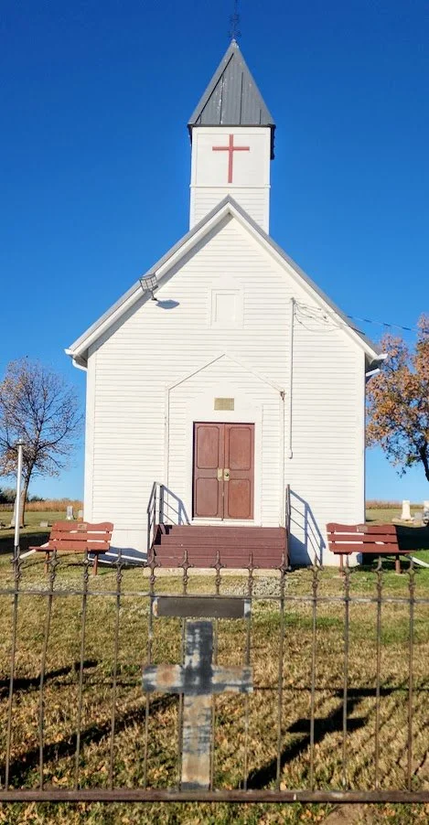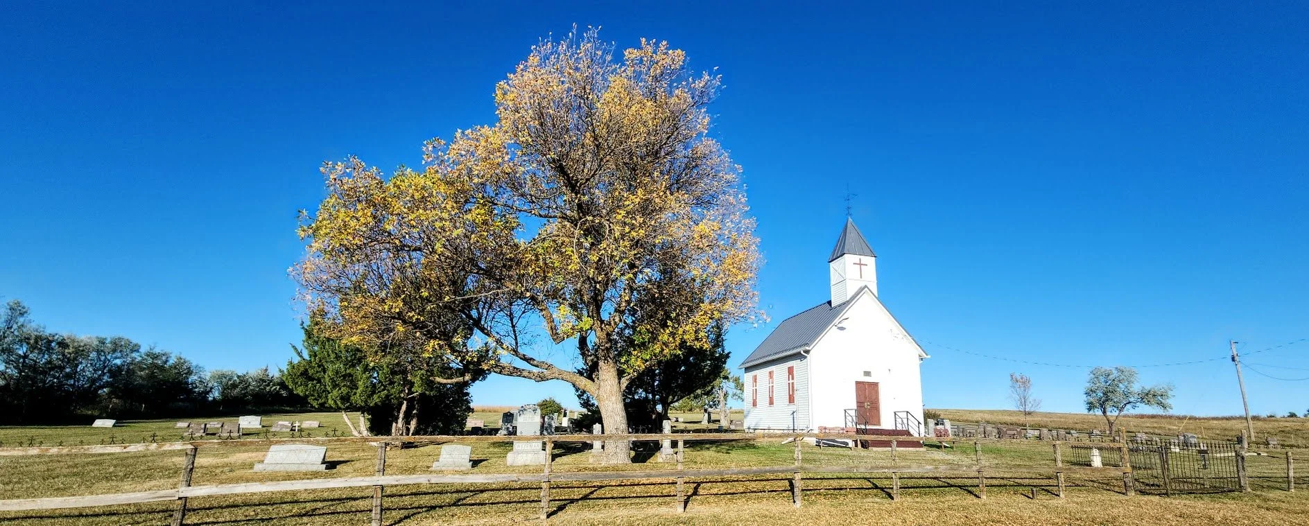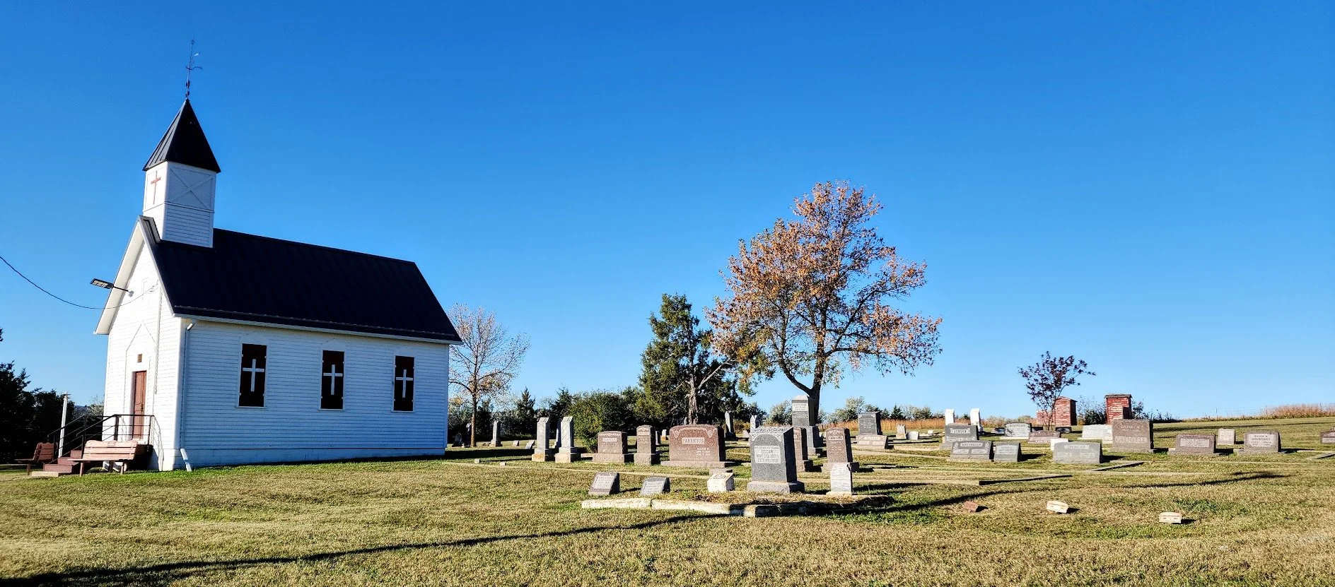 Little Dane Cemetery was constructed in 1897 and 2 years later the church was built. There are around 190 people buried at the cemetery and the only people that can be buried there are descendants of the original plot holders and parishioners of the church. The last service at the church was in 1929 until in 1969 on the 80th anniversary of the church, a newly restored church was dedicated. The church and cemetery are located in Lawrence County off Dane Church Road just north of Highway 34. It is a beautiful church and location, and Bear Butte can be seen in the background.