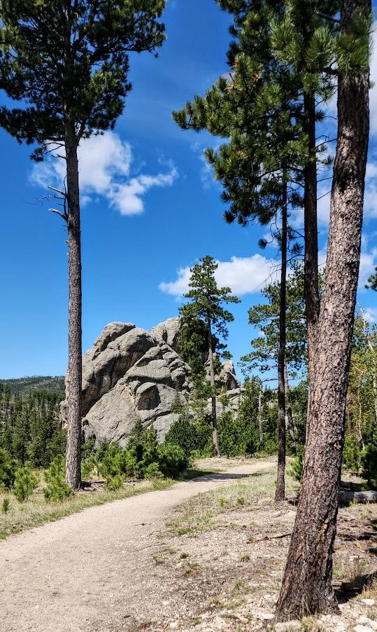 This is a short trailhead from Sylvan Lake picnic area to the beginning of Little Devil’s Trailhead or vice versa. The map on site shows it is Trail #4. This trail can be accessed from Sylvan Lake picnic area (daytime parking just northeast of Sylvan Lake) or Little Devil’s Trailhead (1 mile east of Sylvan Lake ) and is for 2 types of people - those who are either interested in walking to Little Devil’s Tower or Black Elk Fire Tower from Sylvan Lake, or those who want to get out and stretch their legs and do a short hike (maybe a nice after dinner hike while staying in the Sylvan Lake area). The hike is pretty easy, has some cool rock formations, goes near an interesting cave, and has some pretty views. This hike would also be a good way to get the kids out and about. The hike is a little over one mile there and back, unless you hike further and keep going towards Little Devil’s Tower from Sylvan Lake.