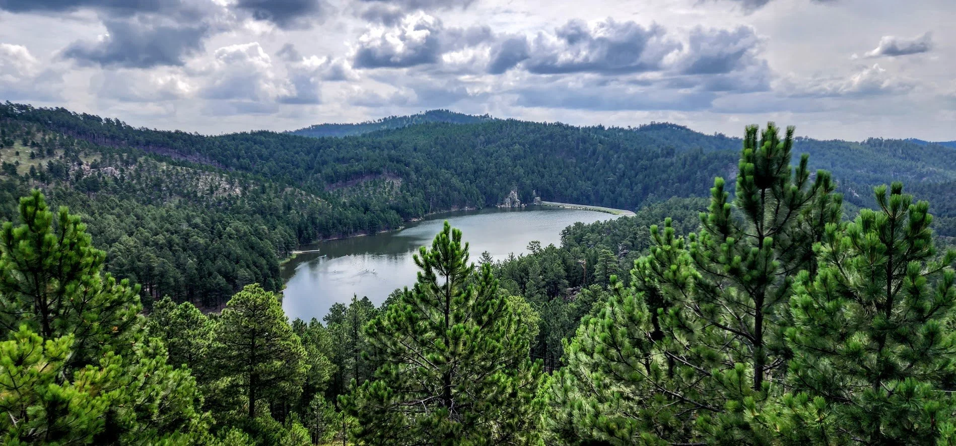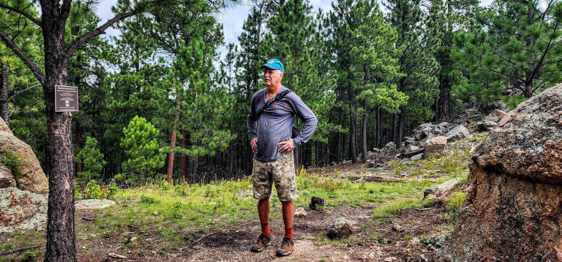 The Lost Trails is a moderate trail that is around 2 miles and circles Center Lake in Custer State Park. The trail also has a separate section where there is a short loop trail that gives you an option to go to a lookout point as well. This adds about another mile to the trail. Both trails start at the Center Lake swimming area on the south side of the parking lot. The trail actually starts by following a gravel road at the west end of the parking lot for a 1/2 mile or so, but we decided to follow the lake shore line instead until we met up with the trail near the spillway on the southeast end.