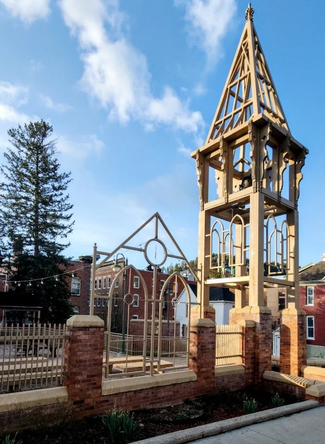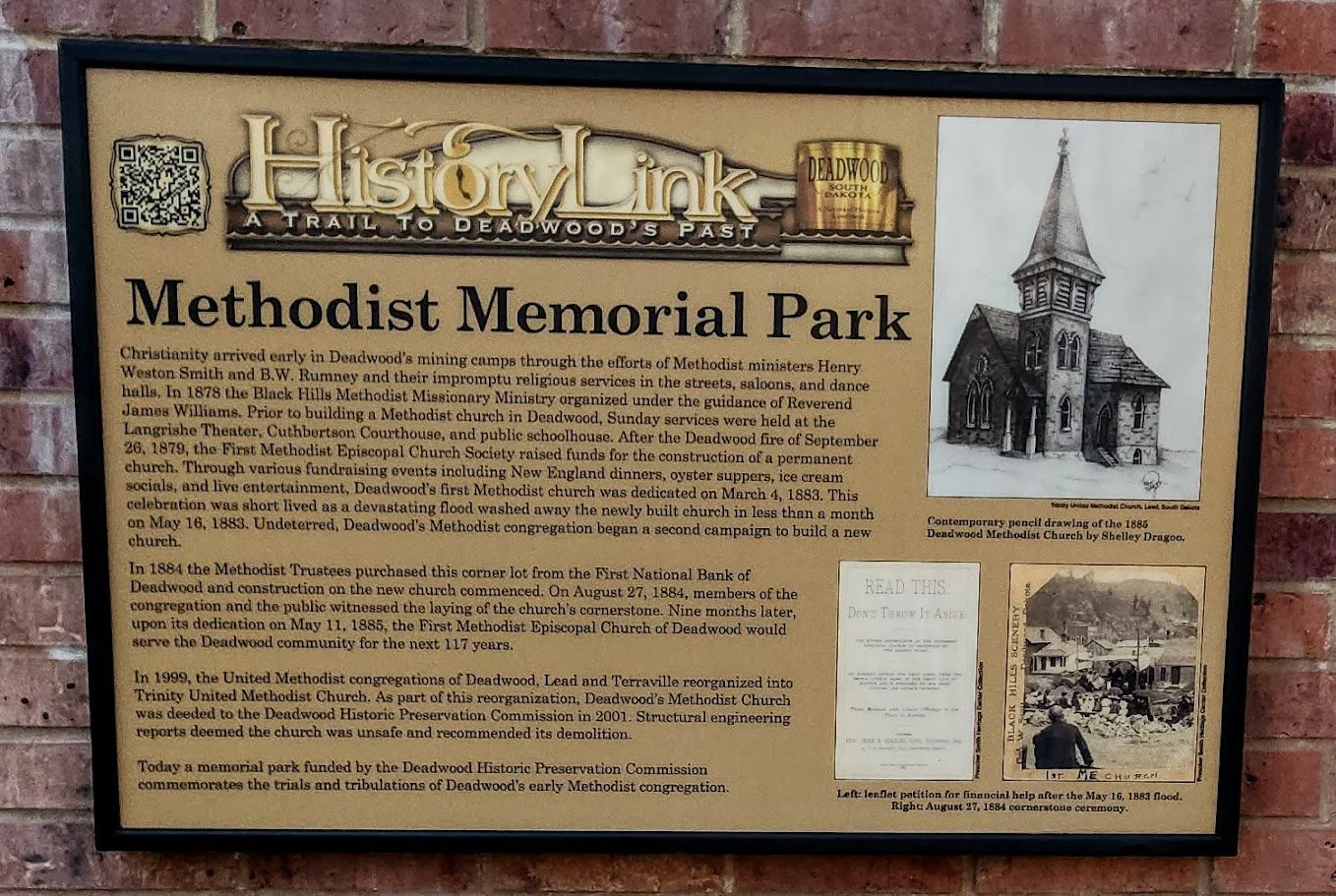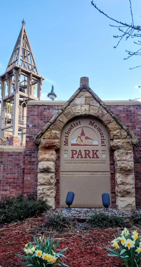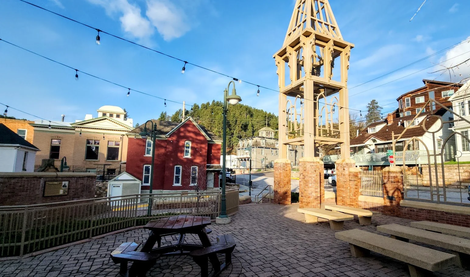 Located at 421 Williams Street in downtown Deadwood, South Dakota, this small park is enchanting. It has a picnic table and benches, and is a nice place to take a break from the business of Deadwood. It is right behind the Franklin Hotel.