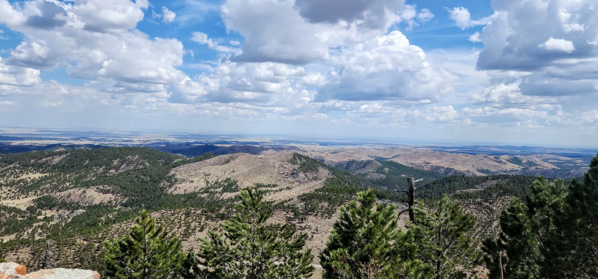 Mount Coolidge is located on SD 87 between Blue Bell Campground and Legion Lake Campground. The tower is atop a 6,023 foot peak and has some amazing 360 degree views of the Black Hills. From the top with binoculars or a good zoom lens, you can see Crazy Horse, Mount Rushmore, the Needles, Black Elk Fire Tower, Ellsworth Airforce Base, and the Badlands.