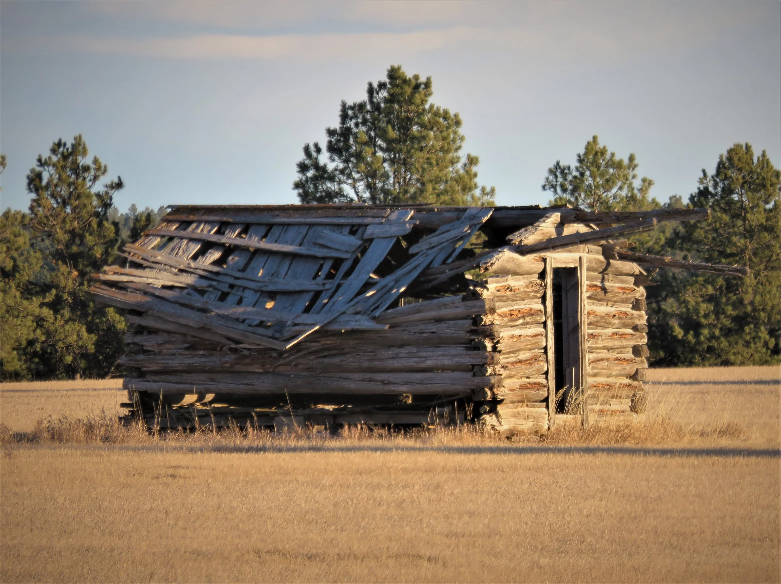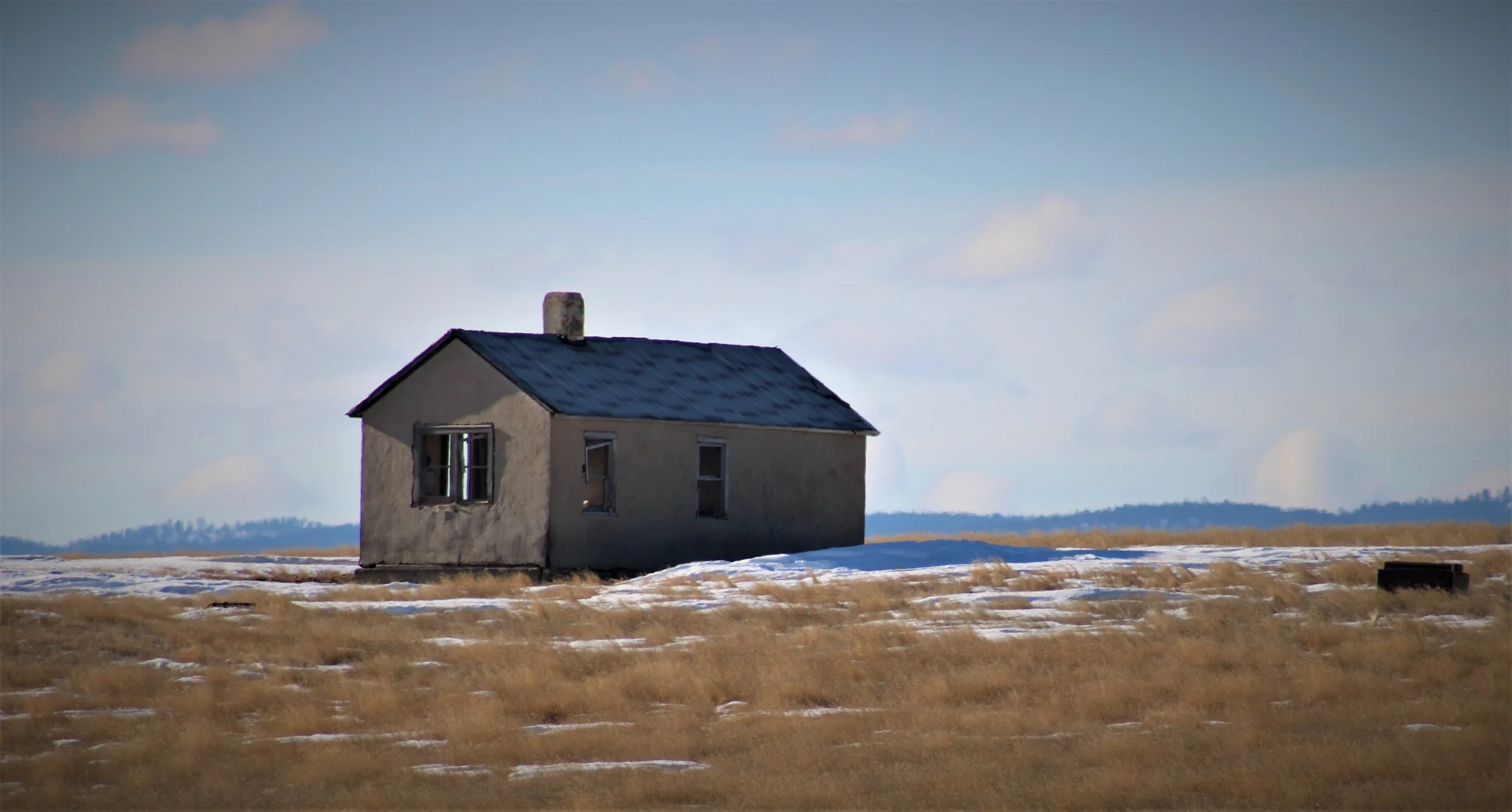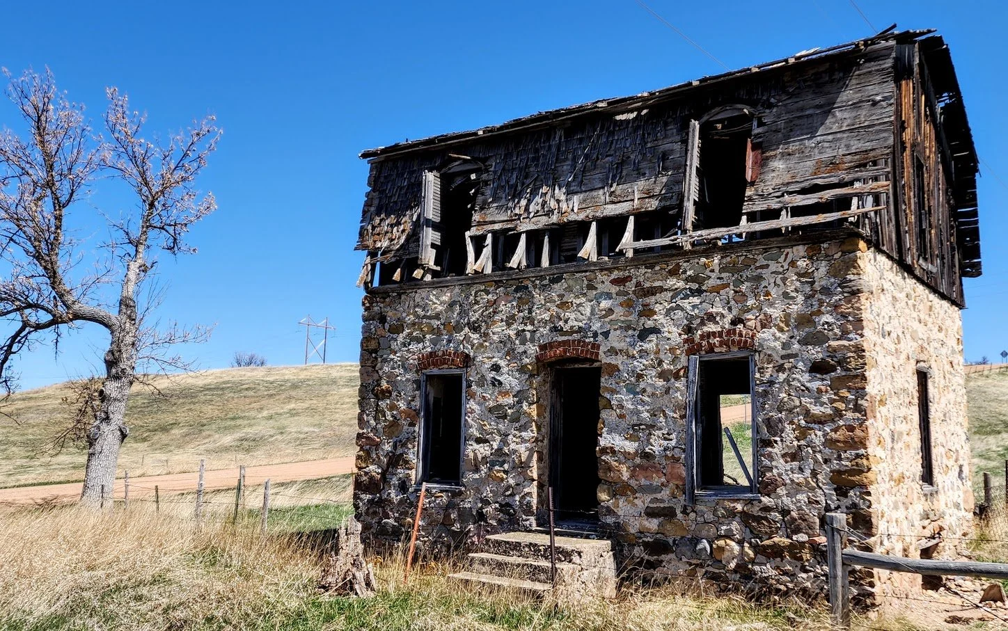 Old schoolhouse and structures in Rockerville, South Dakota.
