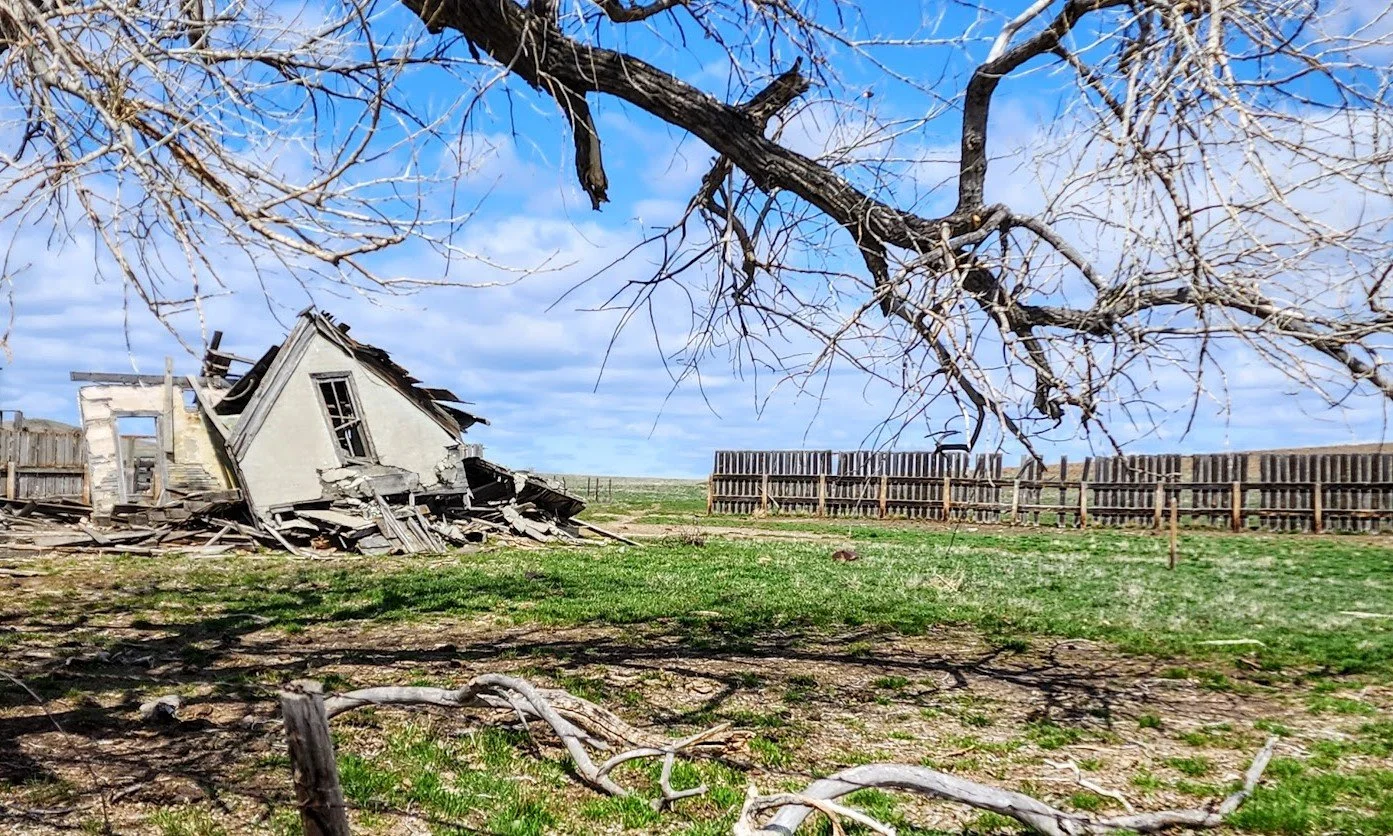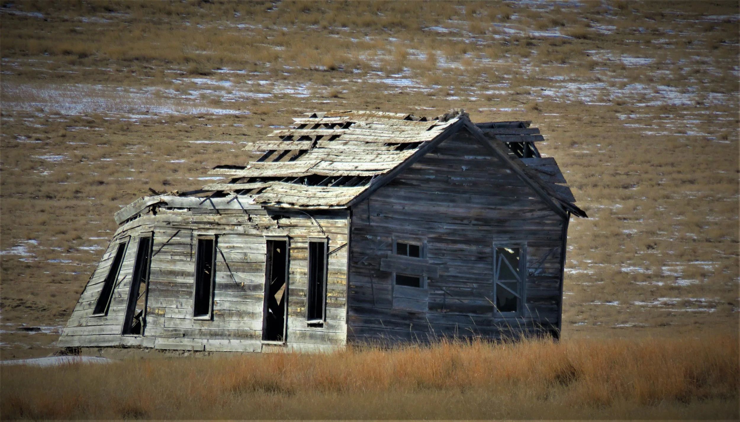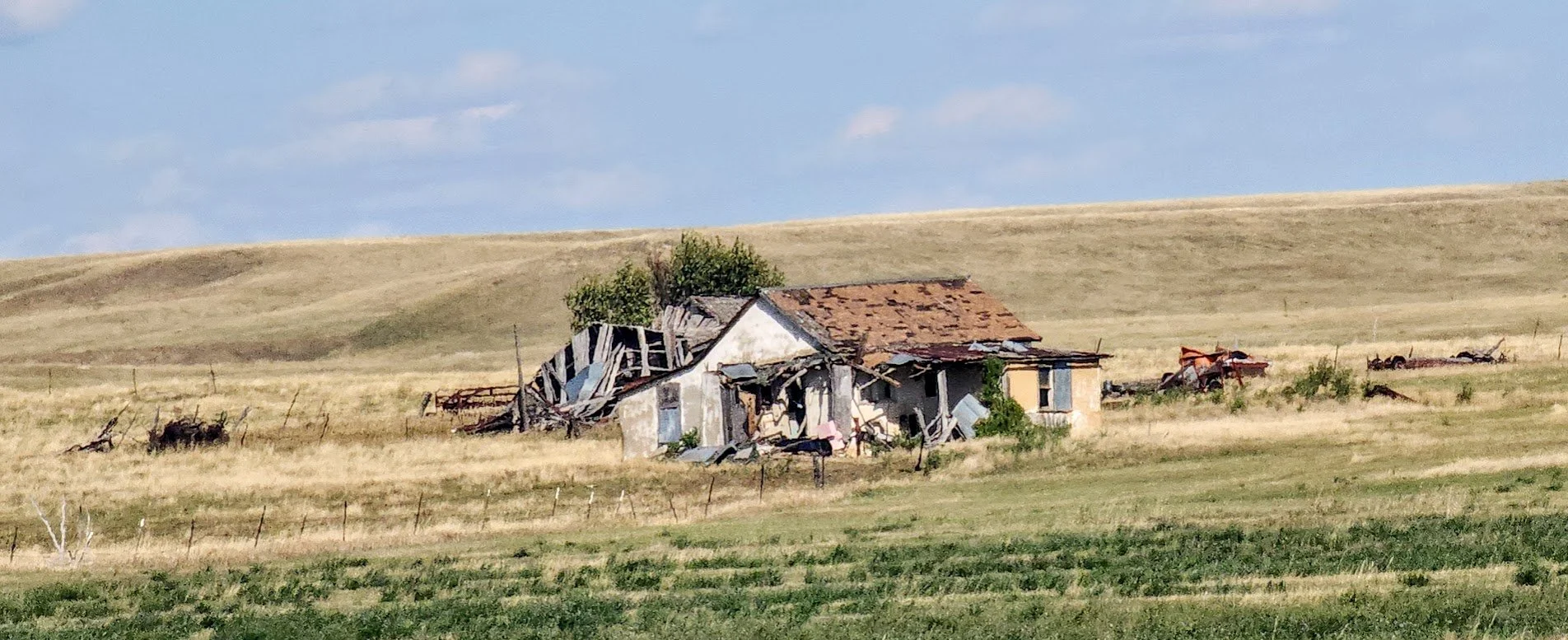 Old schoolhouse and structures in Rockerville, South Dakota.