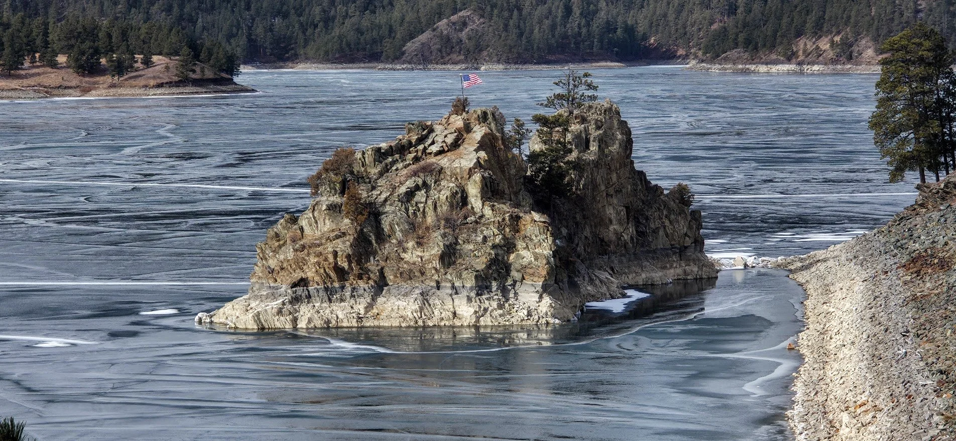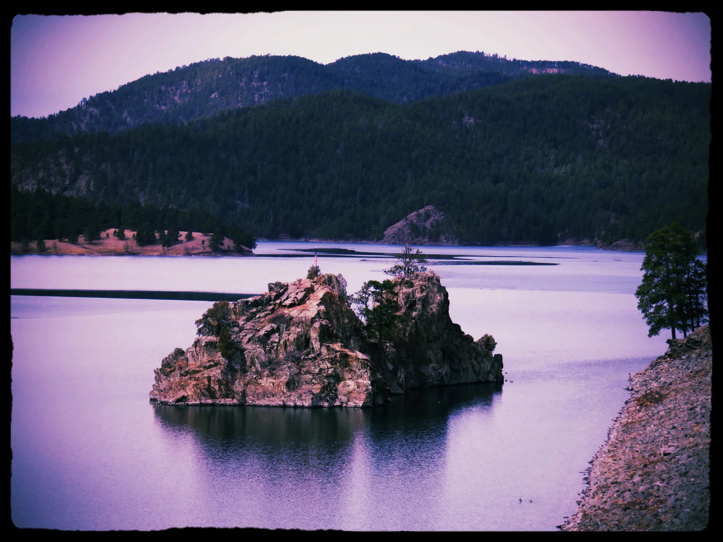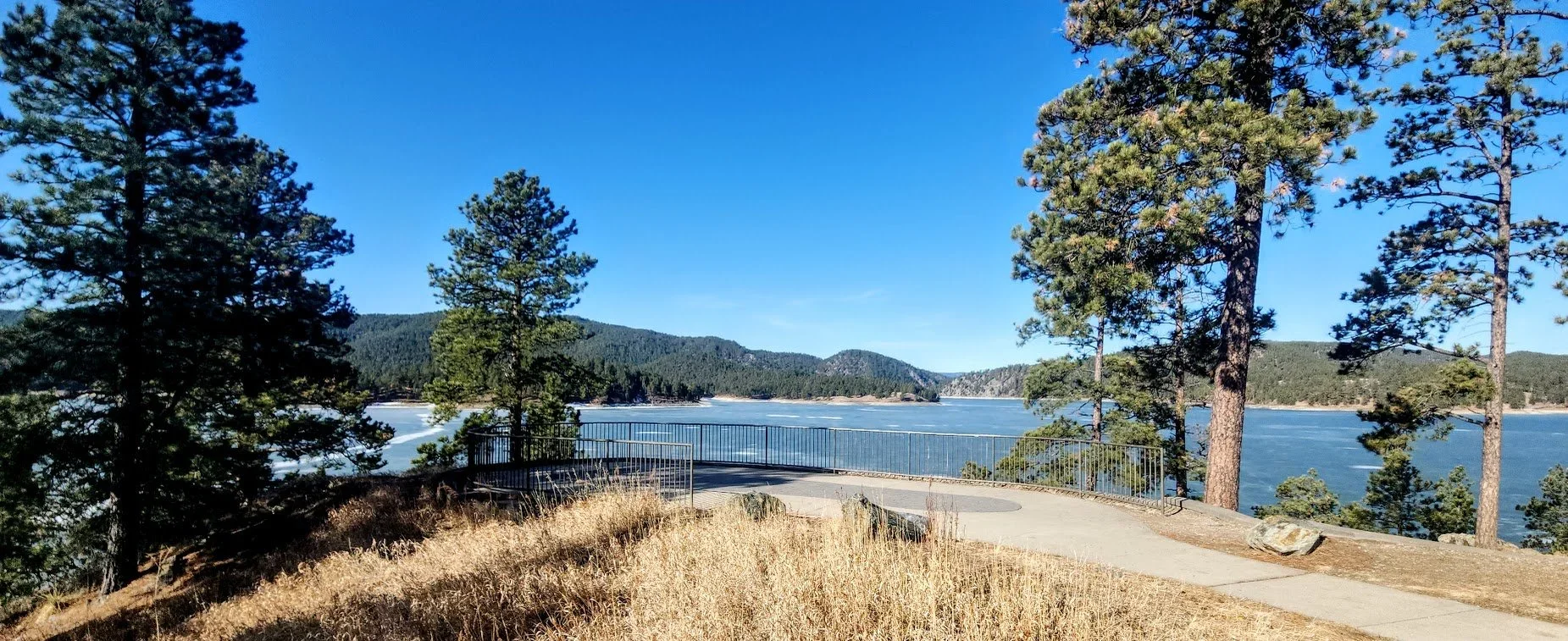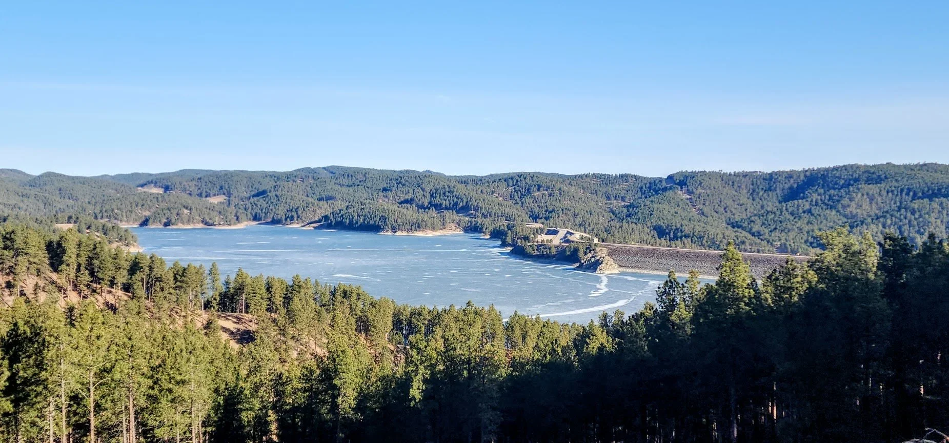 Looking down at Pactola Lake coming in on Highway 385.