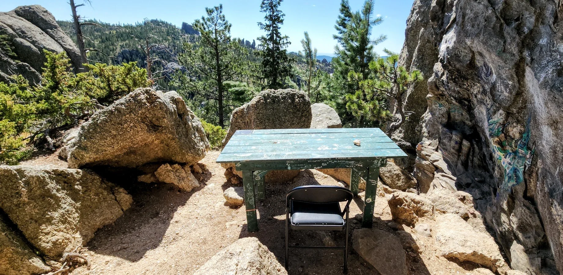 Poet’s Table is a neat little local spot in Custer State Park where people go to sit and enjoy nature and write their thoughts down. There is a table, a chair, and a cupboard full of journals that people have shared their thoughts in for many years. The trail to Poet’s Table is not always easy to find, and the hike to get there can be hard for some. During the summer months it can be busy as more and more people learn of this local treasure. The rest of the year, you can go there and have hours to yourself. If you have time, I suggest you check it out.