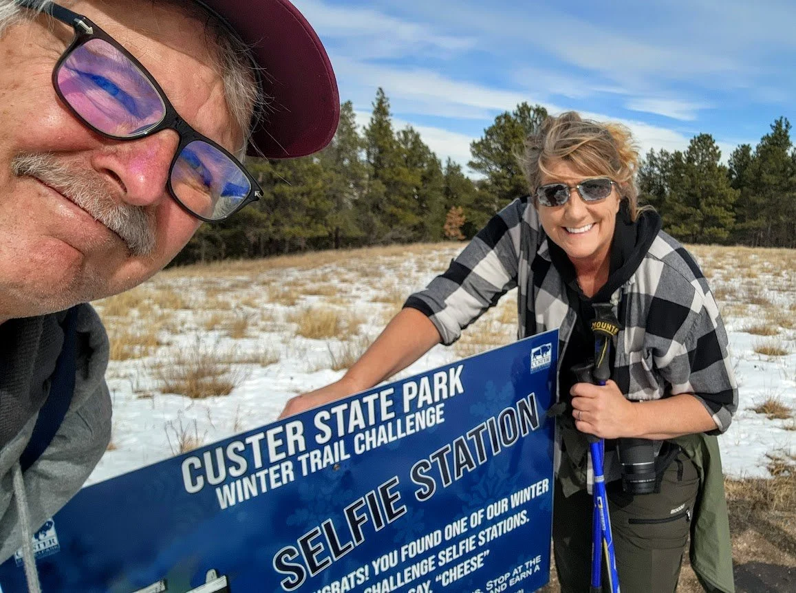 Prairie Trail is a trail on the west side of Wildlife Loop Road in Custer State Park. It claims to be about 3 miles and goes in a loop. We actually tracked it around 2.1 miles. The trail goes through the prairie and the forest and although there wasn’t anything spectacular on this trail, some of the views were pretty and by the creek was nice. While we were there, the buffalo were far off, but there were buffalo chips everywhere. I would use extreme caution if buffalo are near the trail since you are exposed a couple of times in the prairie with no adequate means of cover if needed.