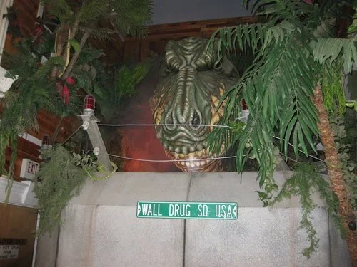 The backyard of Wall Drug - Roaring dinosaur and so much more.