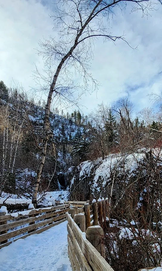 Hiking to the falls in the winter time from the Spearfish Canyon Lodge.